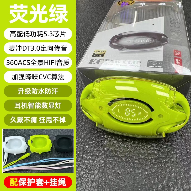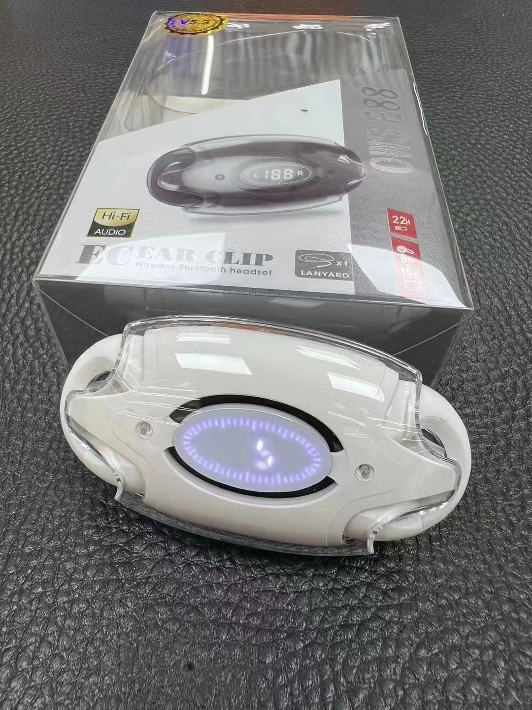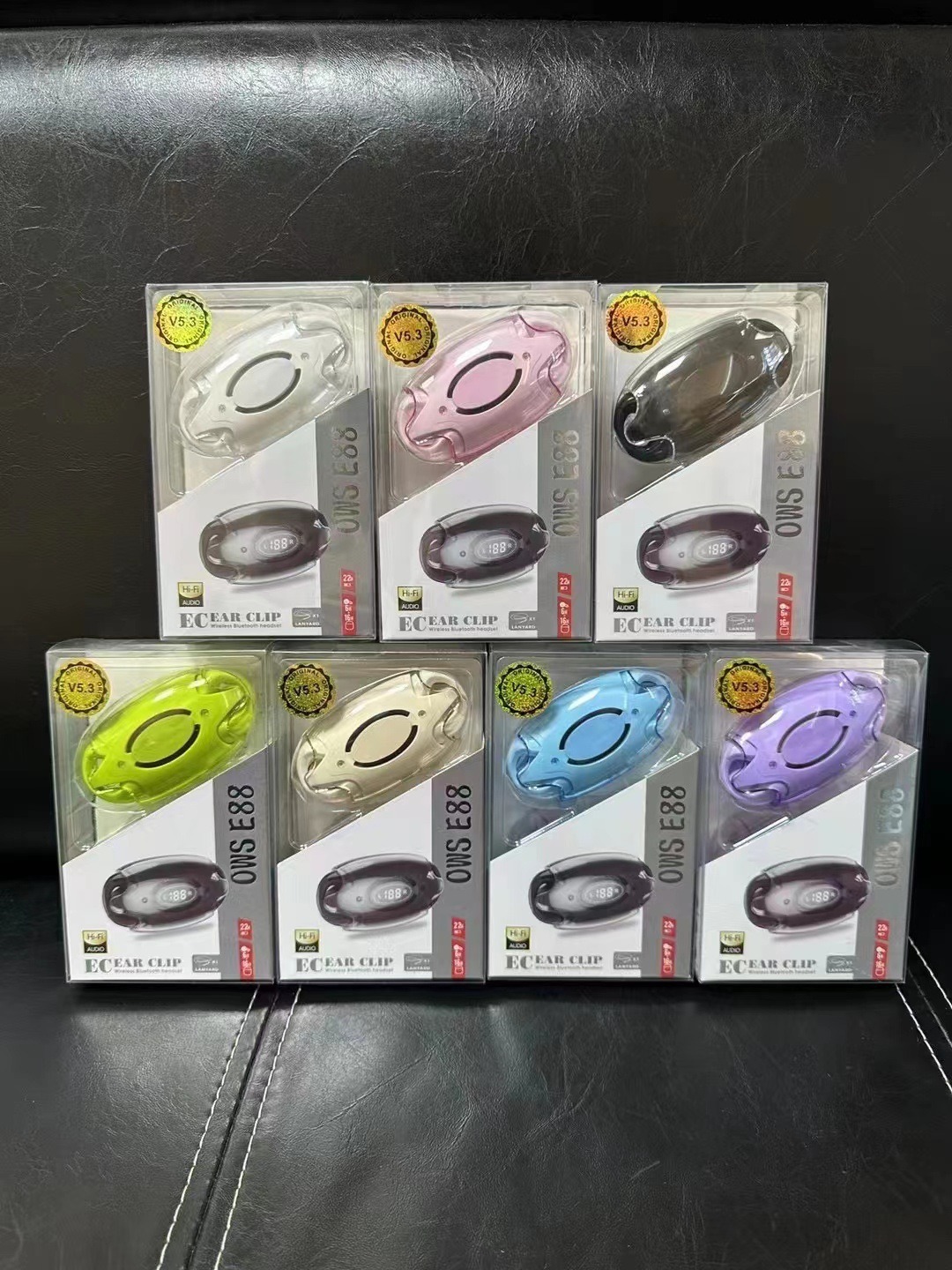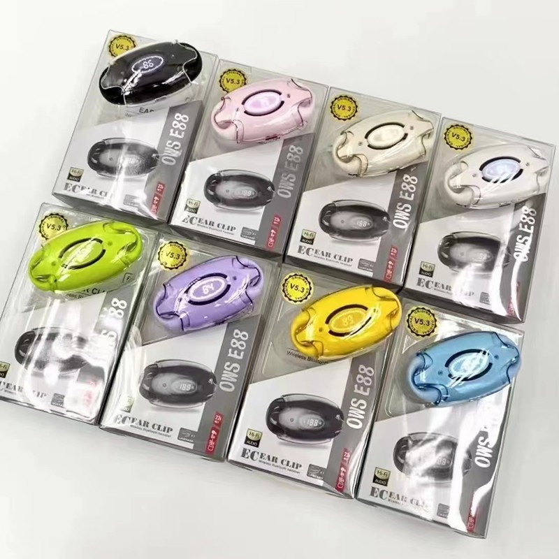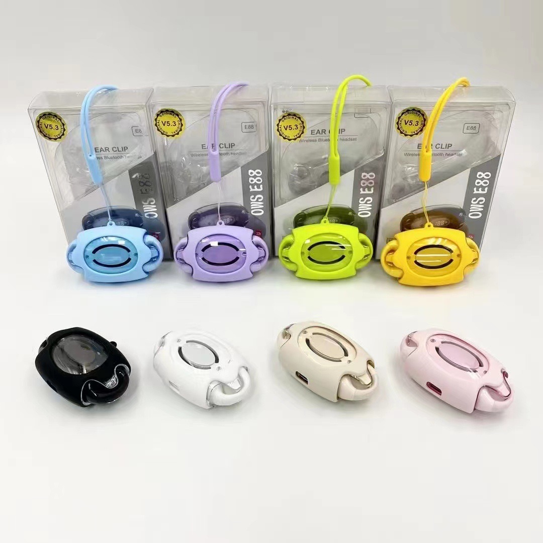 新款E88耳夹式蓝牙耳机数显屏幕透明防水便携运动跑步OWS无线耳机