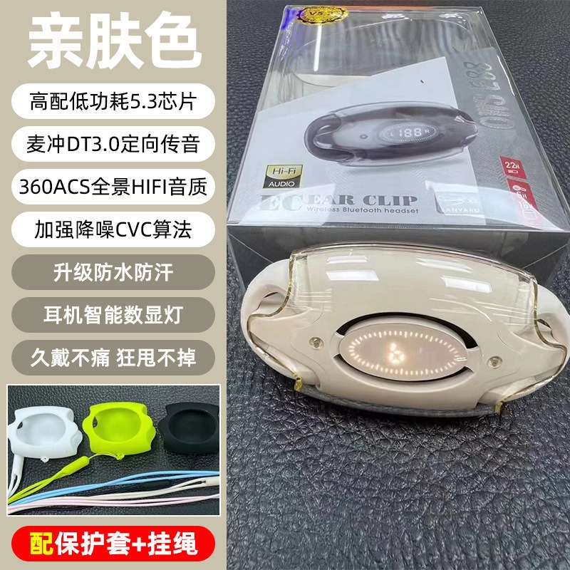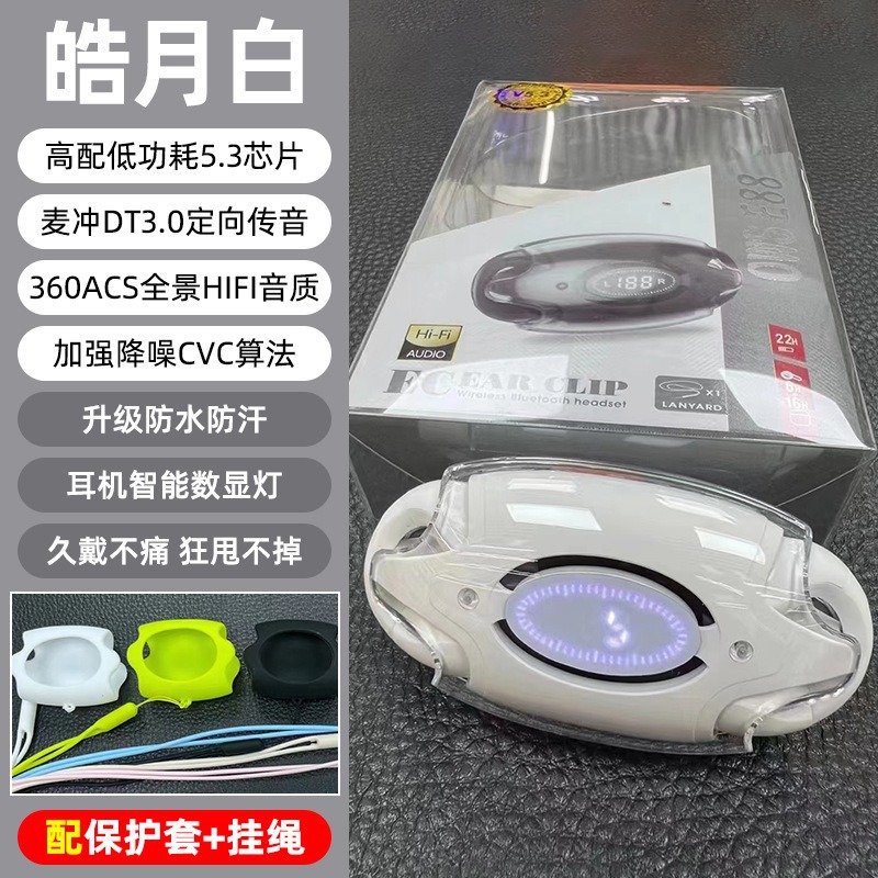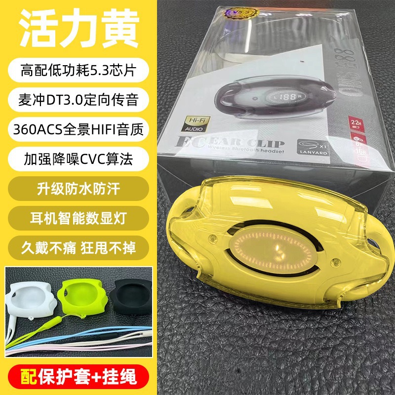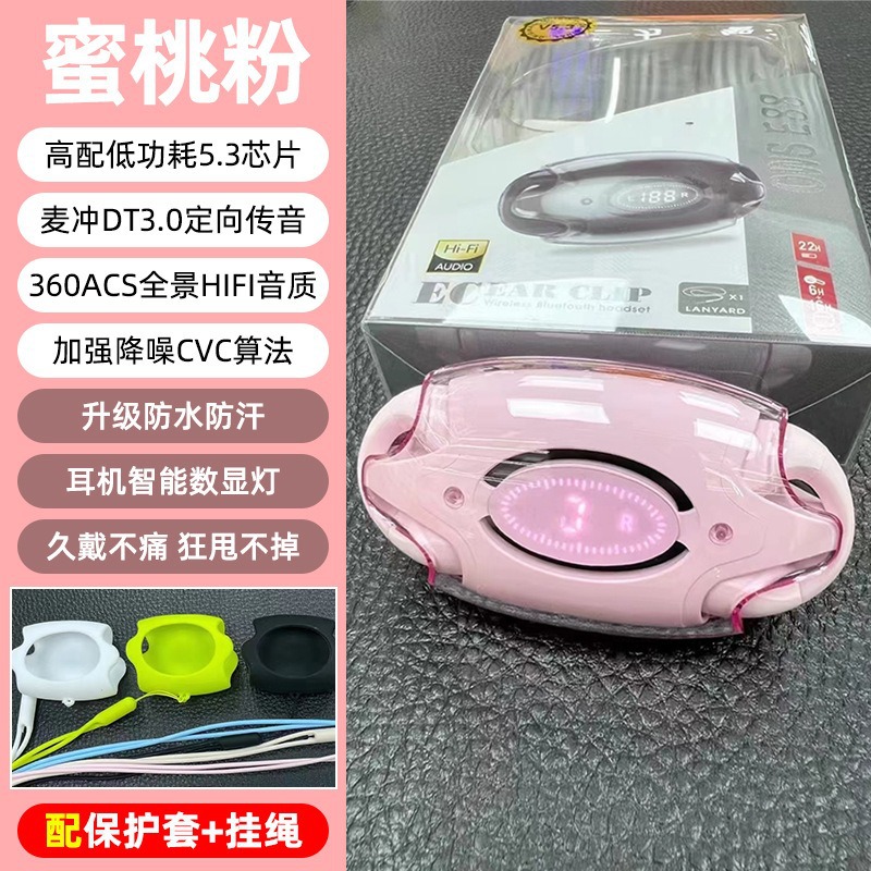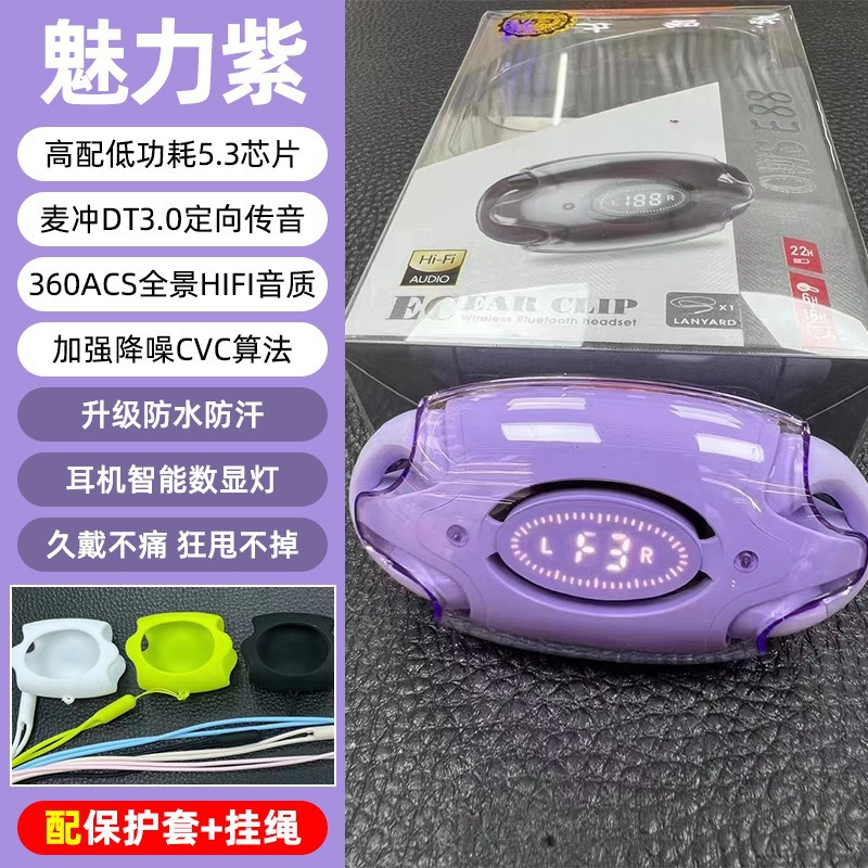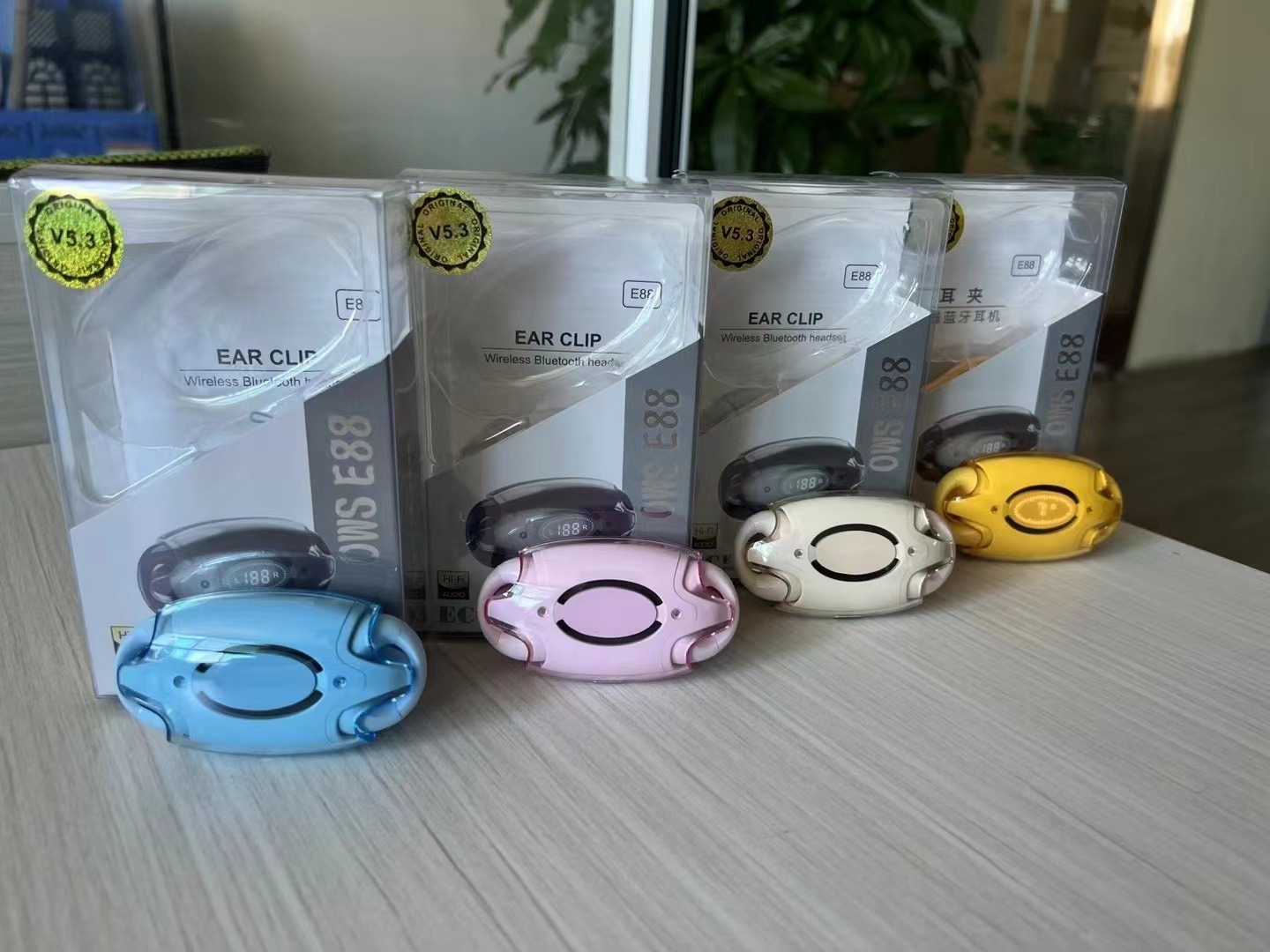 新款E88耳夹式蓝牙耳机数显屏幕透明防水便携运动跑步OWS无线耳机