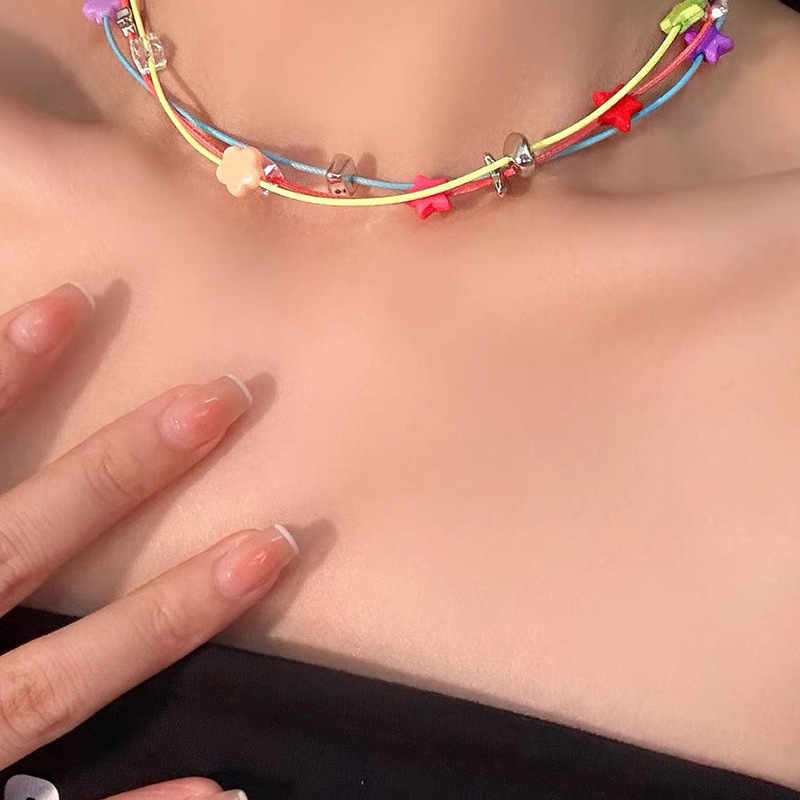 夏季甜美五彩绳彩色星星串珠项链女轻奢高级感时尚简约百搭锁骨链