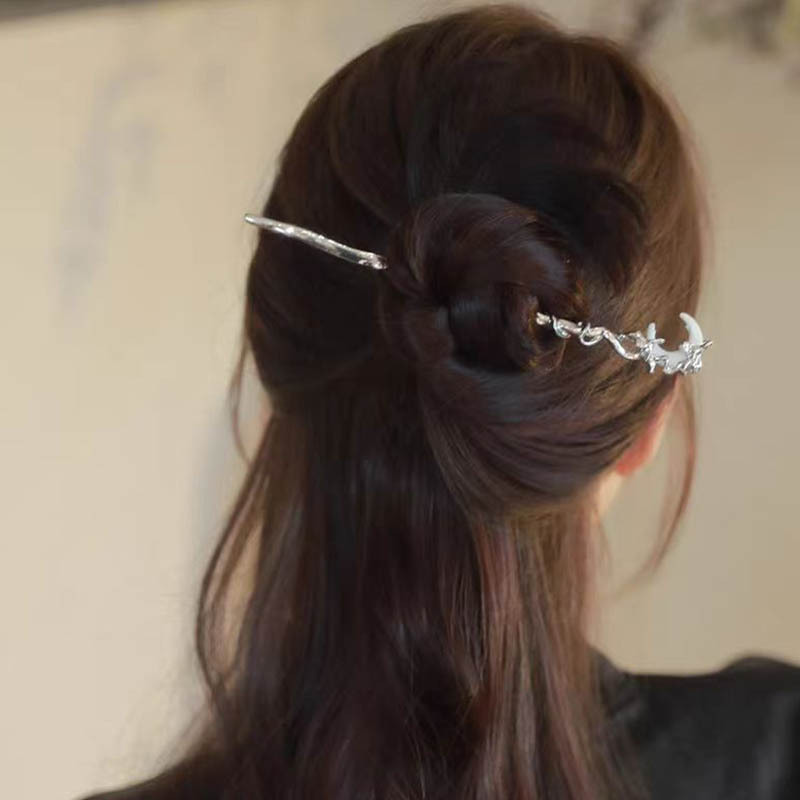 月牙缠绕古风步摇发簪女新中式后脑勺盘发簪子个性简约百搭发饰潮