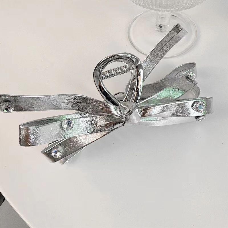 蝴蝶结飘带发夹女轻奢高级感微镶锆石抓夹甜酷风简约百搭鲨鱼夹潮