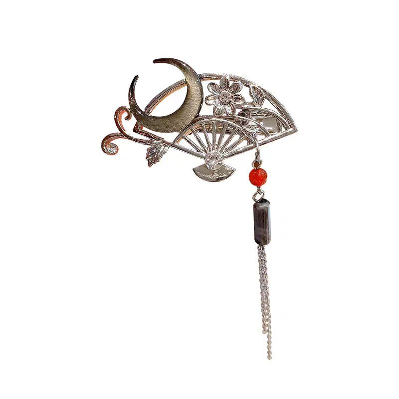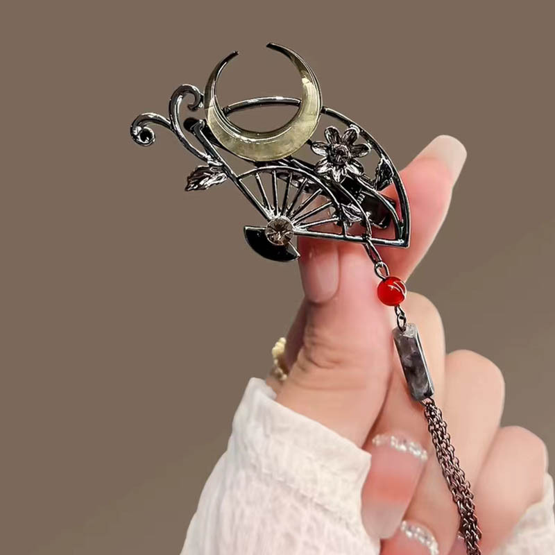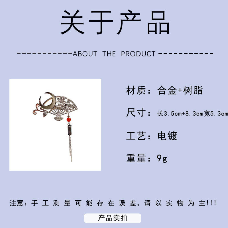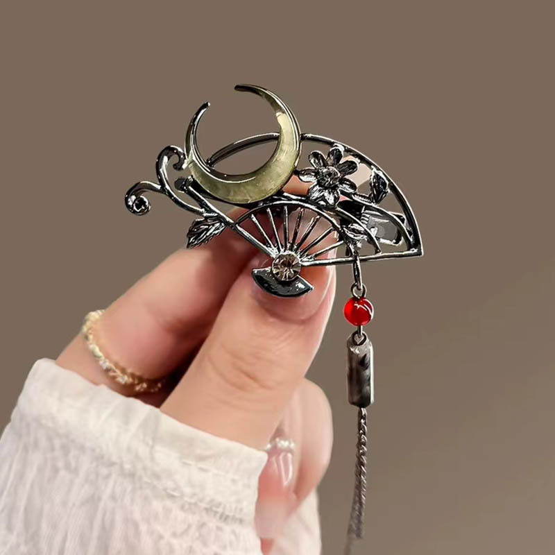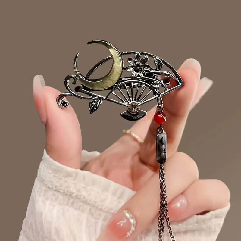 新中式古风月牙发夹女小众复古扇子流苏前额侧边夹精致百搭刘海夹