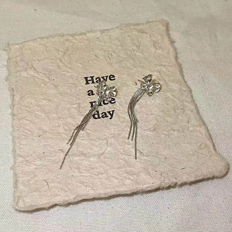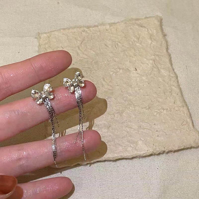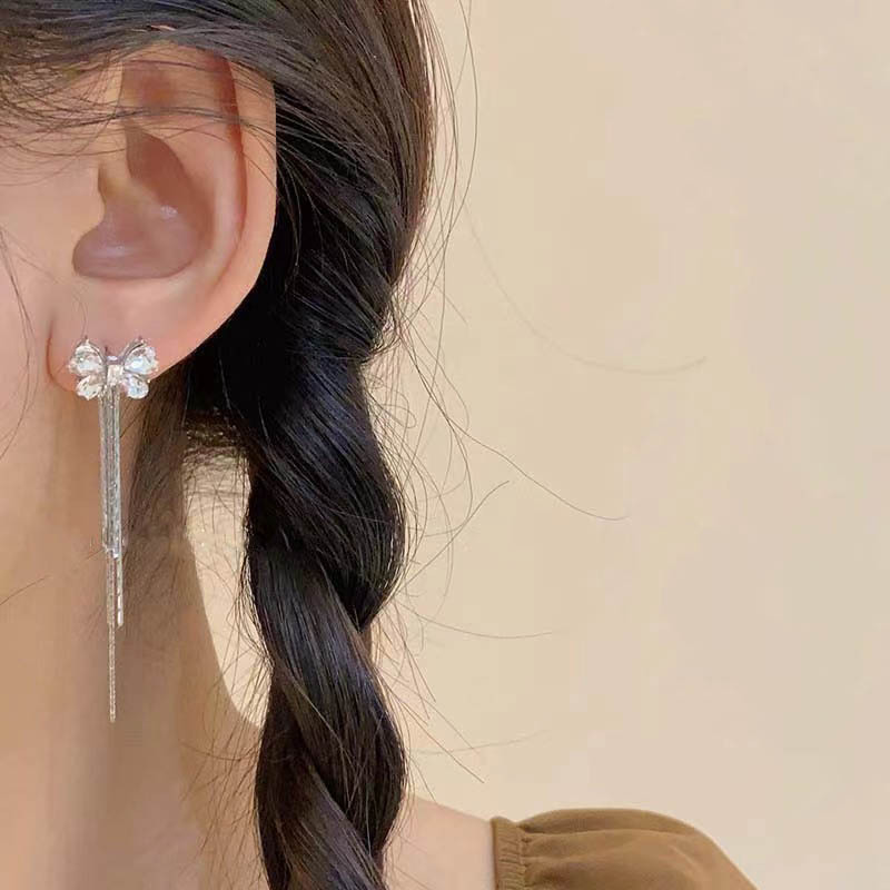 锆石蝴蝶结流苏耳环女轻奢高级感超闪个性耳钉冷淡风简约百搭耳饰