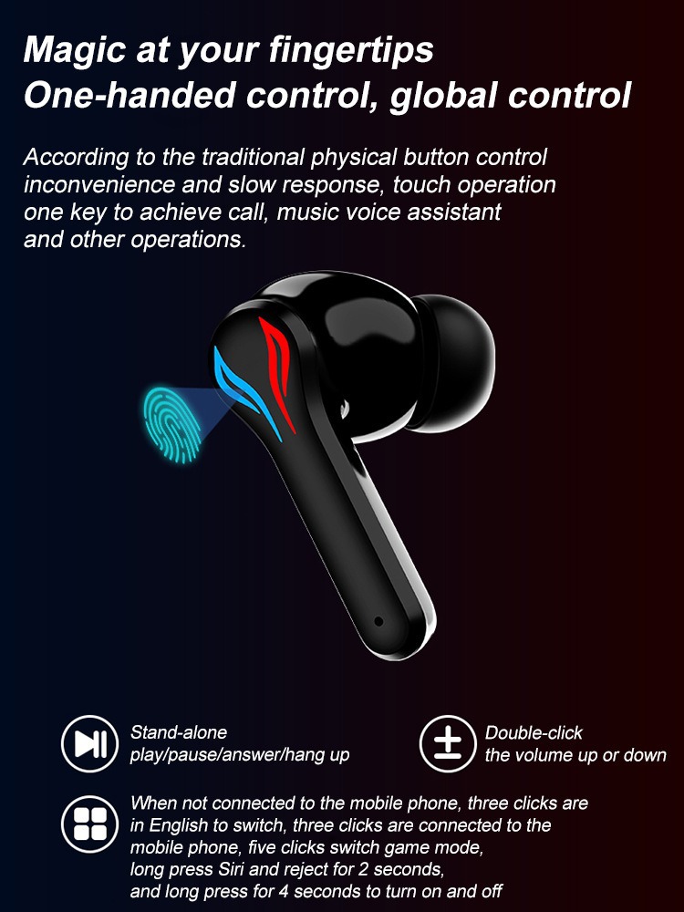 YX-03新款跨境无线蓝牙耳机触摸入耳式立体声电竞游戏TWS黑科技