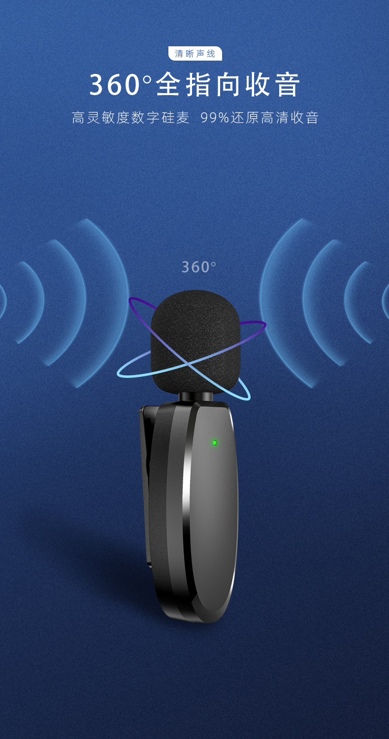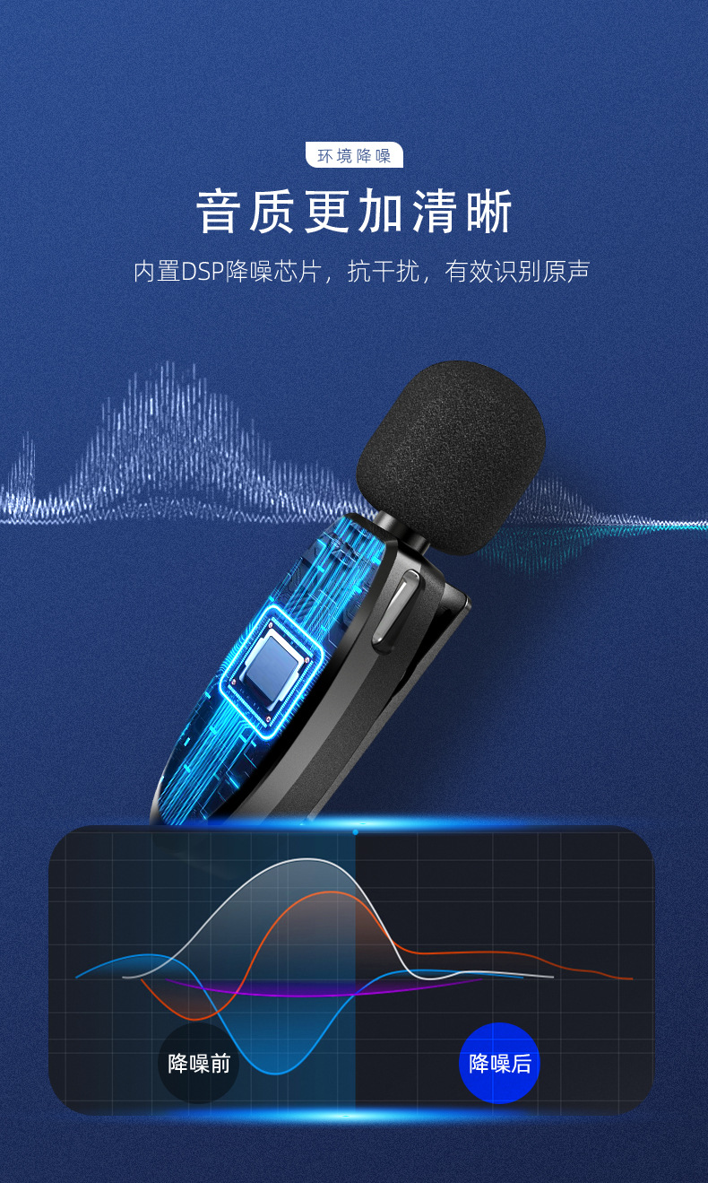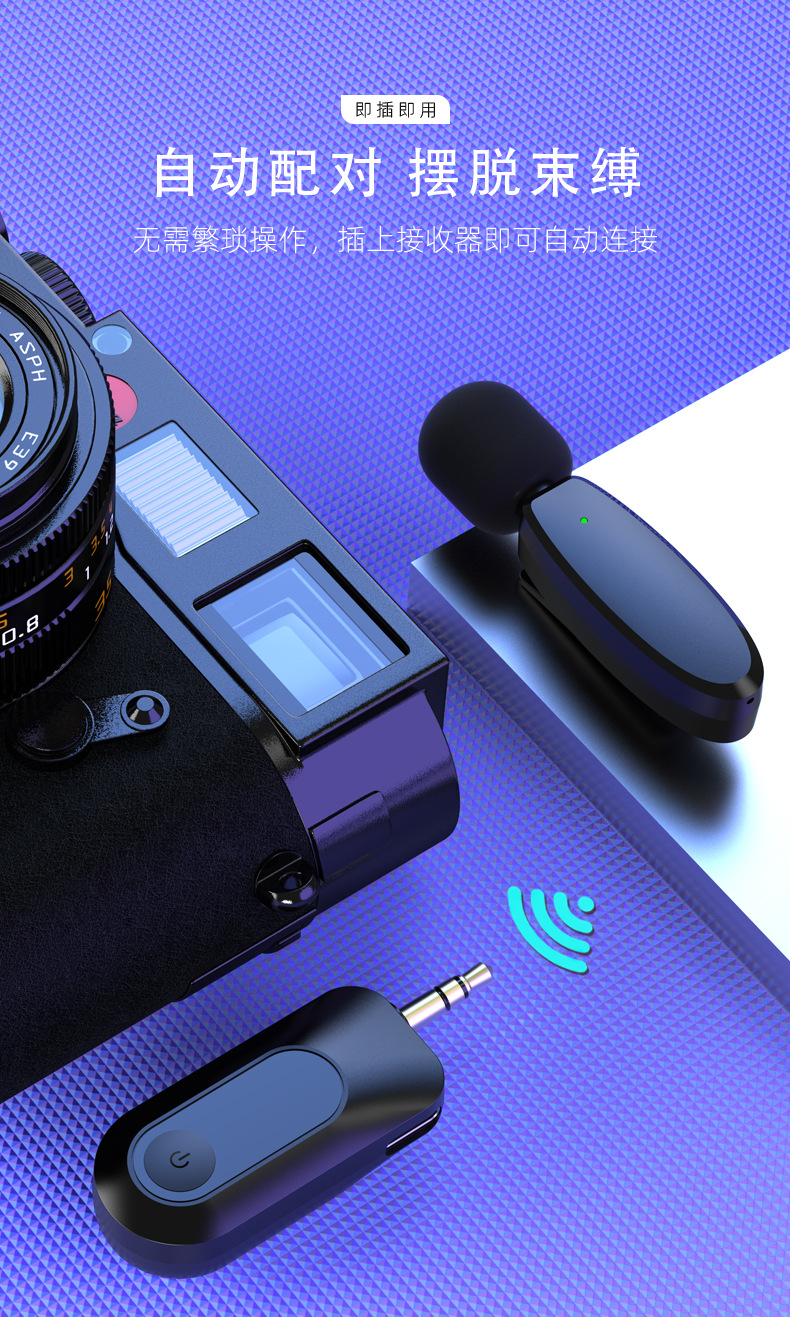 A5新款跨境麦克风短视频直播智能降噪无线领夹录音手机一拖二麦