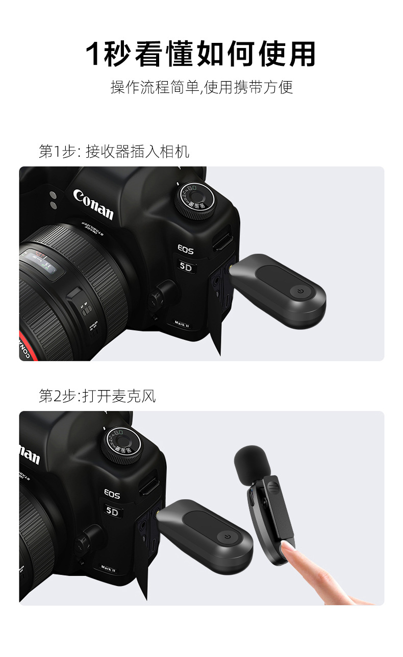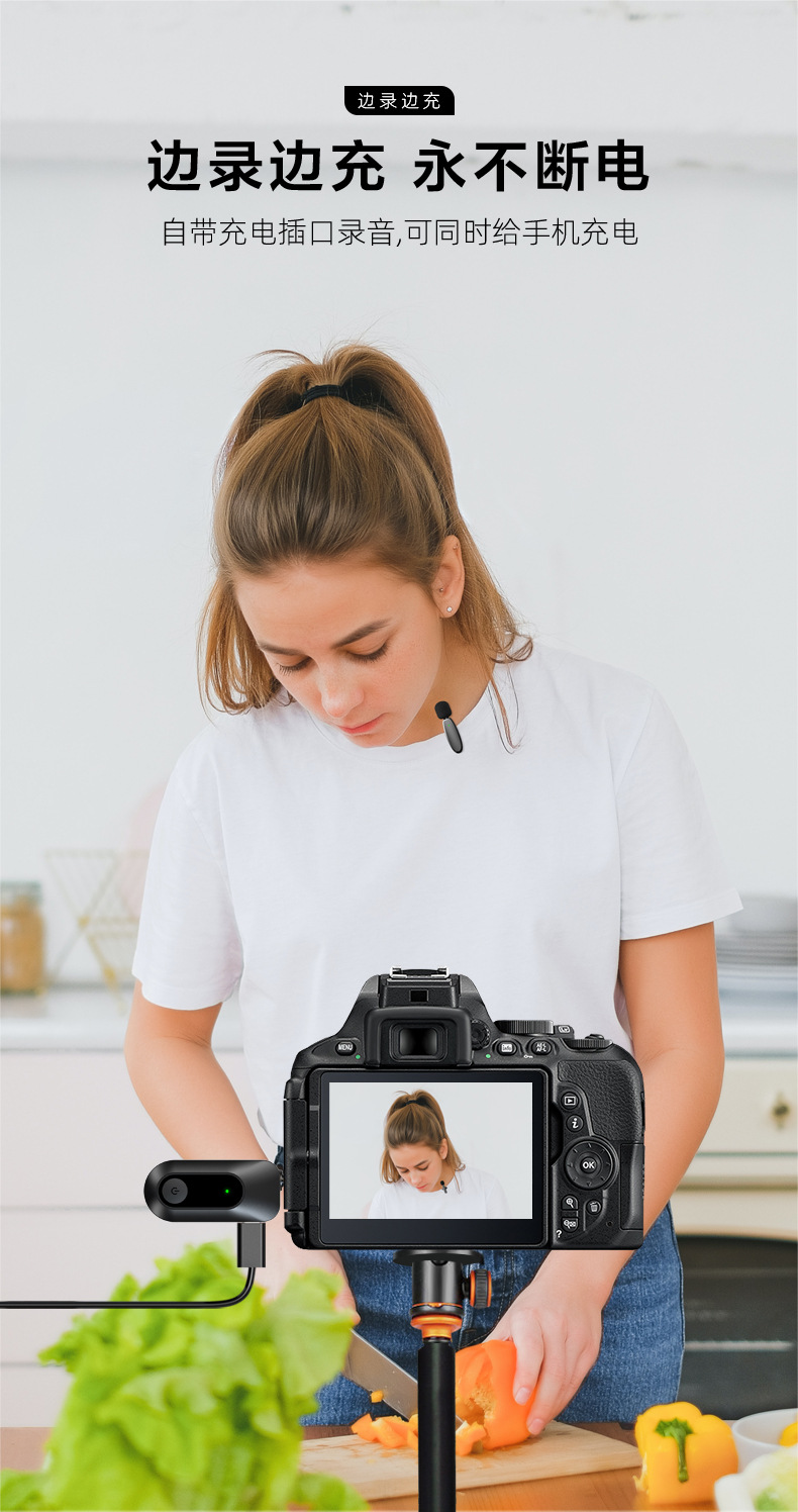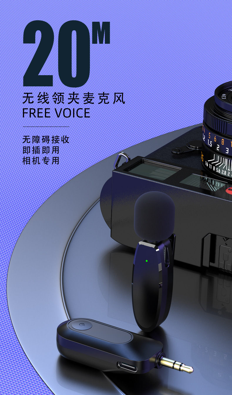 A5新款跨境麦克风短视频直播智能降噪无线领夹录音手机一拖二麦