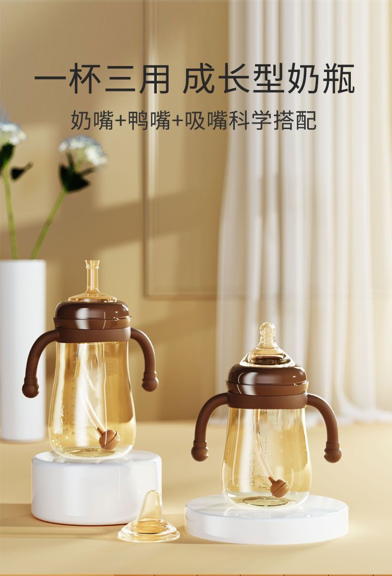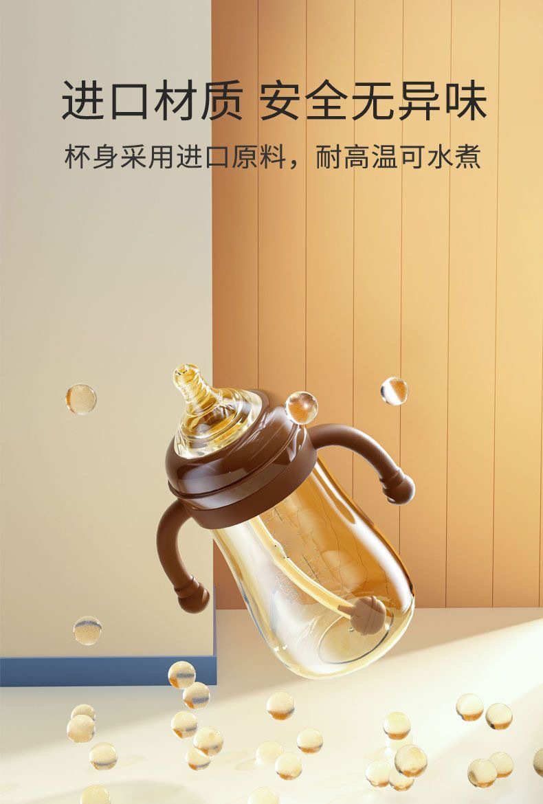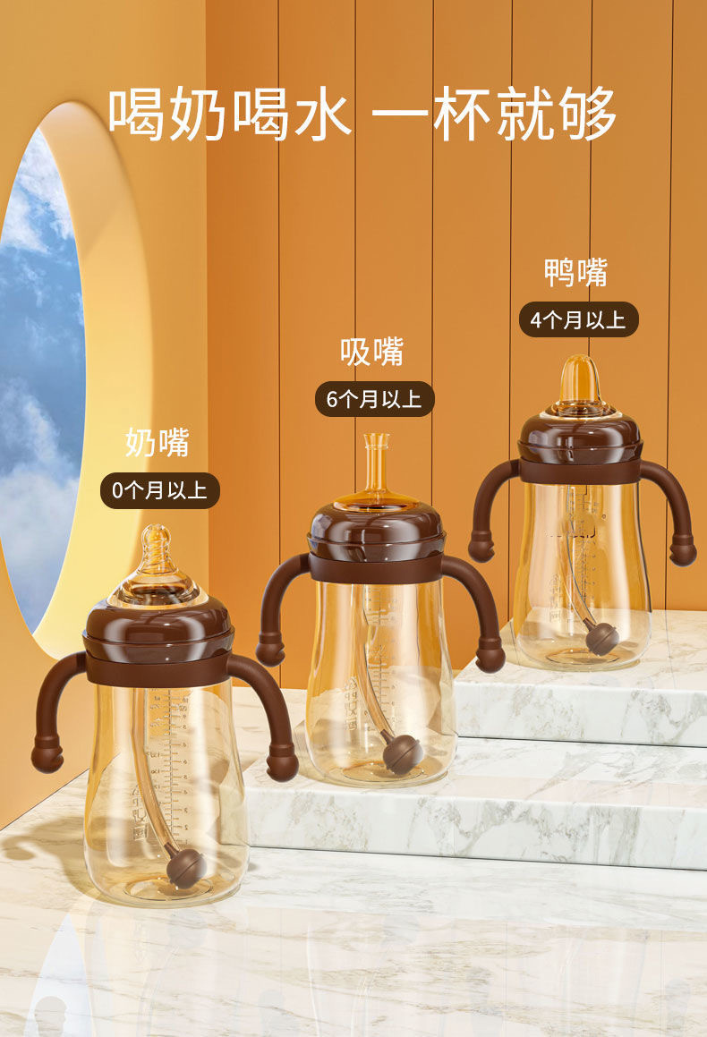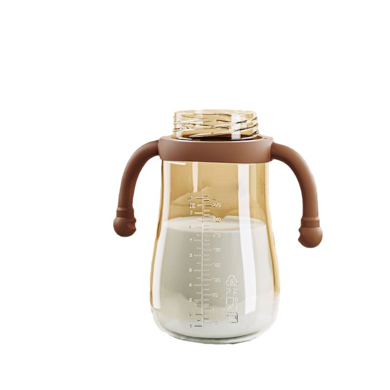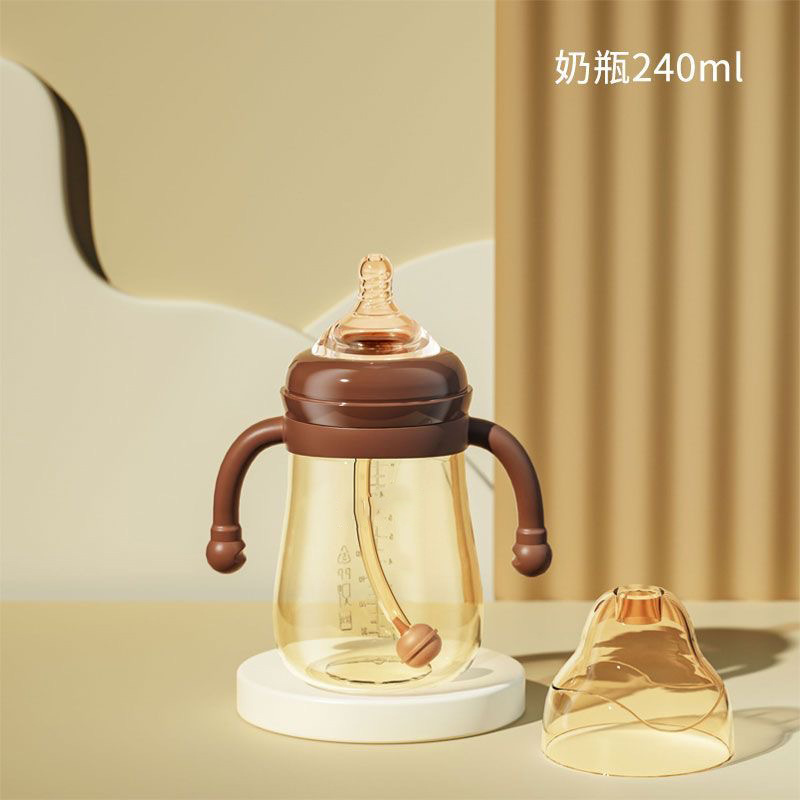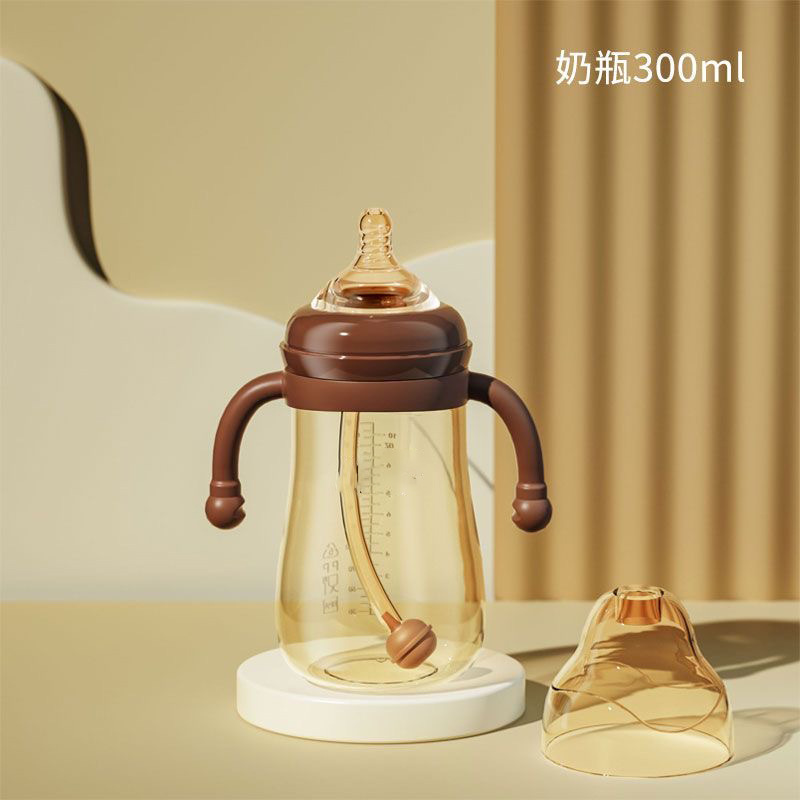 厂家直销新款塑料咖啡色奶瓶母婴产品婴儿喂奶宽口儿童PP奶瓶批发