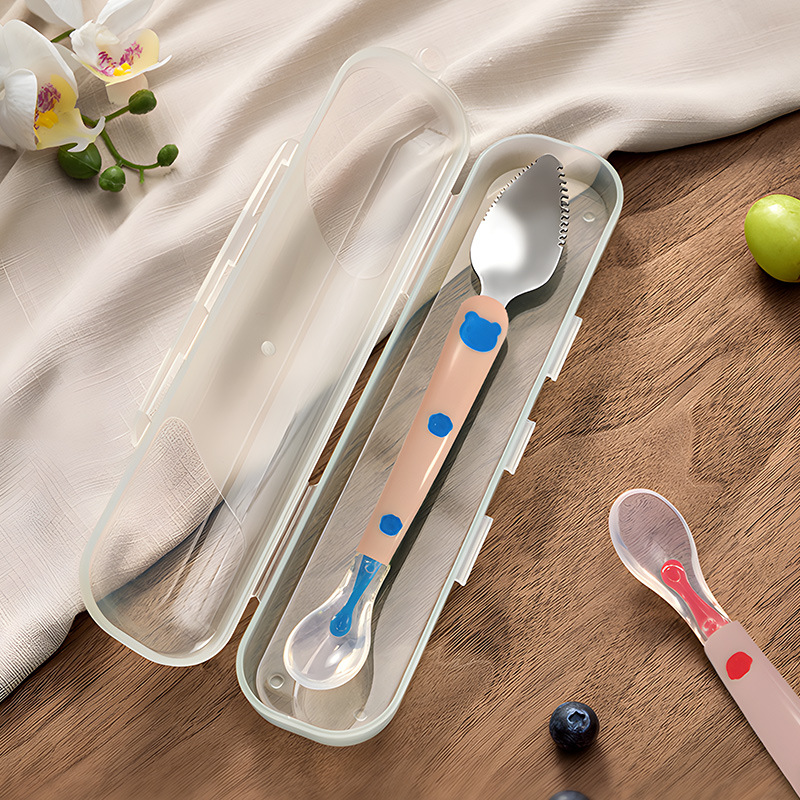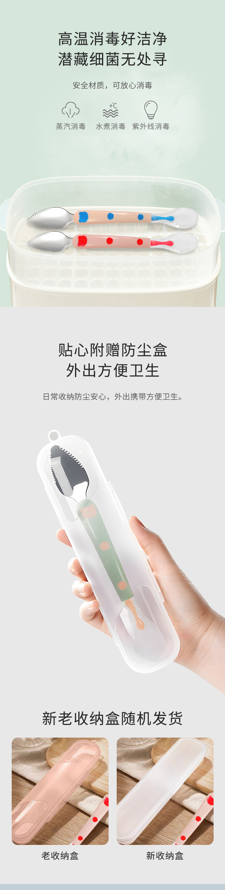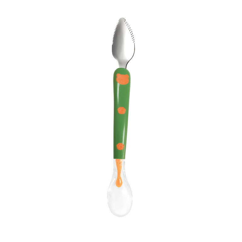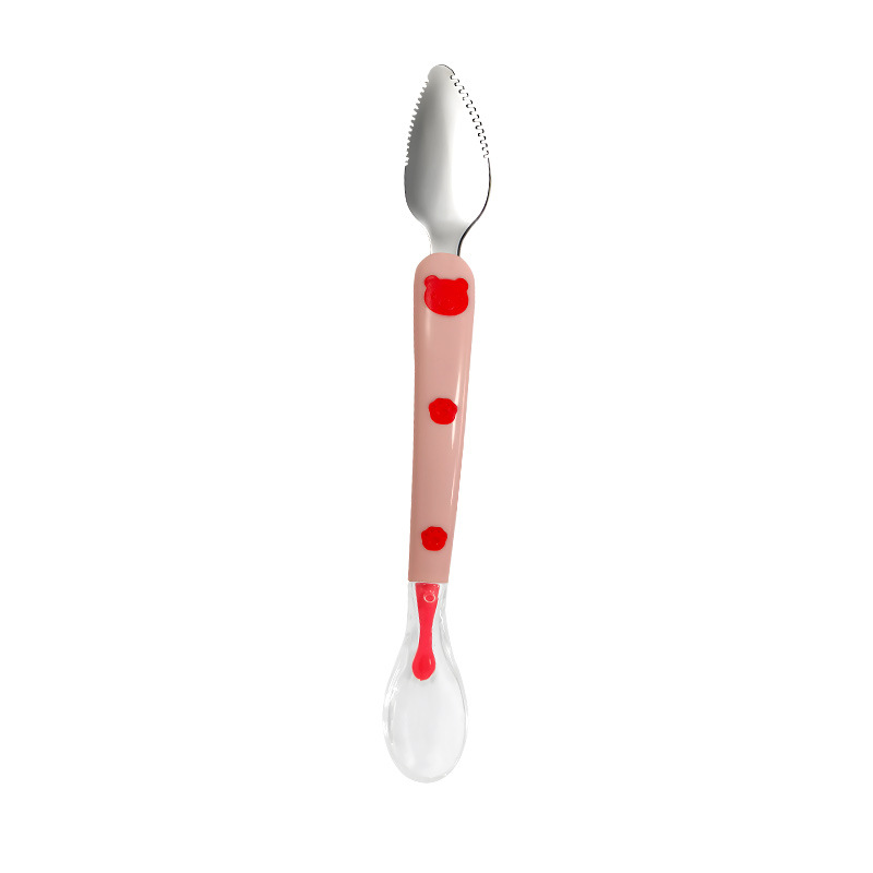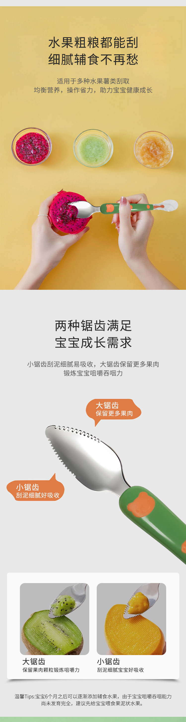 婴儿水果刮泥勺子宝宝勺不锈钢双头食品级水果辅食硅胶儿童餐具批