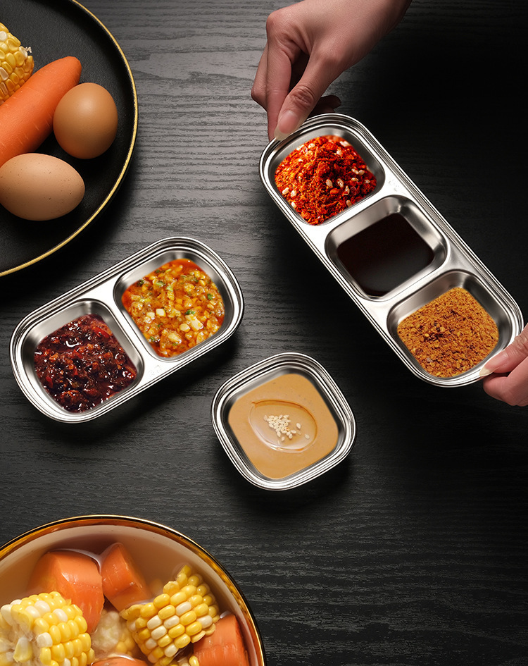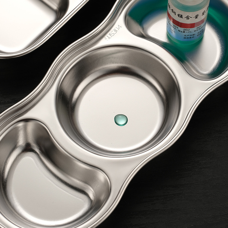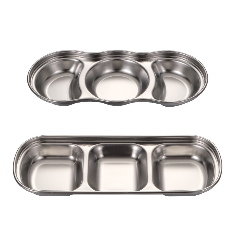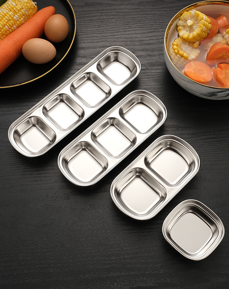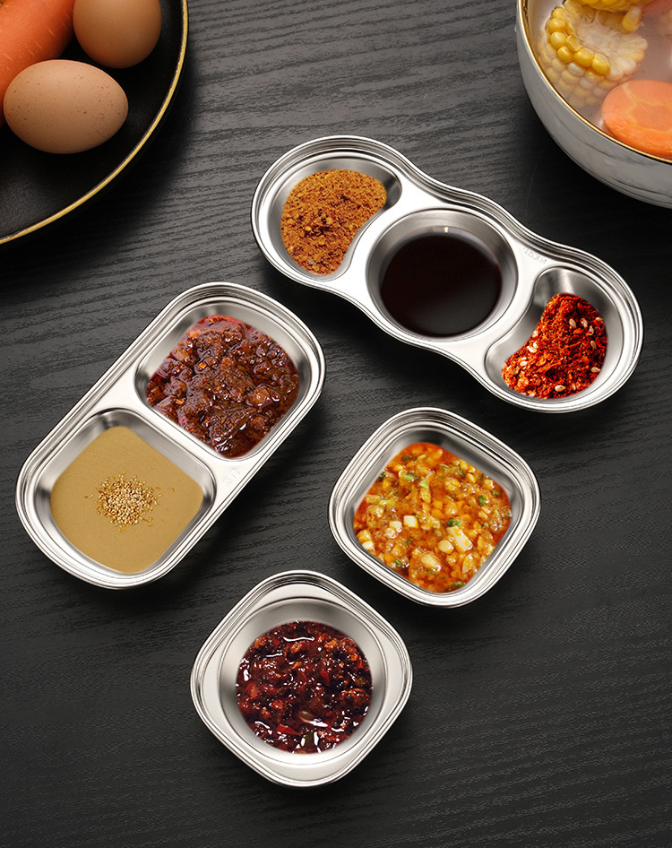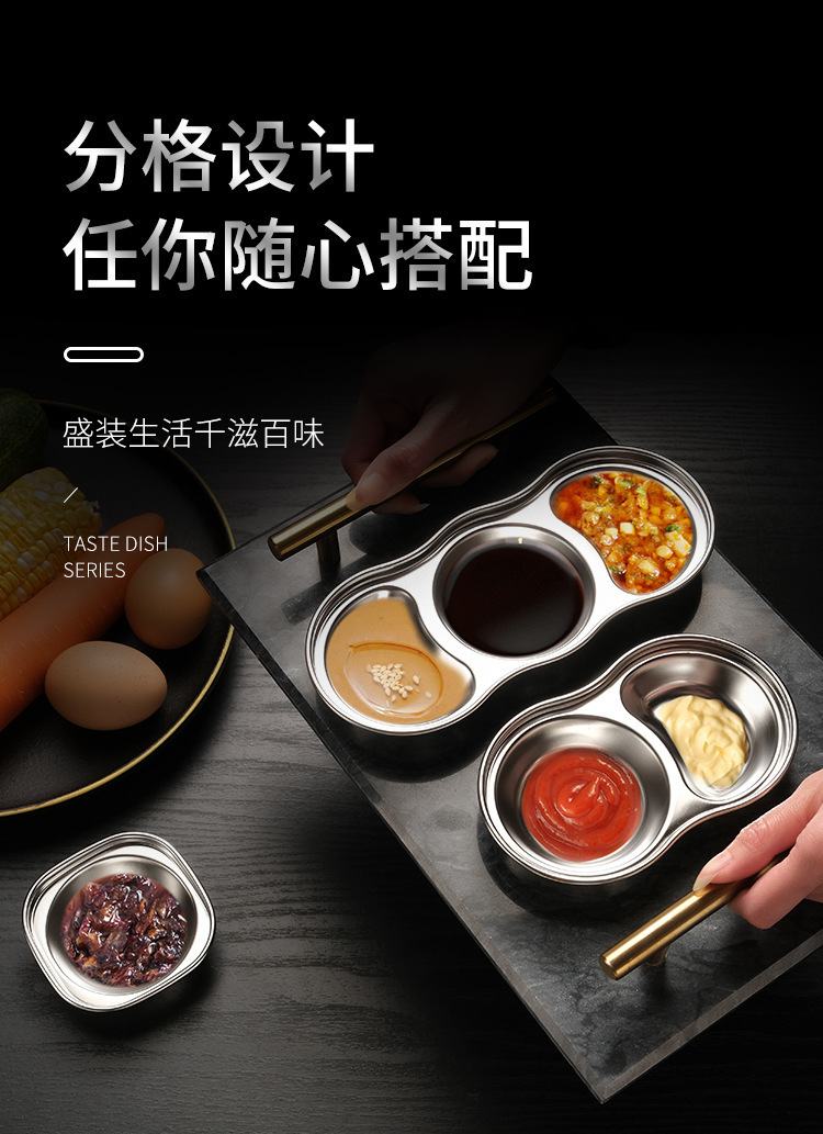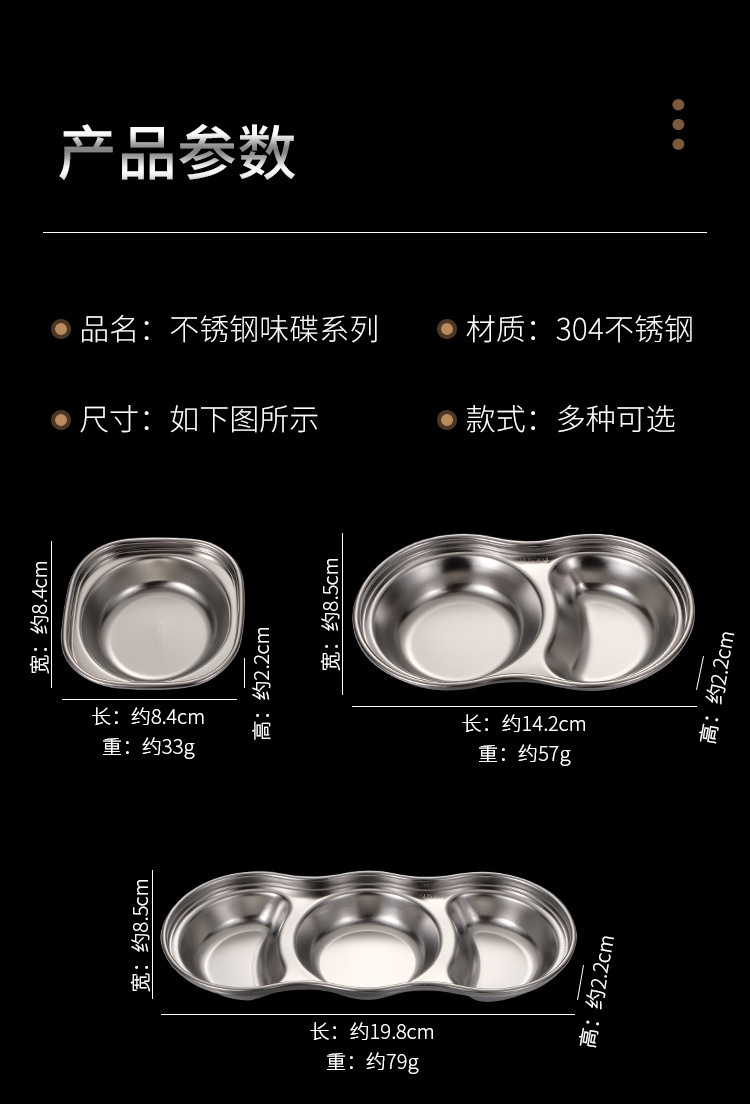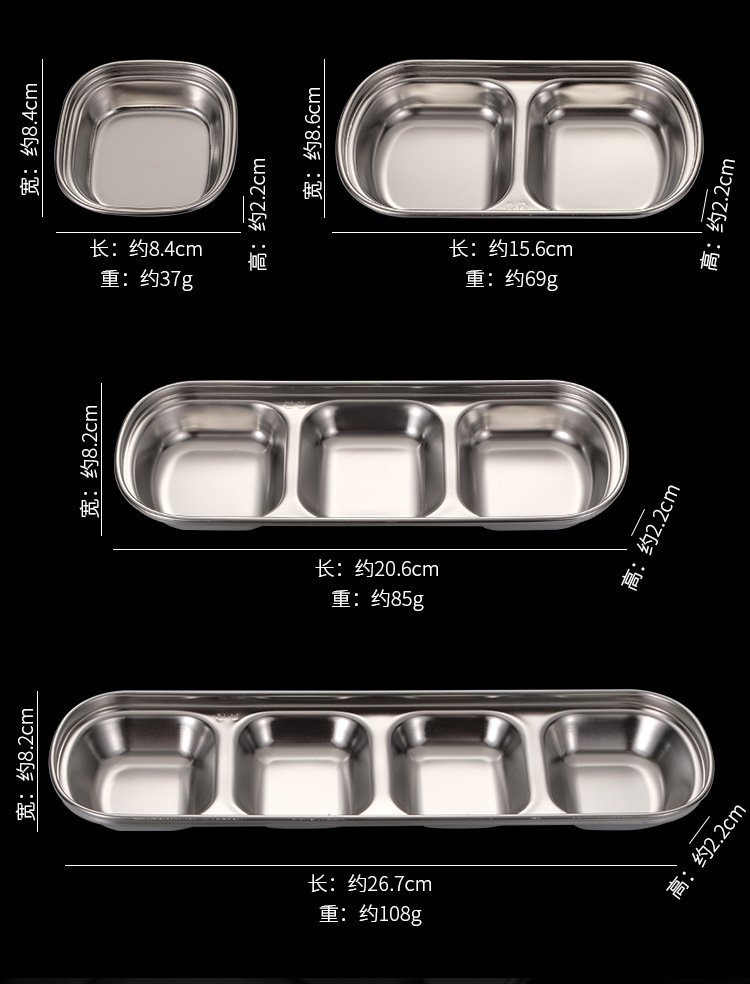 304不锈钢多格蘸料碟子韩式调味碟创意分格泡菜碟火锅店料理碟子