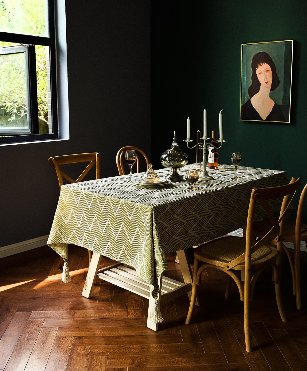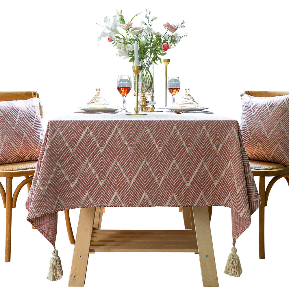 提花遮盖桌布流苏台布美式田园餐桌垫纯色茶几厂家现货批发