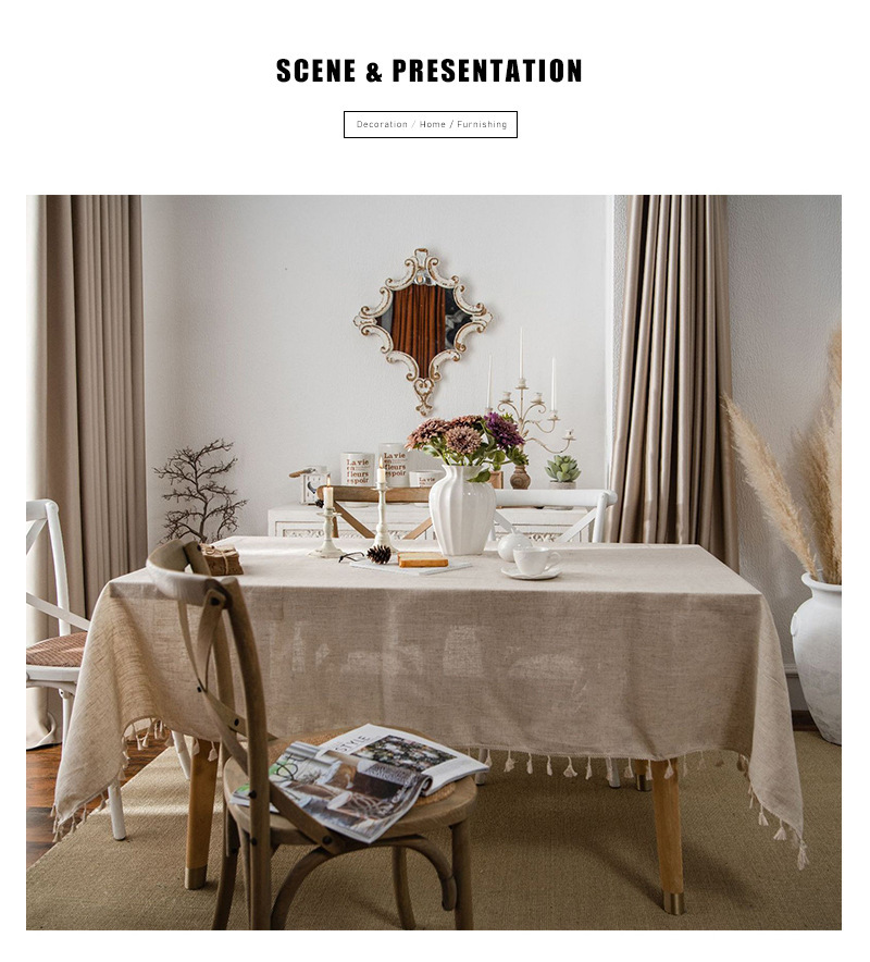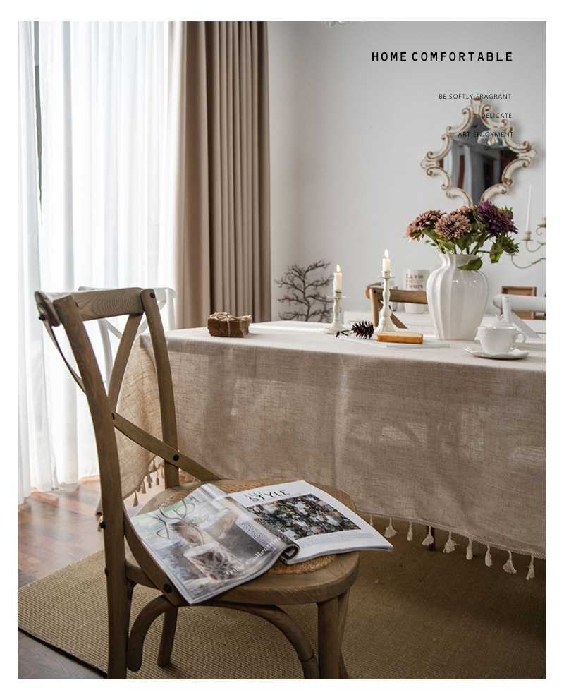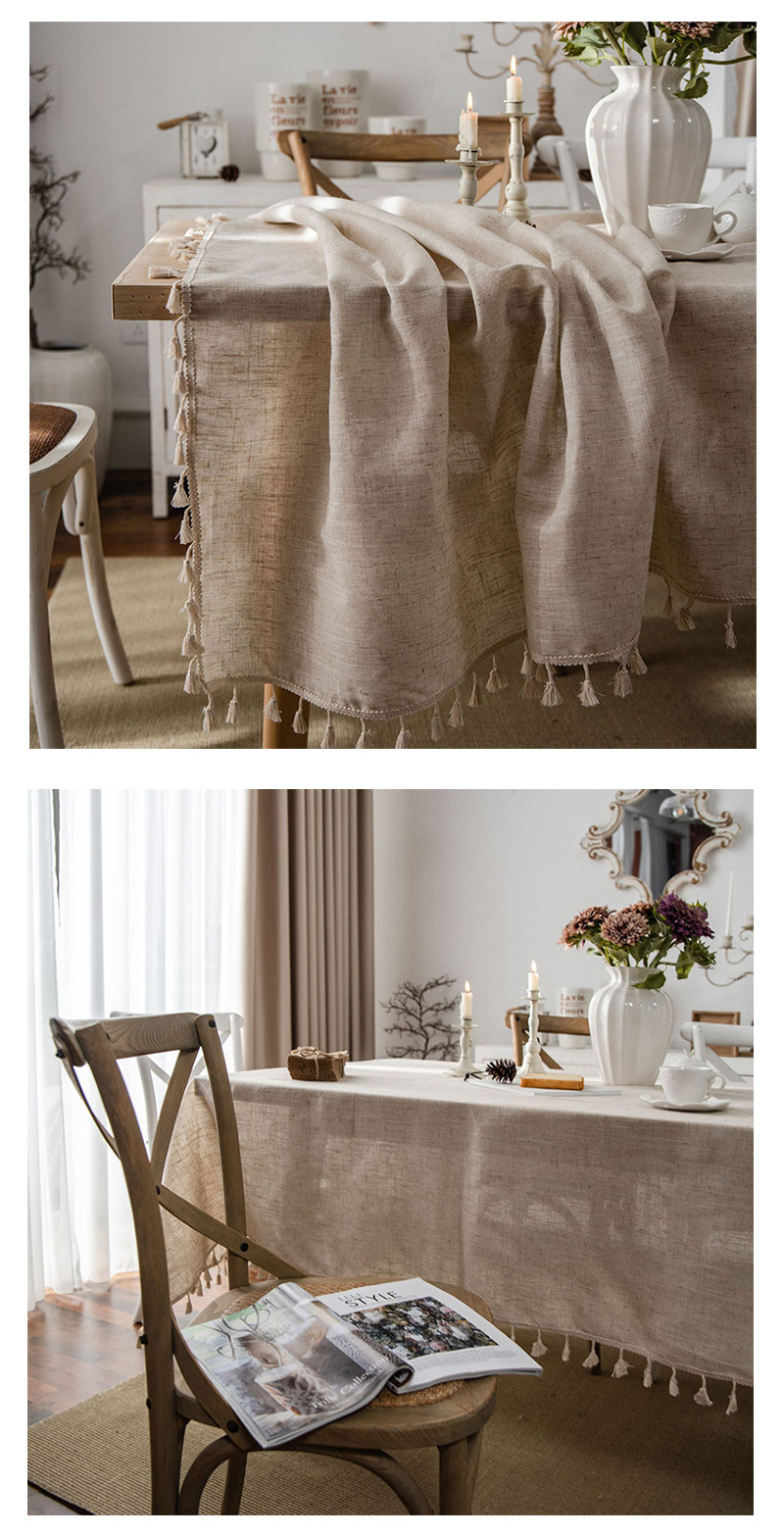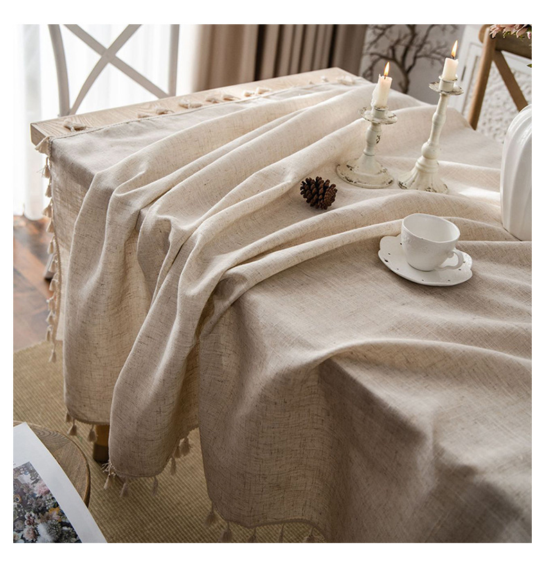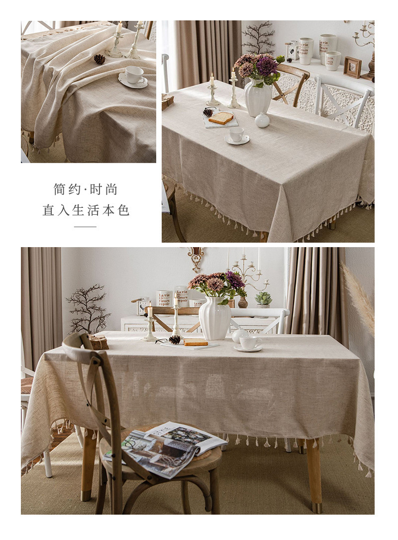 亚马逊美式乡村纯色棉麻桌布长方形流苏餐桌布艺流苏茶几简约盖布