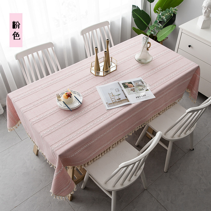 跨境外贸布艺餐桌布欧式条纹提花镂空棉麻桌布茶几台布现货
