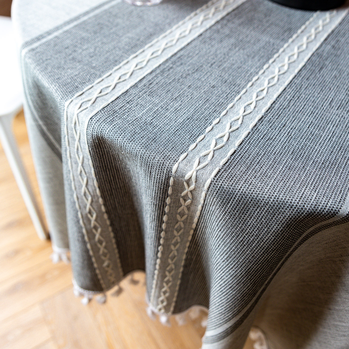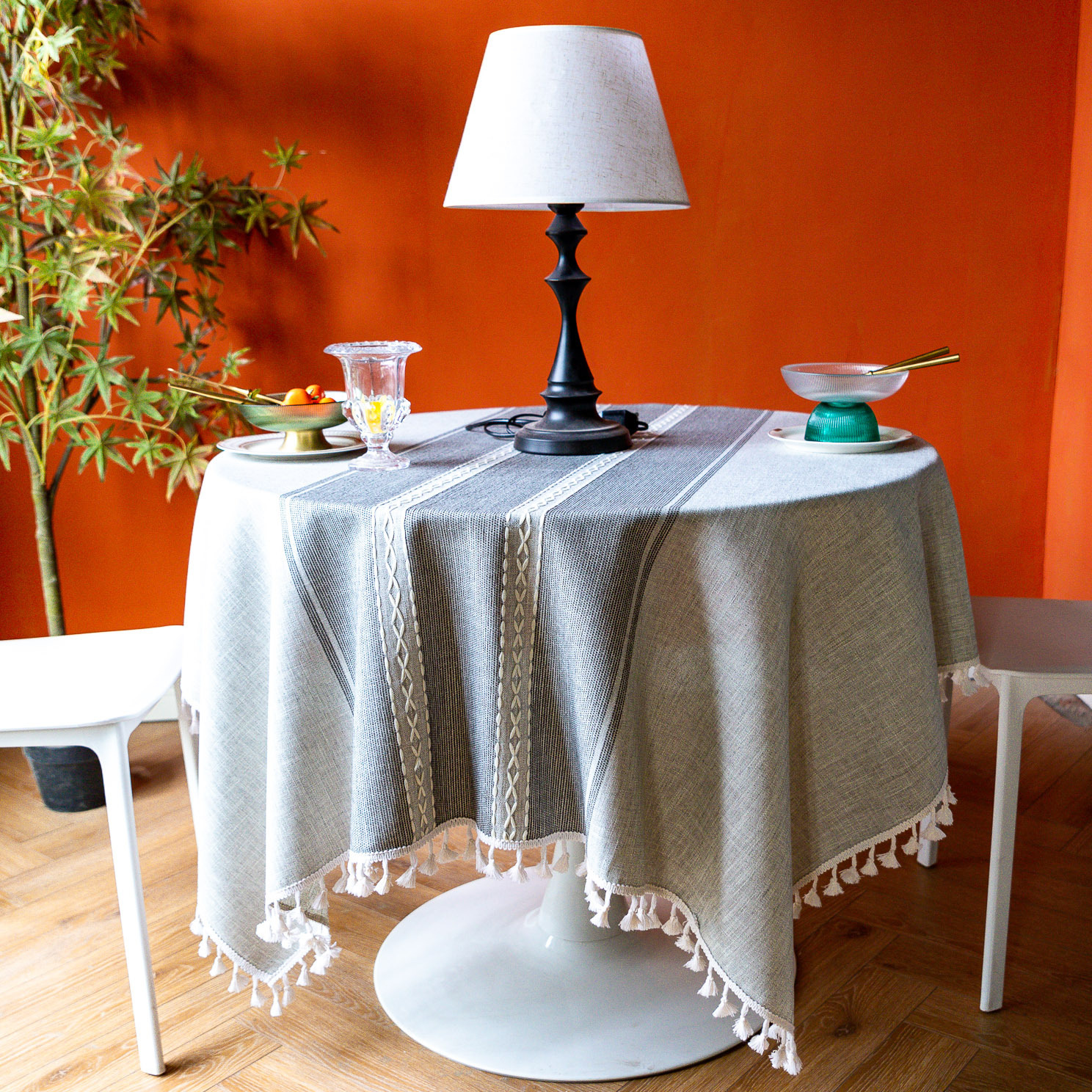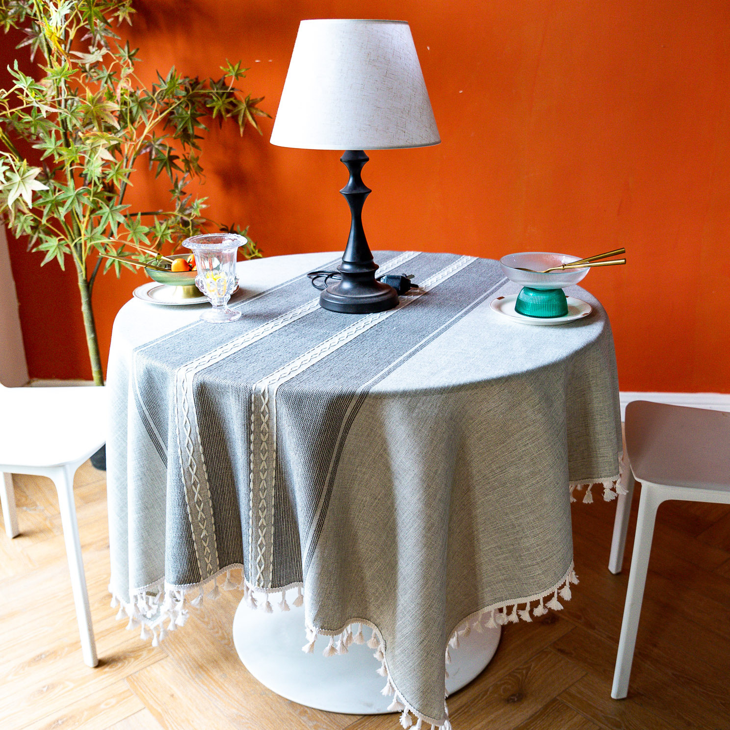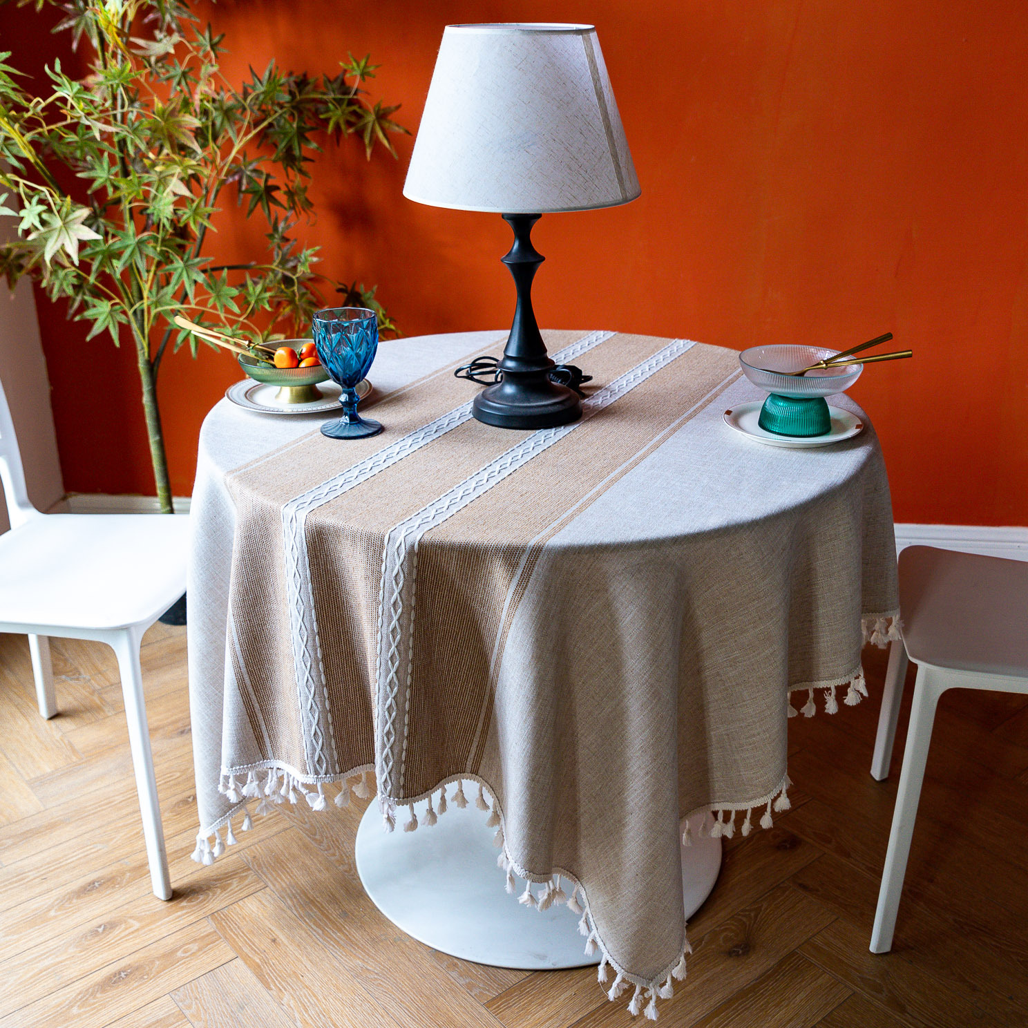 亚麻台布盖布北欧ins桌布布艺棉麻清新餐桌布流苏边长方形茶几布