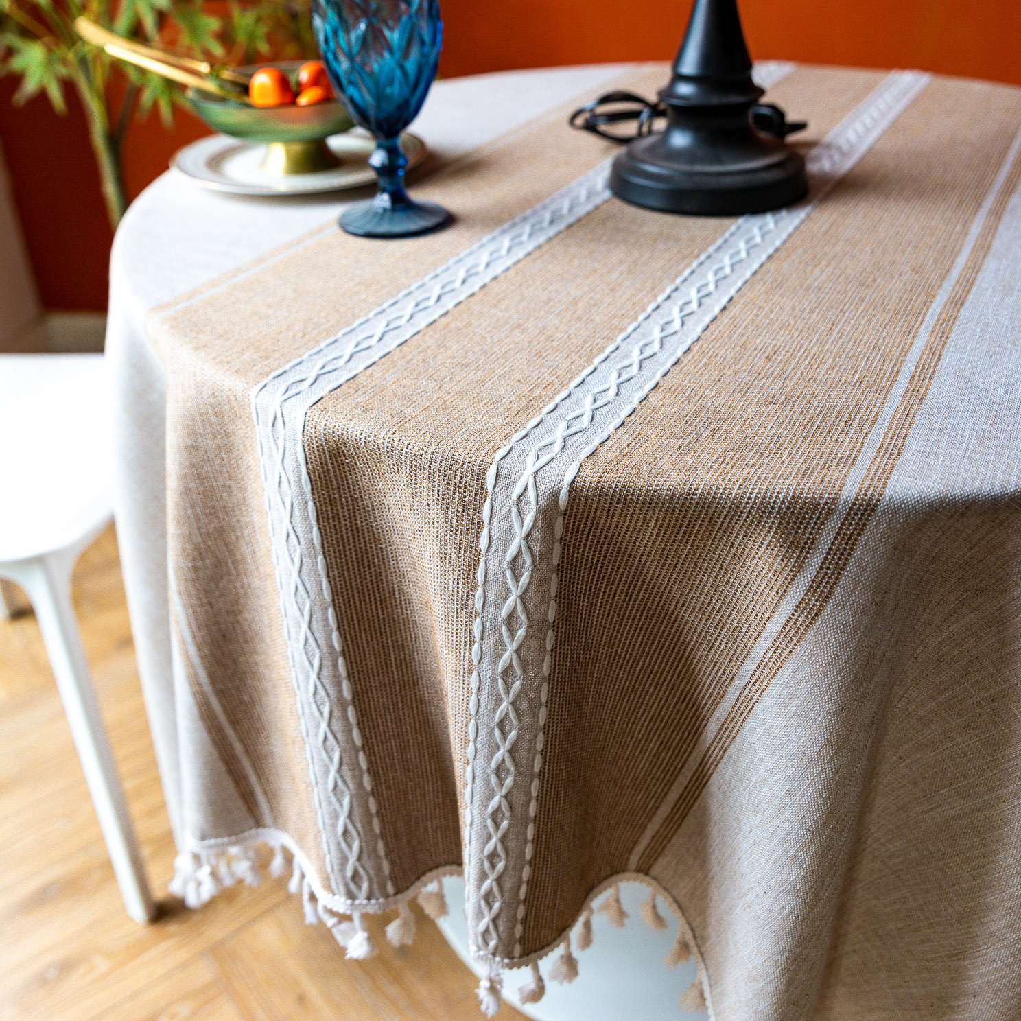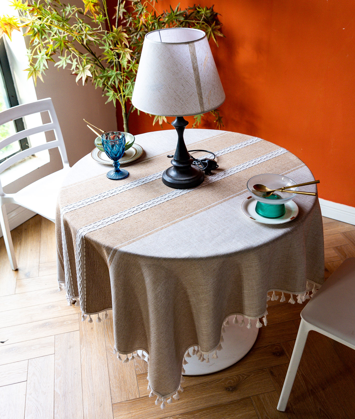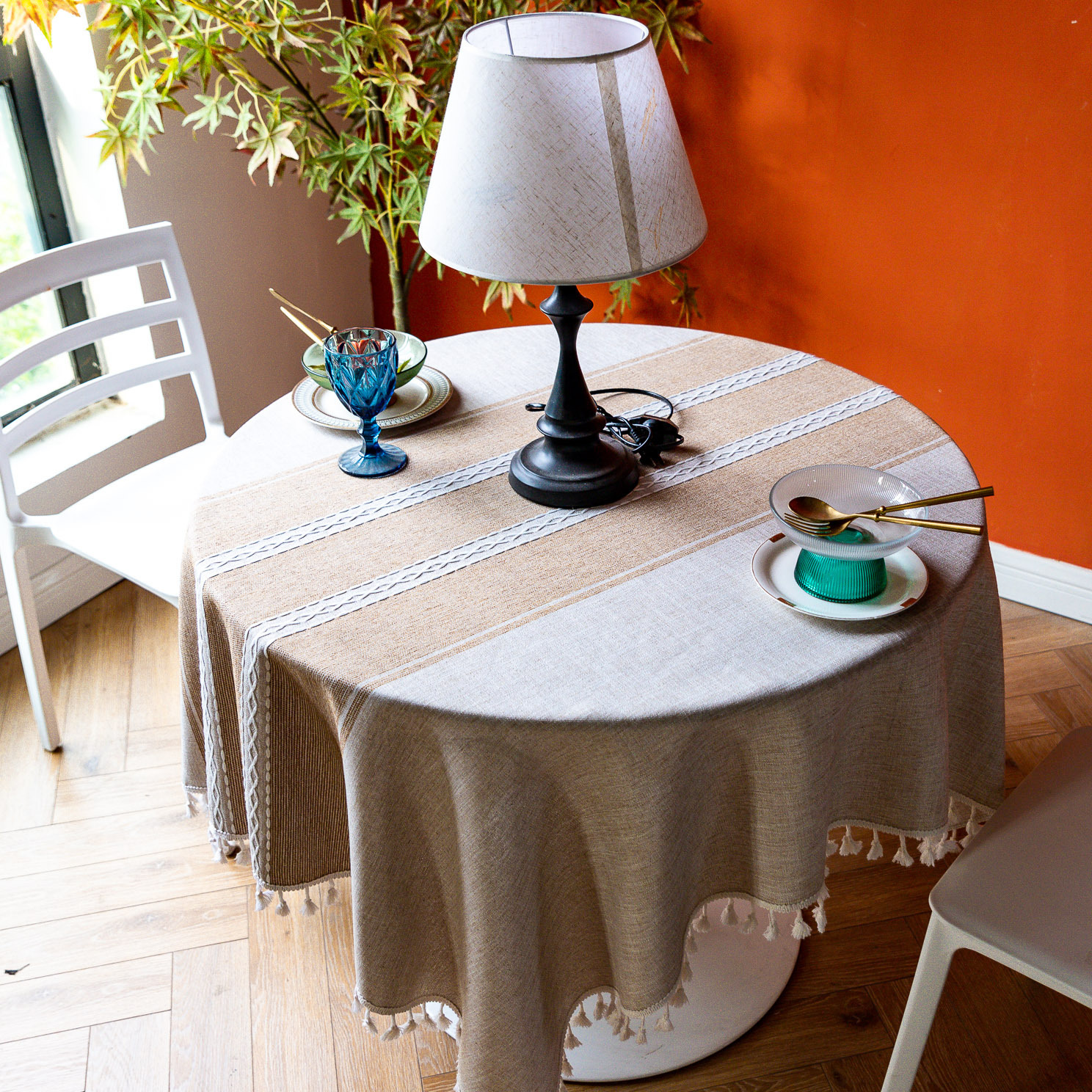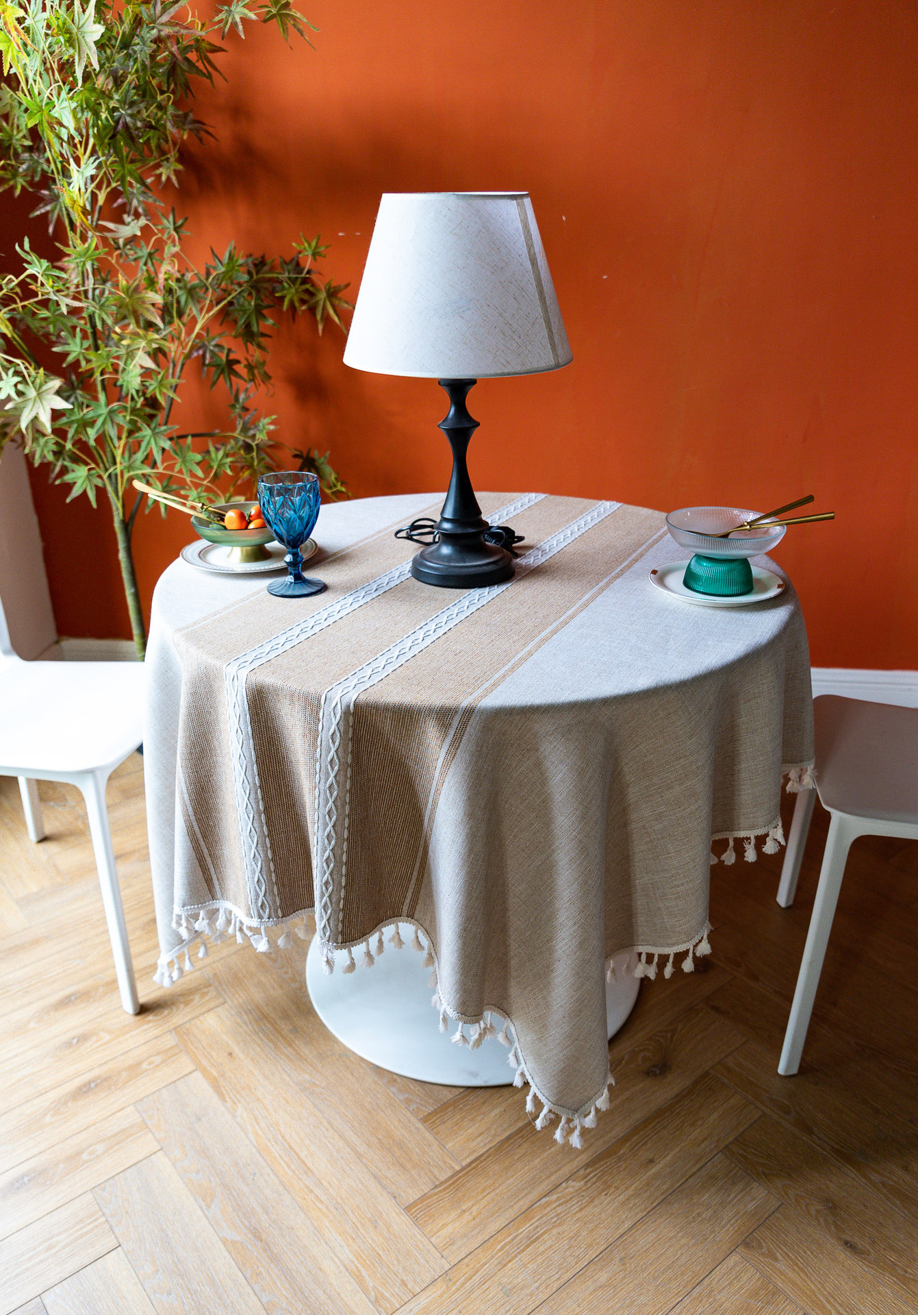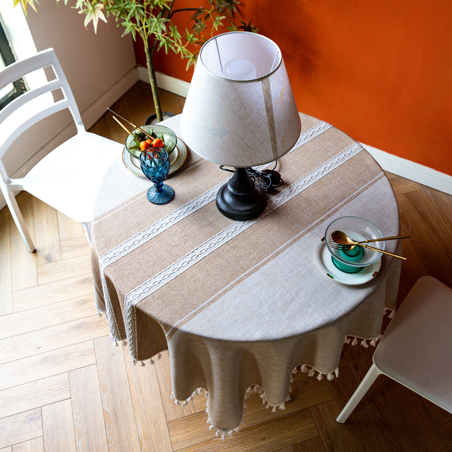 亚麻台布盖布北欧ins桌布布艺棉麻清新餐桌布流苏边长方形茶几布
