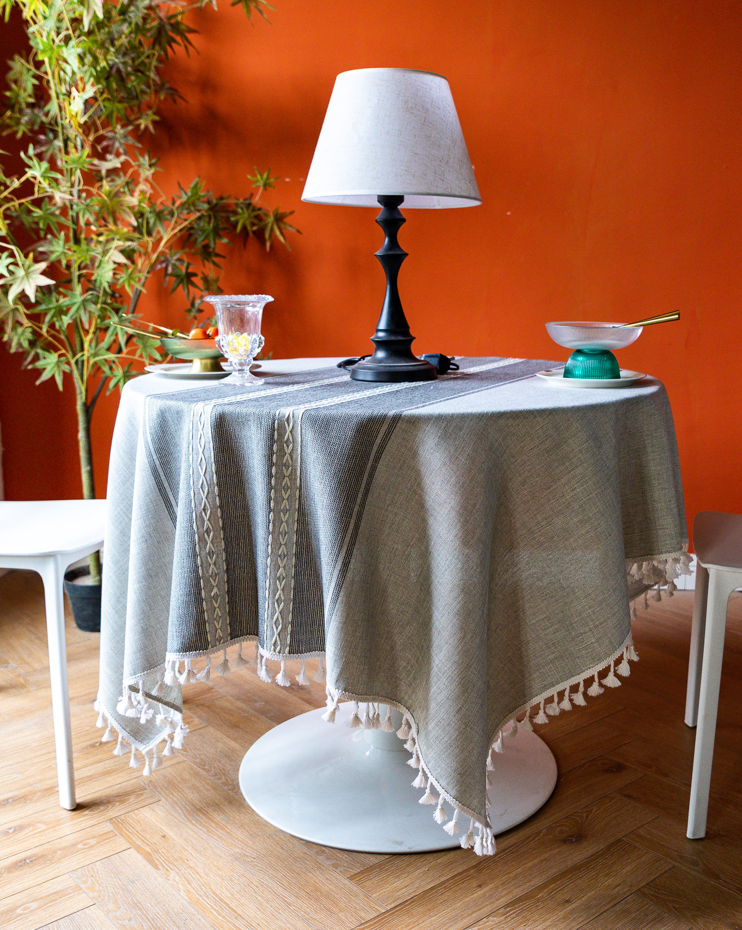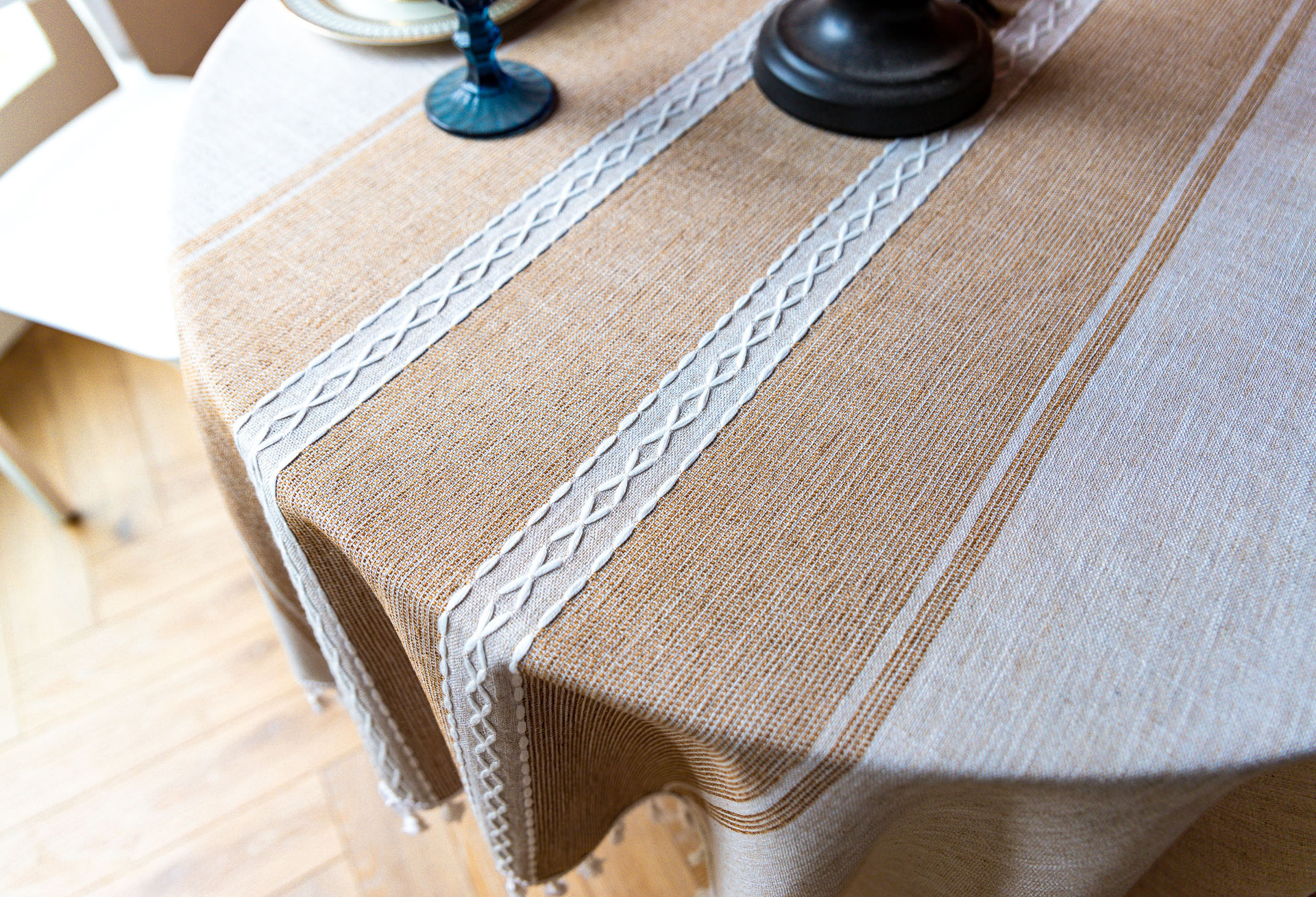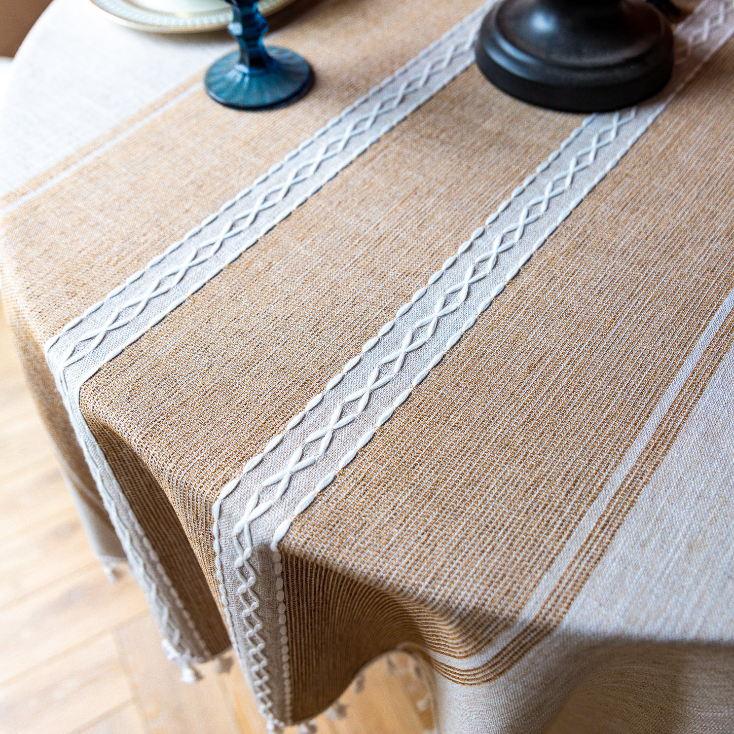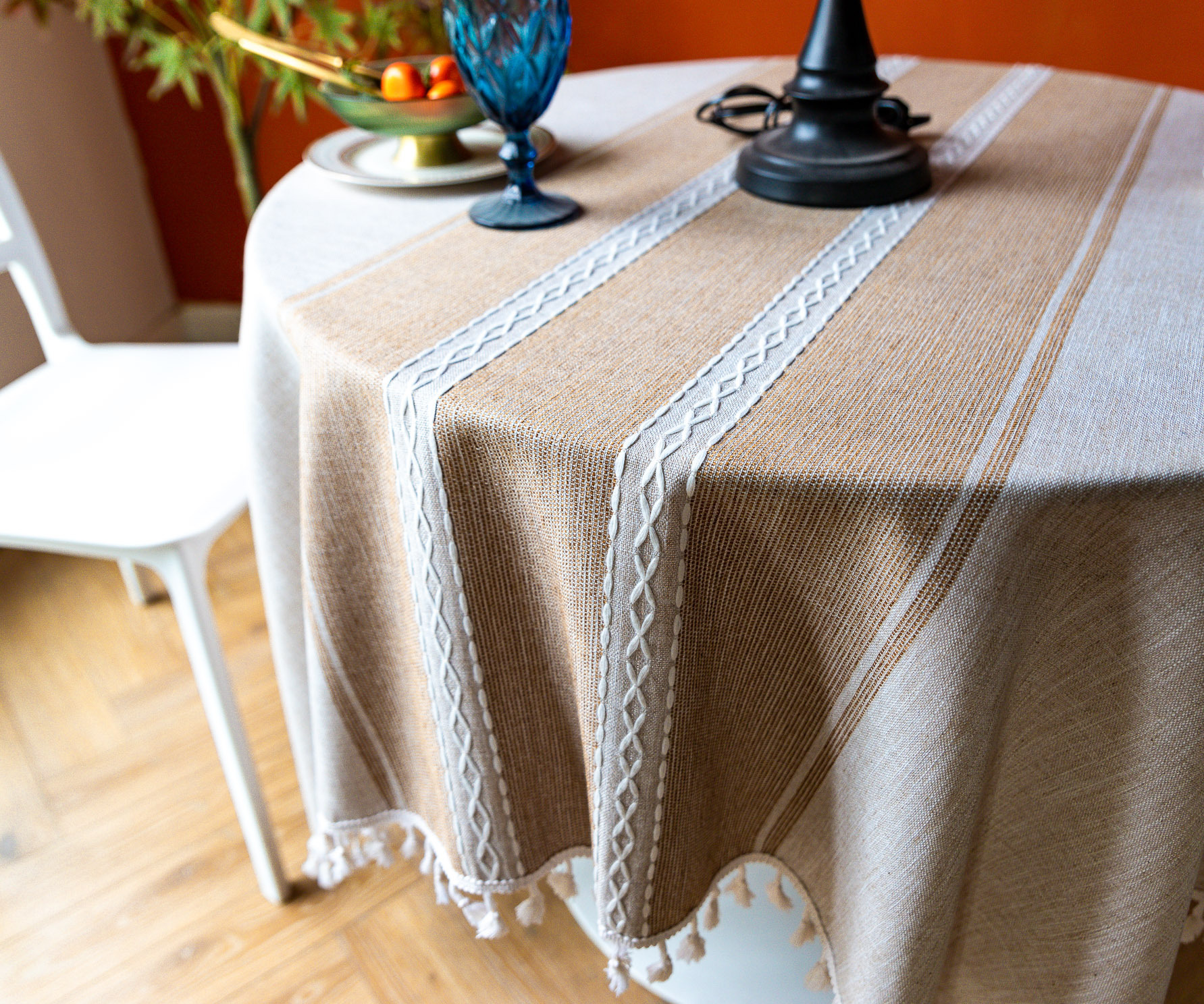 亚麻台布盖布北欧ins桌布布艺棉麻清新餐桌布流苏边长方形茶几布