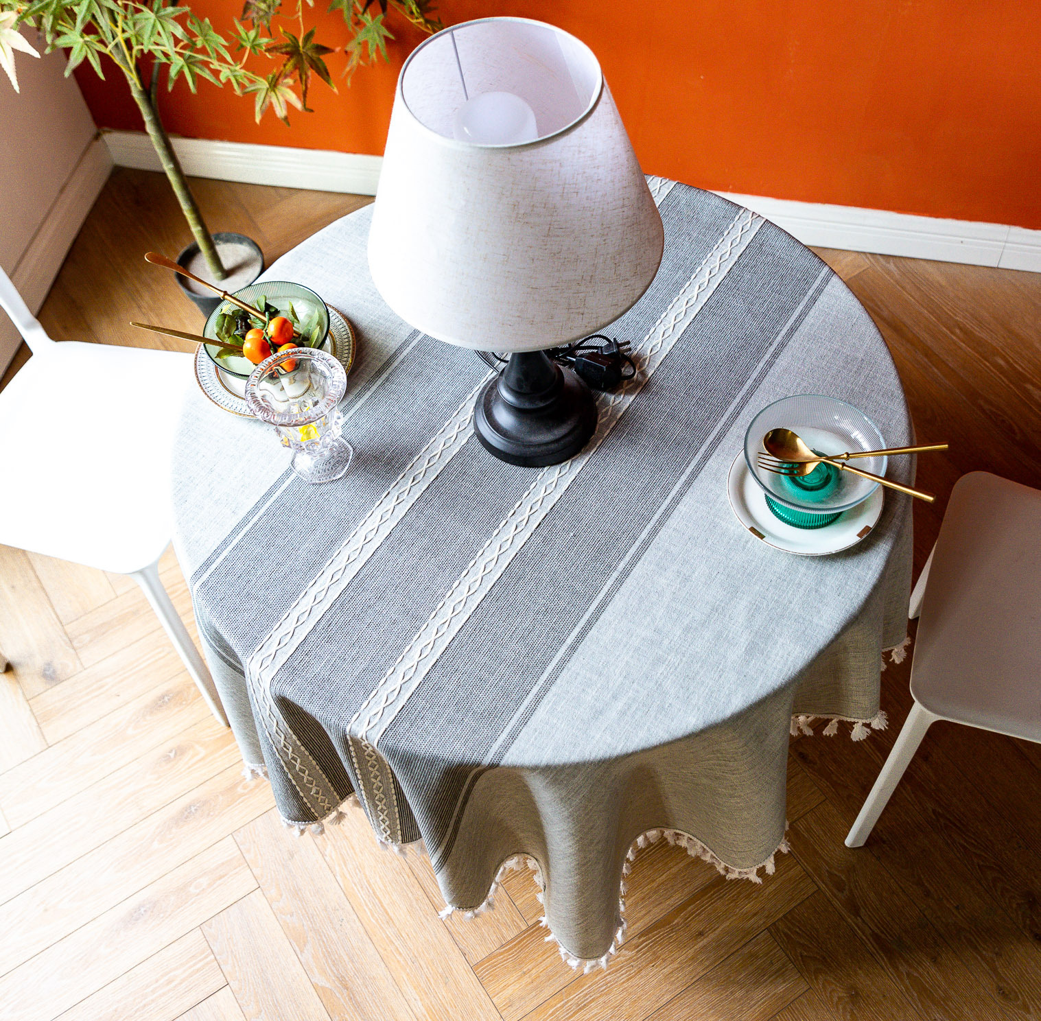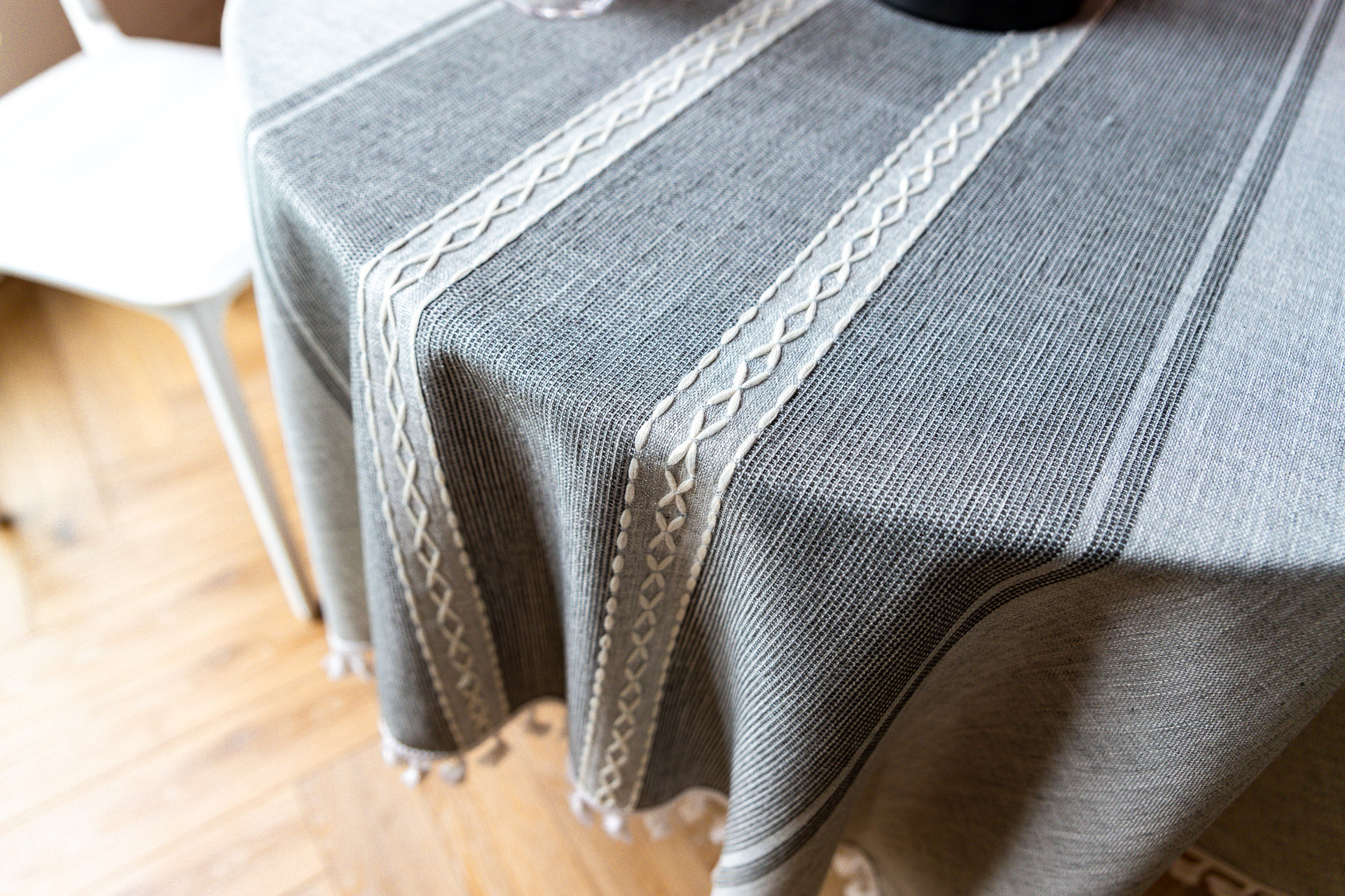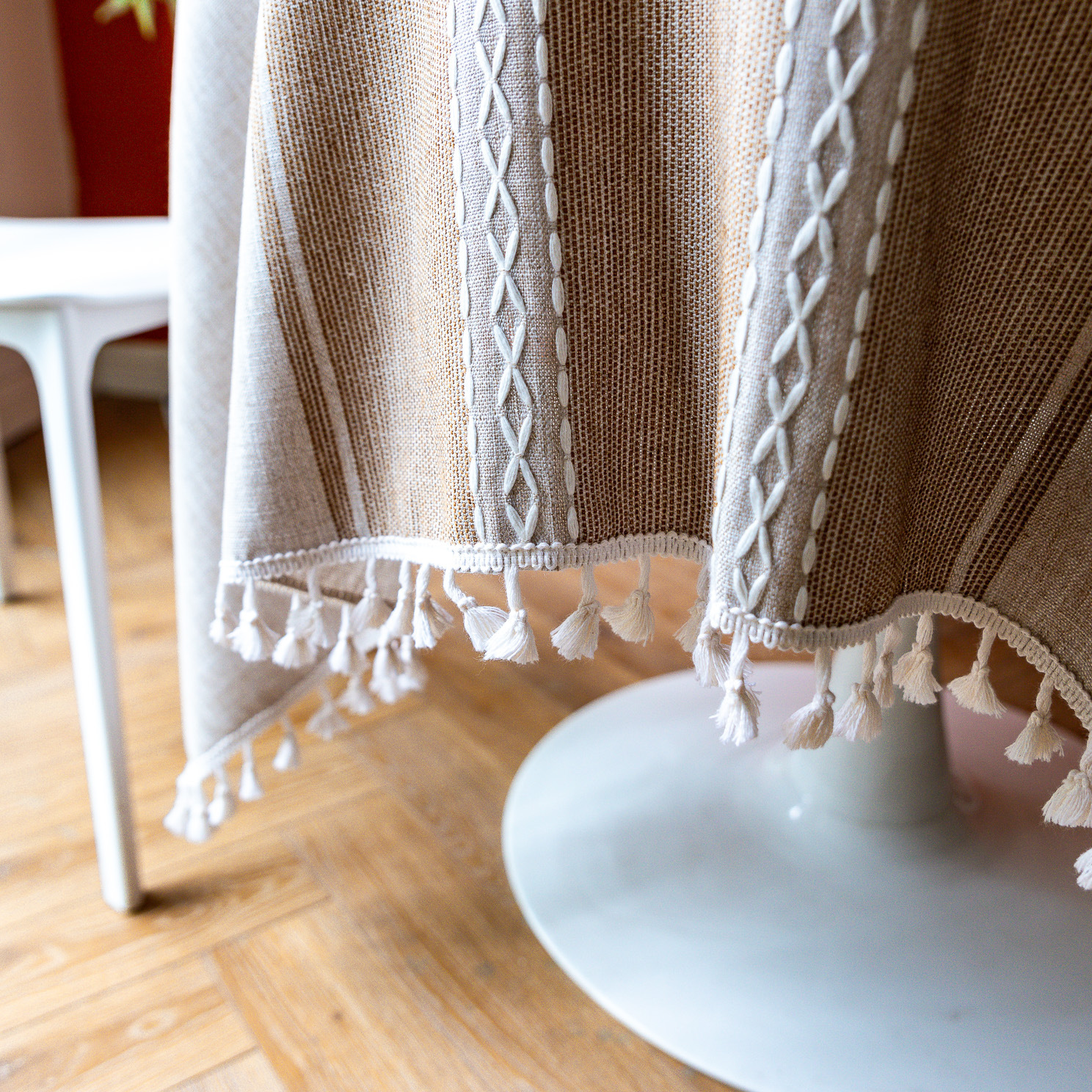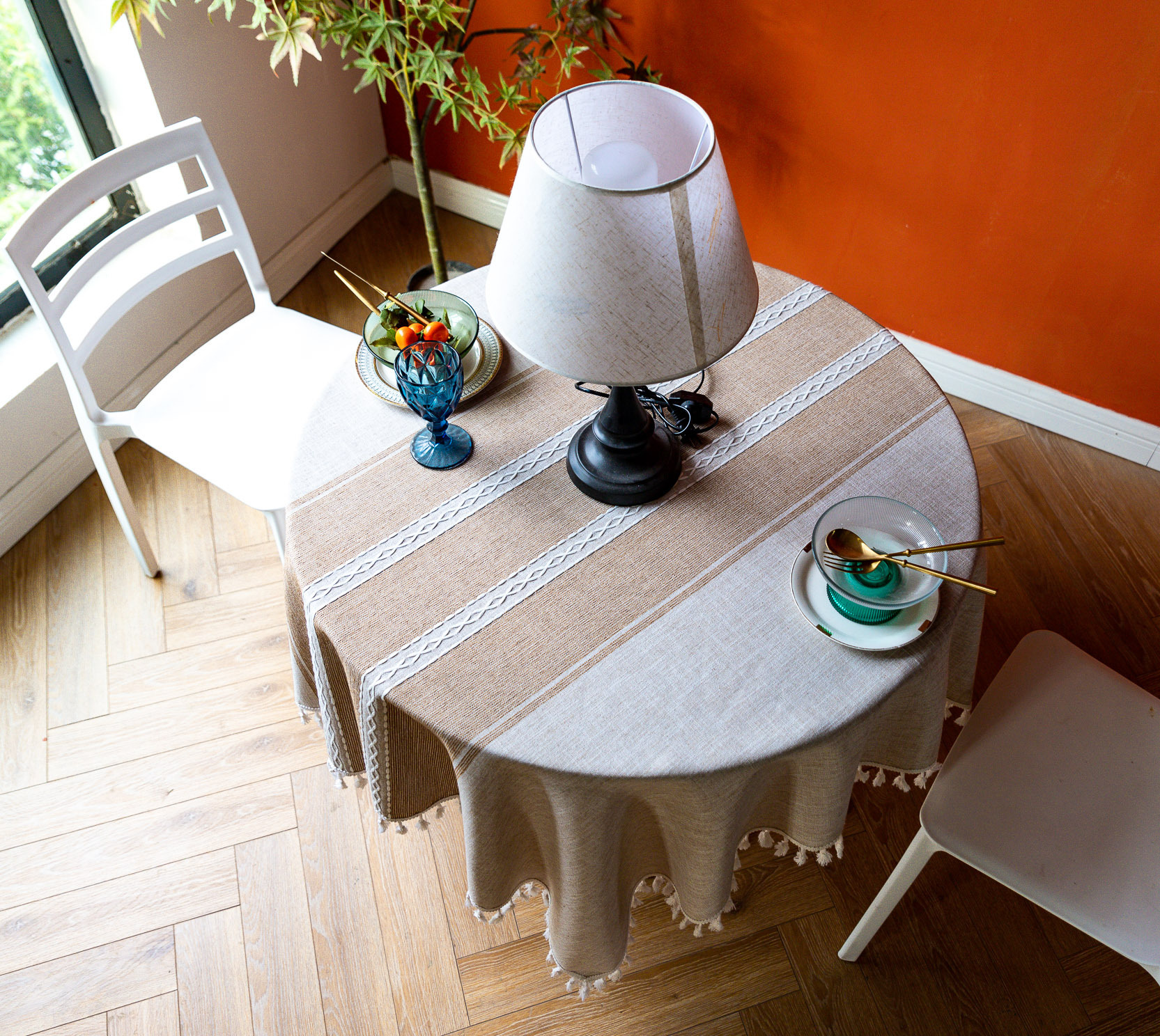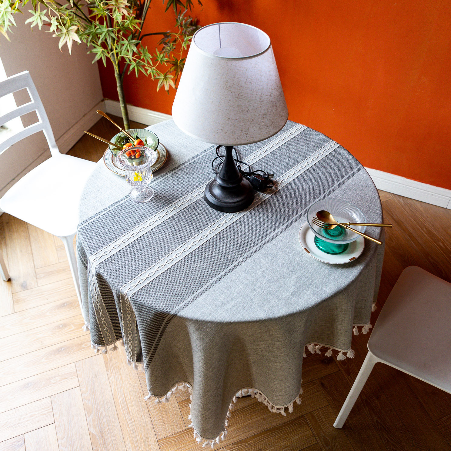 亚麻台布盖布北欧ins桌布布艺棉麻清新餐桌布流苏边长方形茶几布
