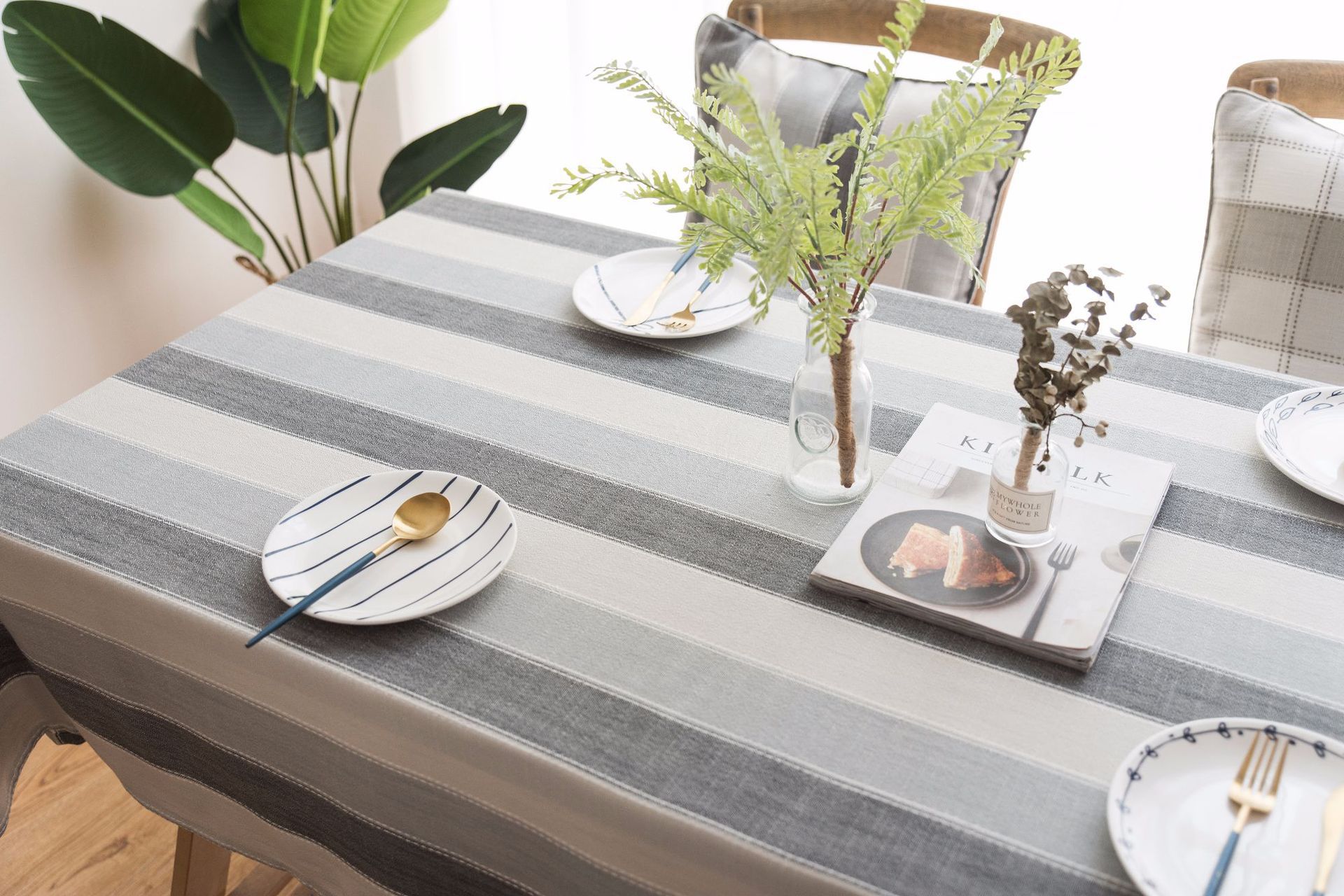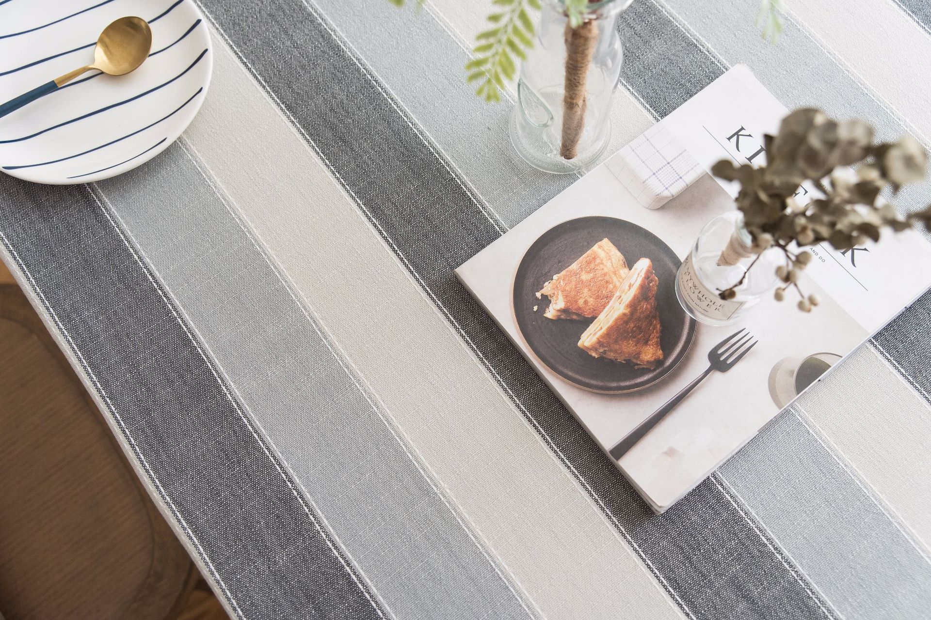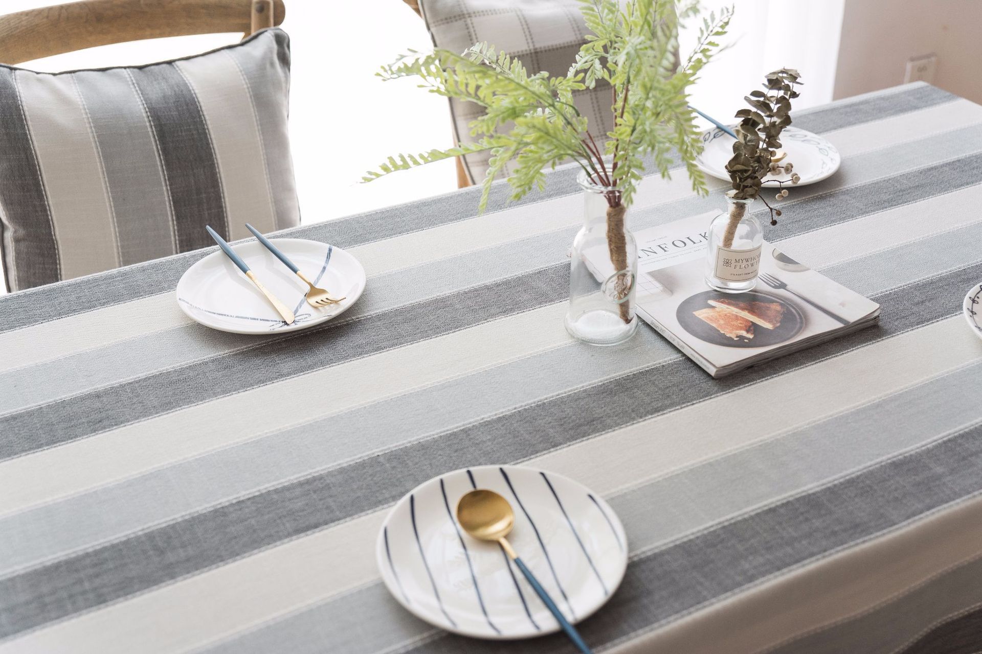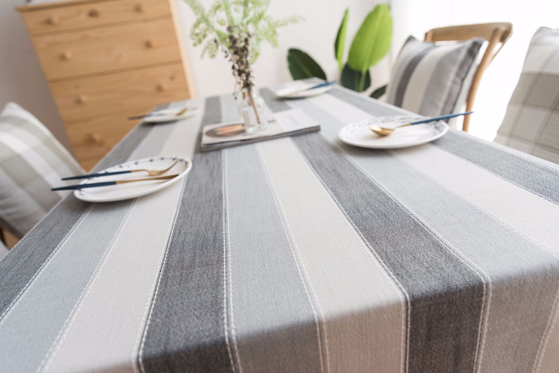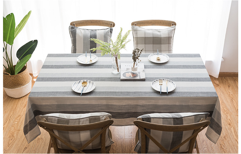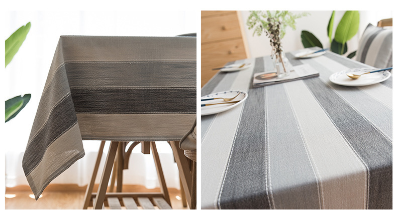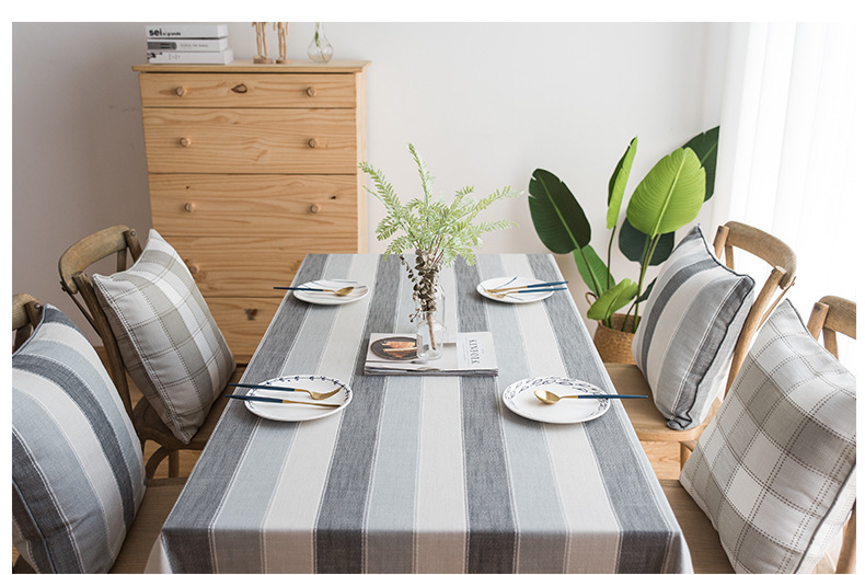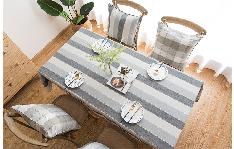 跨境条纹棉麻小清新布艺桌布北欧式客厅美国餐桌垫长方形茶几台布
