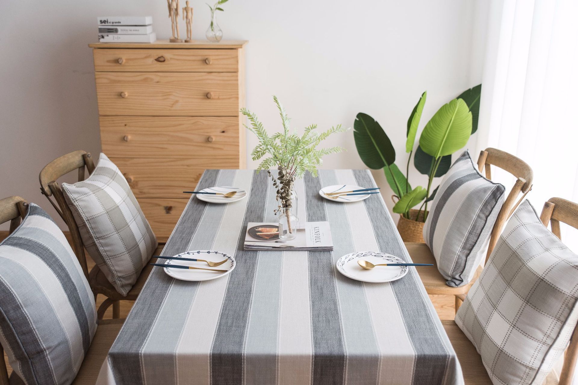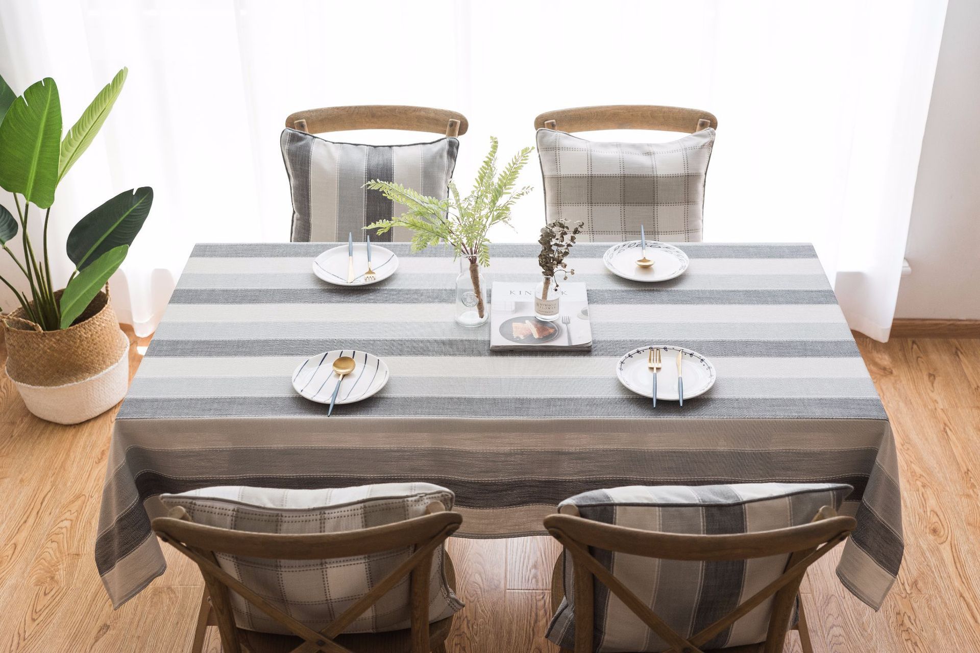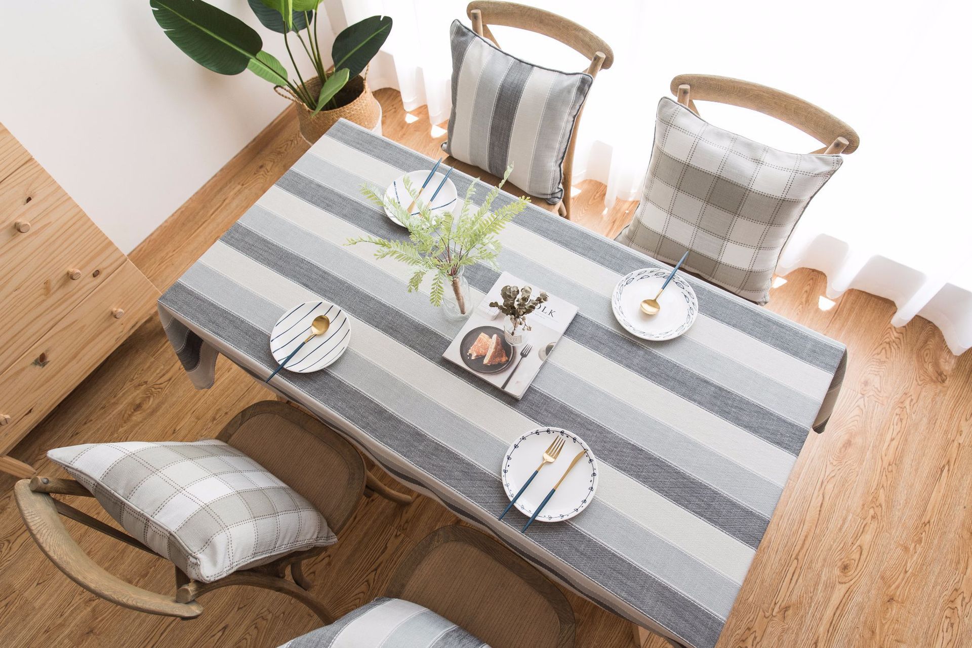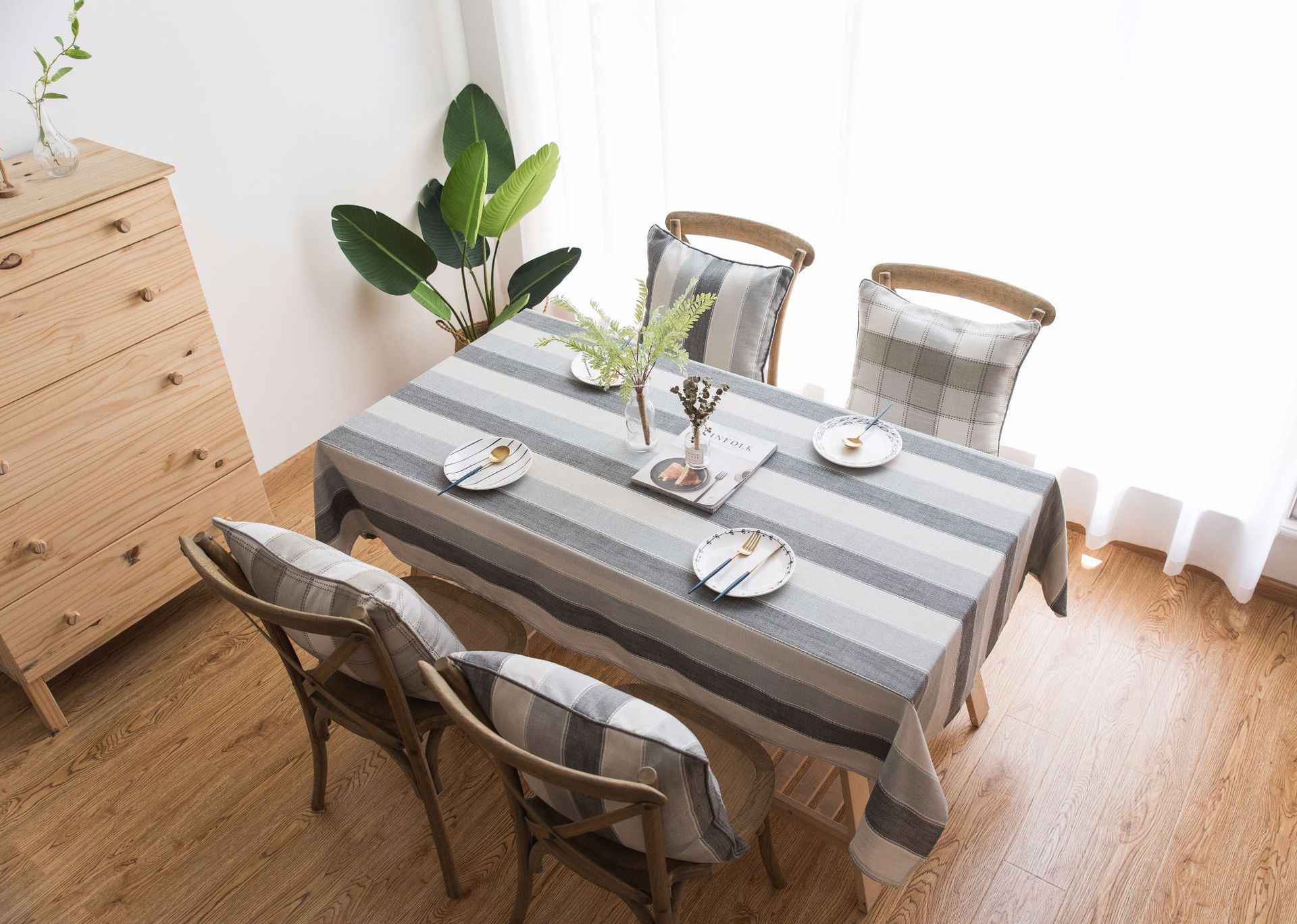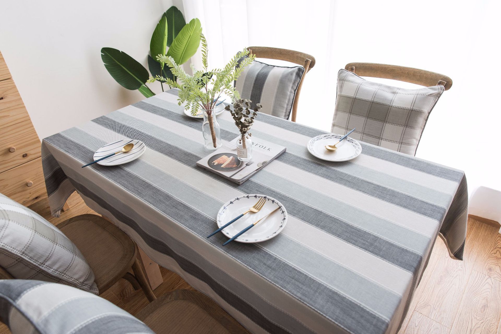跨境条纹棉麻小清新布艺桌布北欧式客厅美国餐桌垫长方形茶几台布