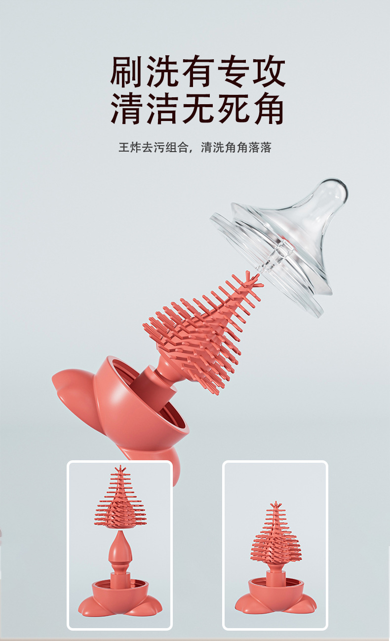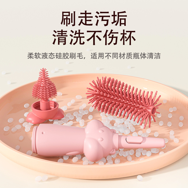 硅胶奶瓶刷婴儿奶嘴刷吸管刷旋转洗奶瓶刷子懒人清洁刷清洗刷套装