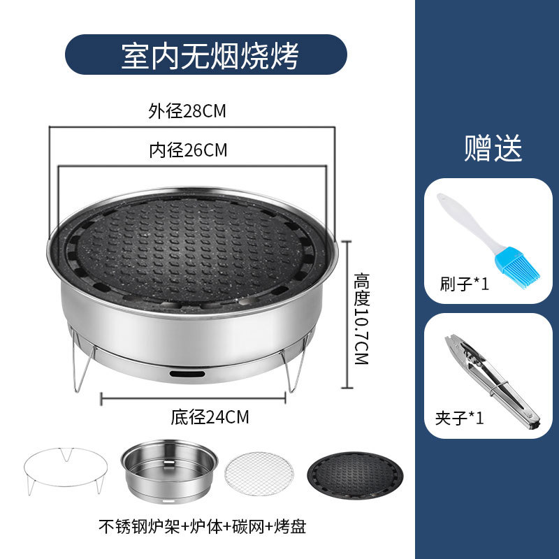 厂家直供 户外木炭无烟便携28cm碳烤炉外卖烤肉套餐一次性烧烤炉