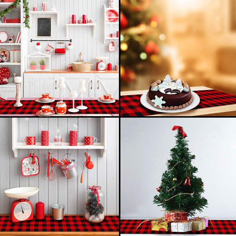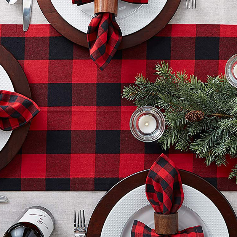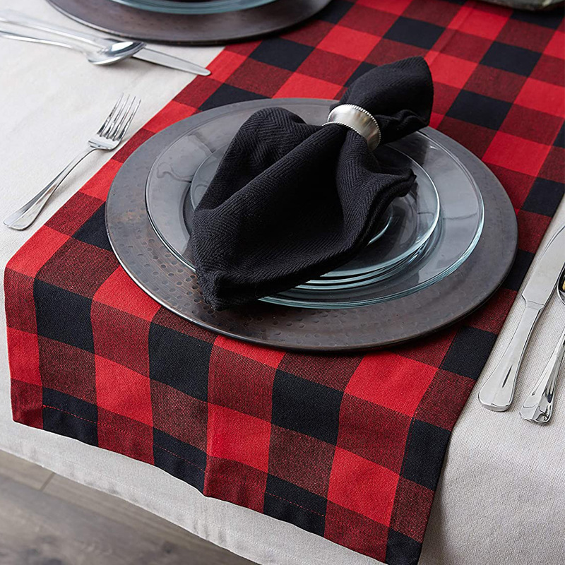 黑白格圣诞风家居装饰红黑格欧美风格子布桌旗茶几电视柜餐桌盖巾