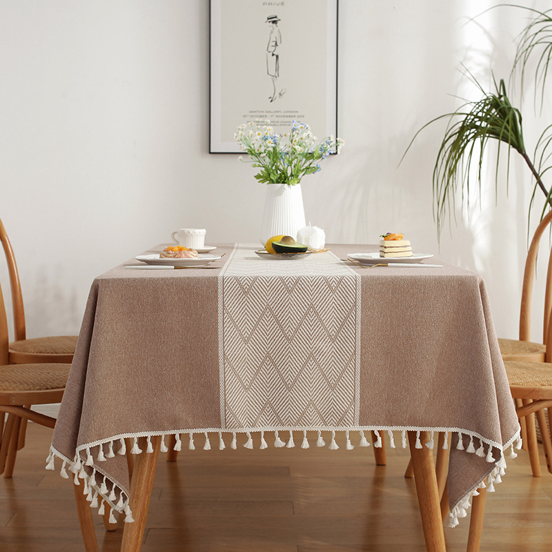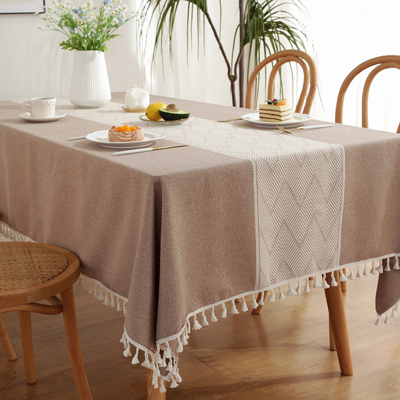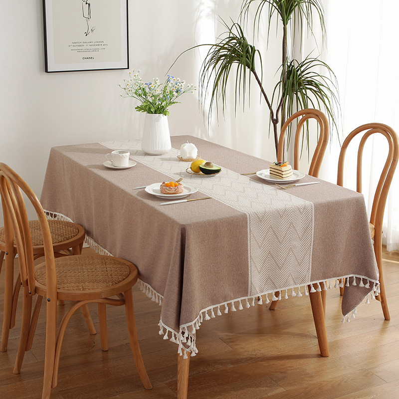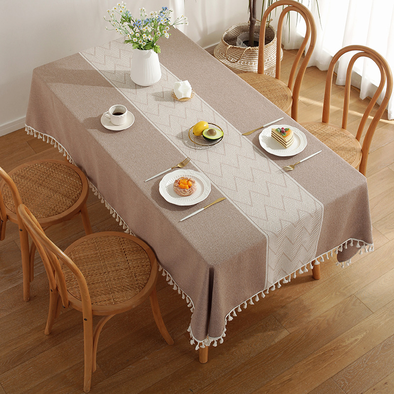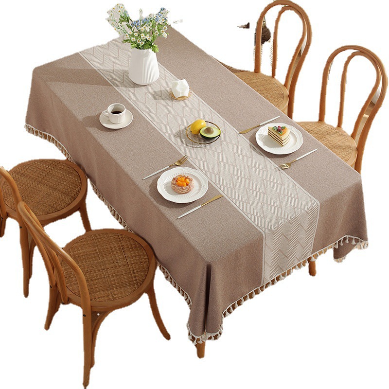 聚家北欧桌布卡其提花厚实餐桌布涤沦仿棉麻流苏花边桌布一件代发