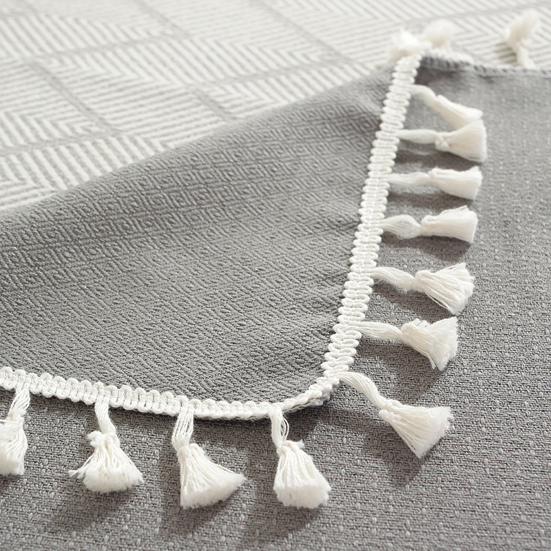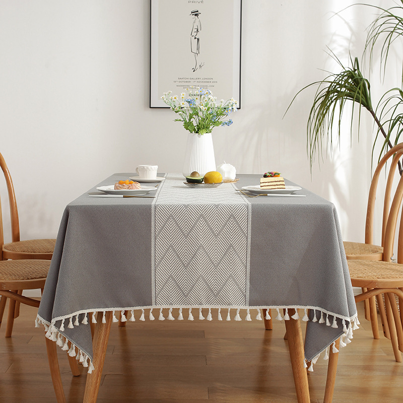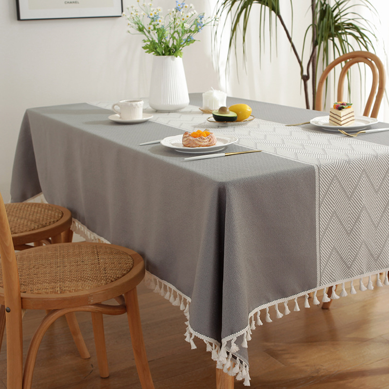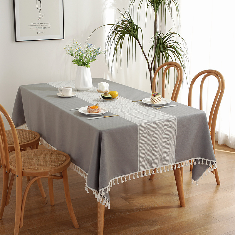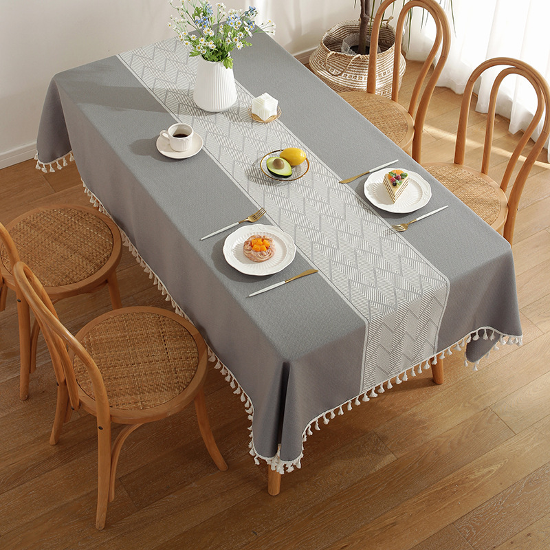 聚家北欧桌布卡其提花厚实餐桌布涤沦仿棉麻流苏花边桌布一件代发