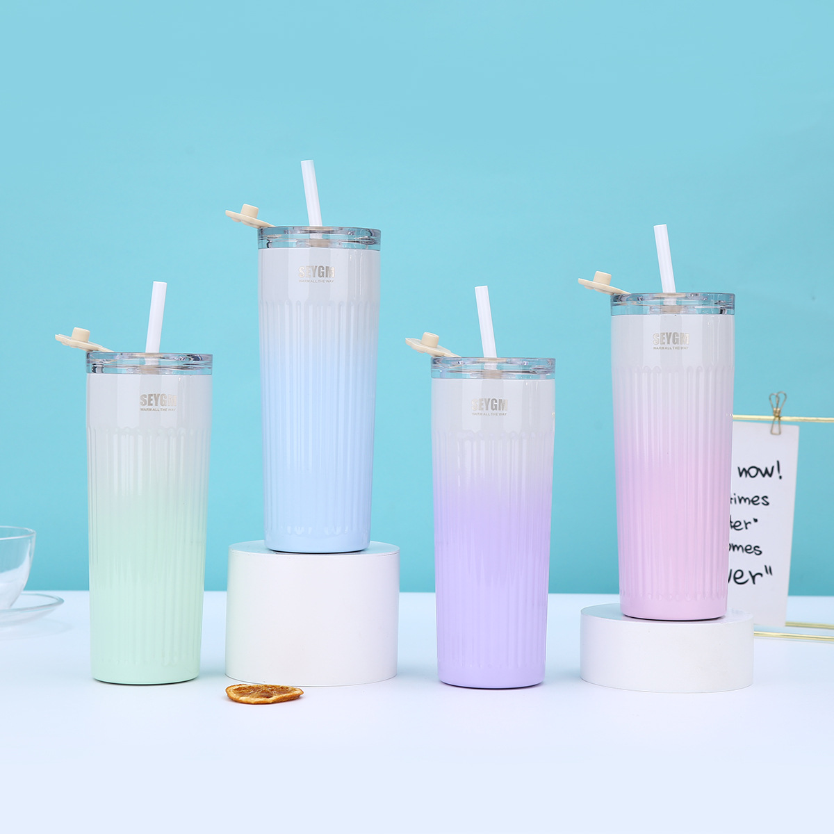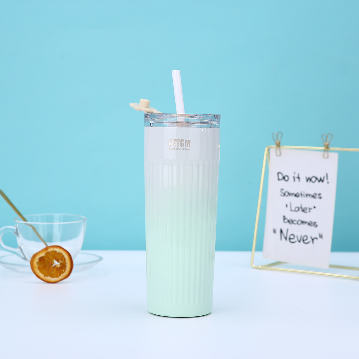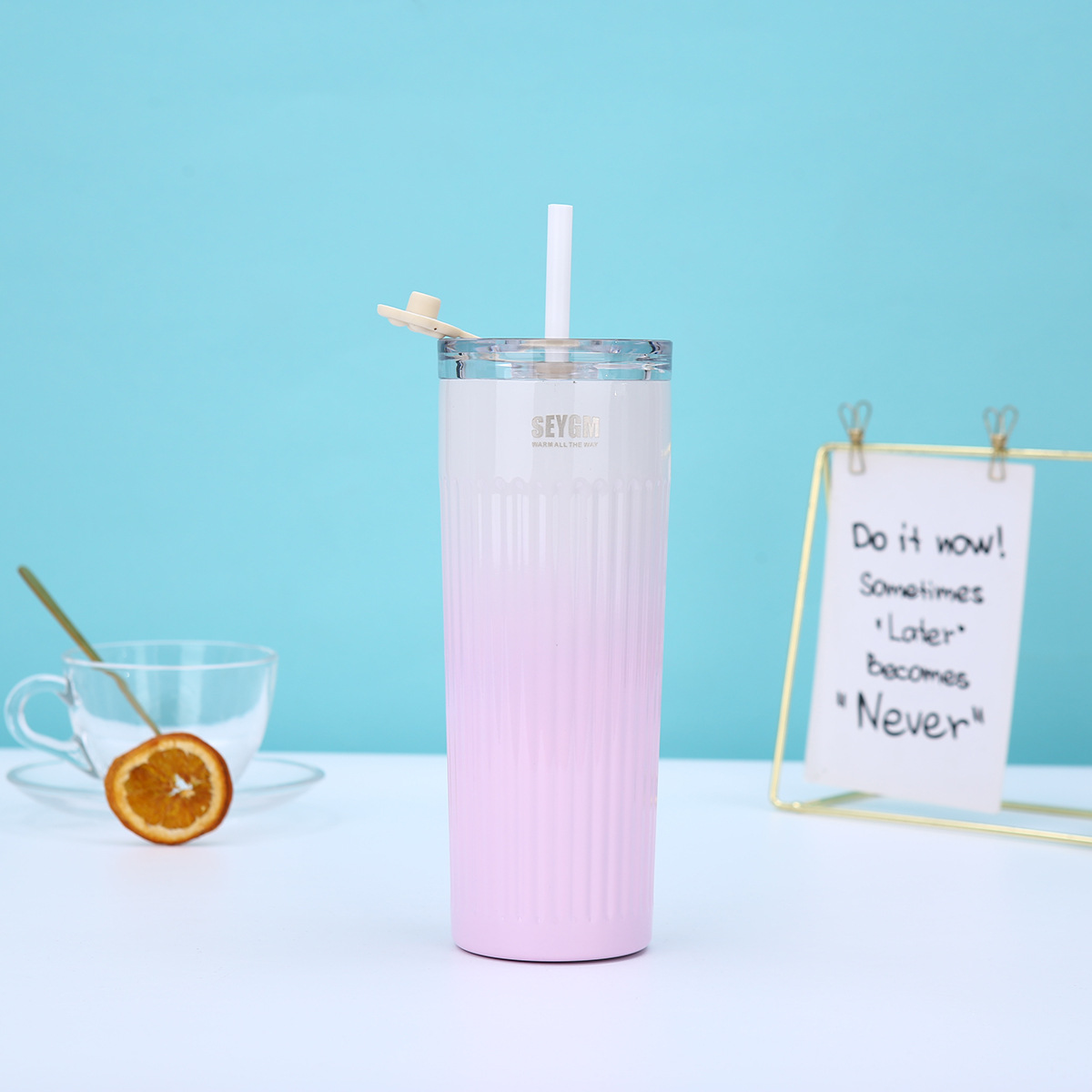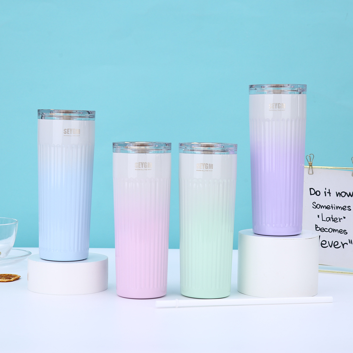 星爸爸高颜值竖条纹保温杯商务办公耐高温吸管杯车载渐变咖啡杯