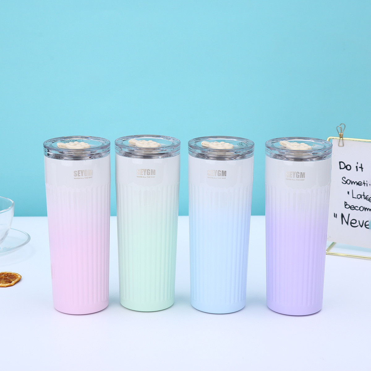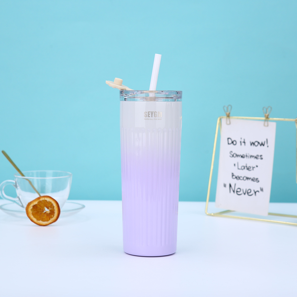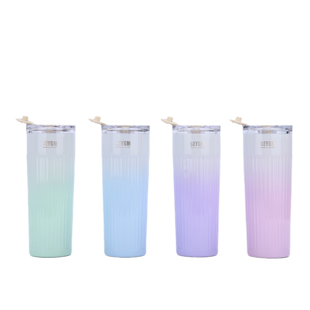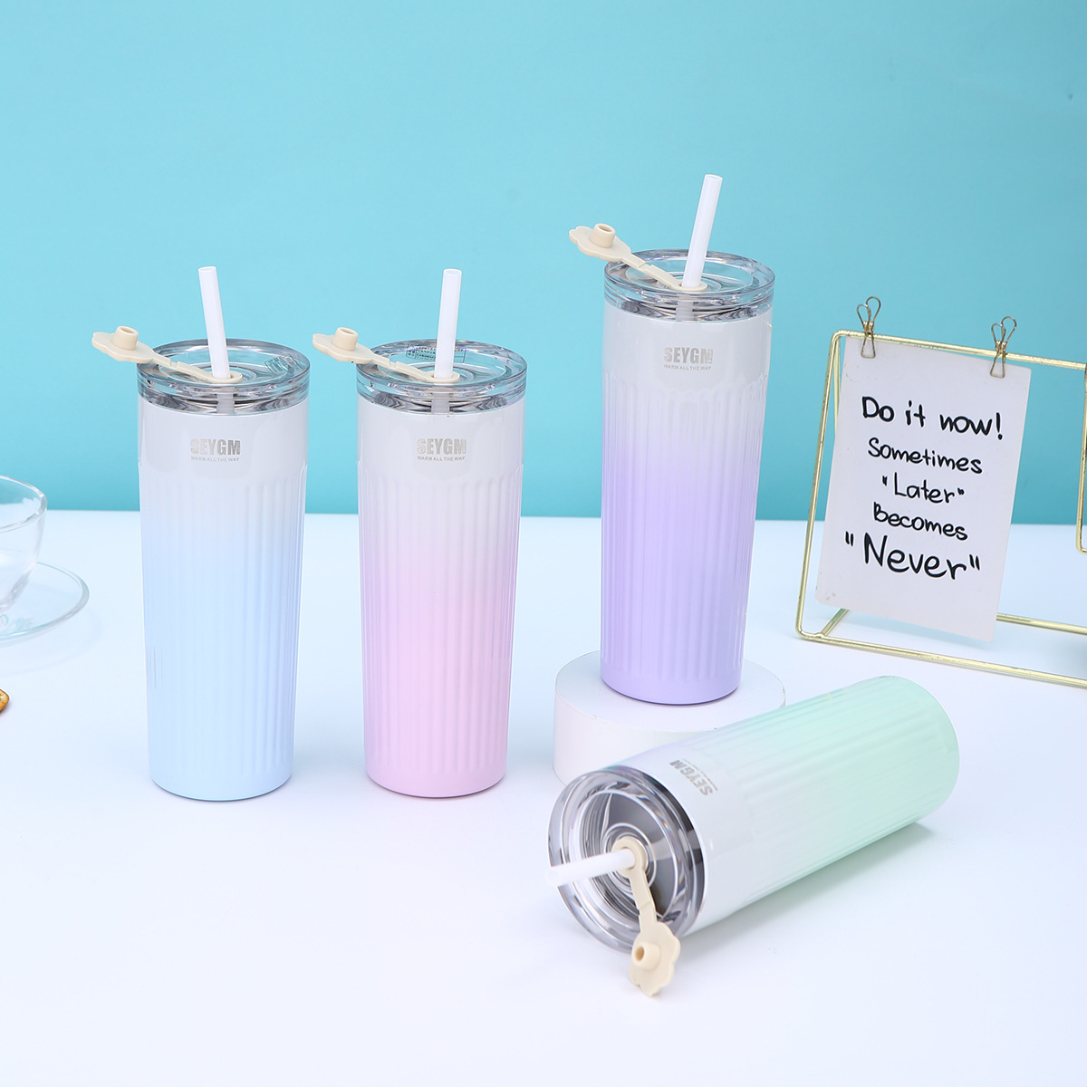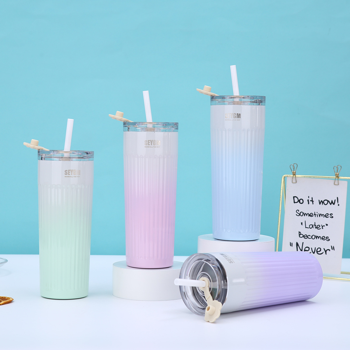 星爸爸高颜值竖条纹保温杯商务办公耐高温吸管杯车载渐变咖啡杯