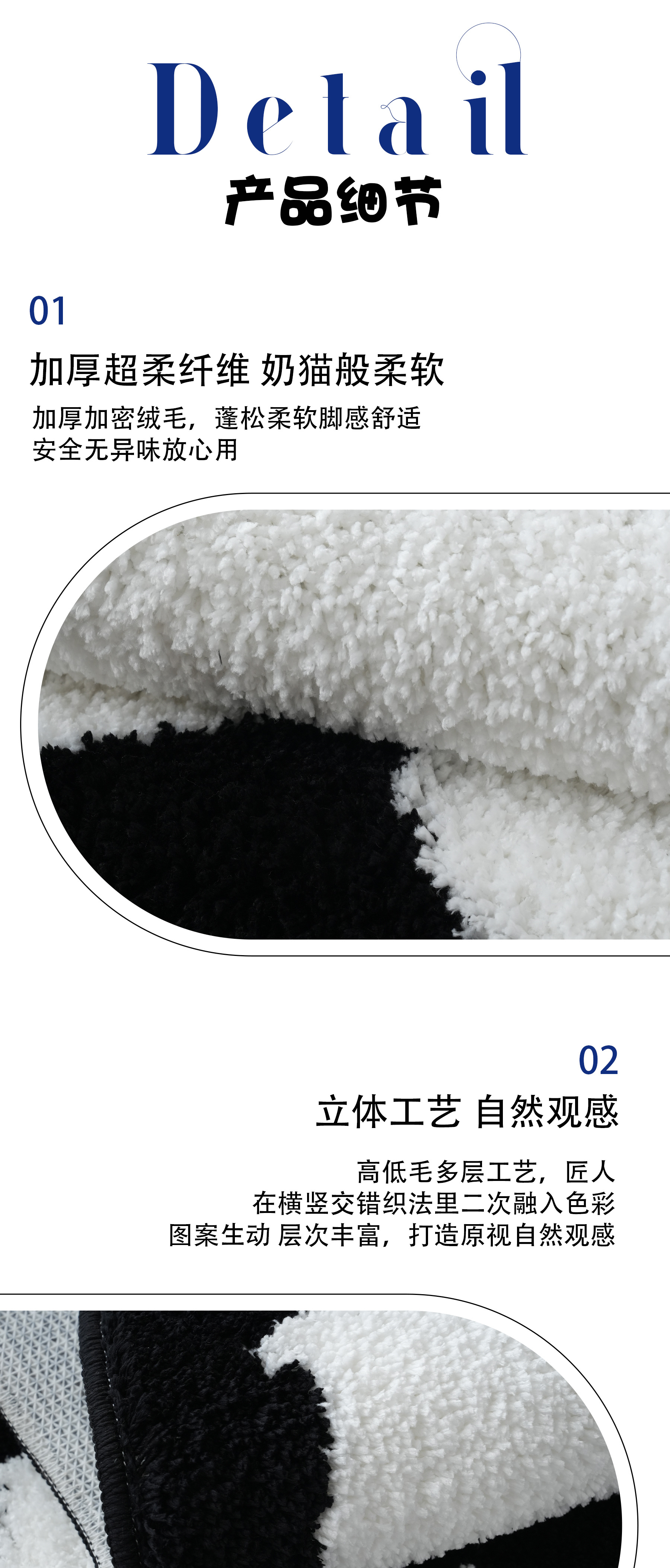 植绒地毯跨境一件代发不规则长毛手工簇绒威尔顿机织可折叠地毯