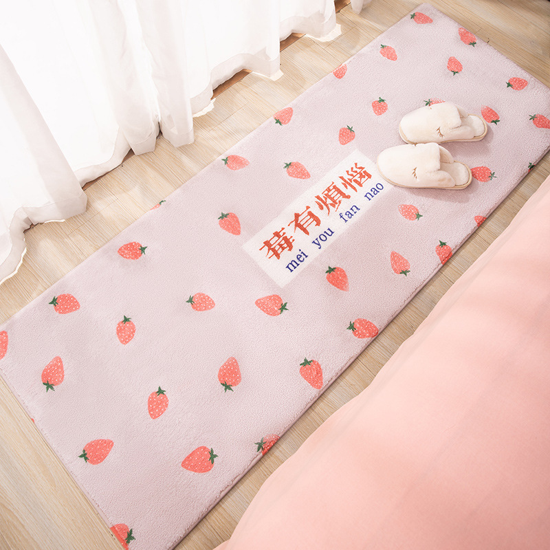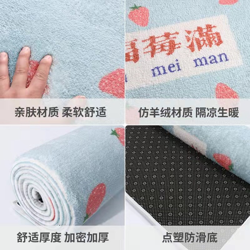 羊羔绒地垫草莓床边毯儿童房榻榻米防摔地垫长方形加绒加厚地毯
