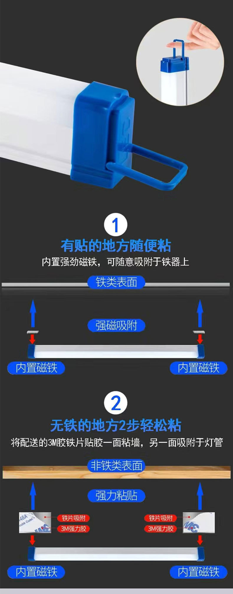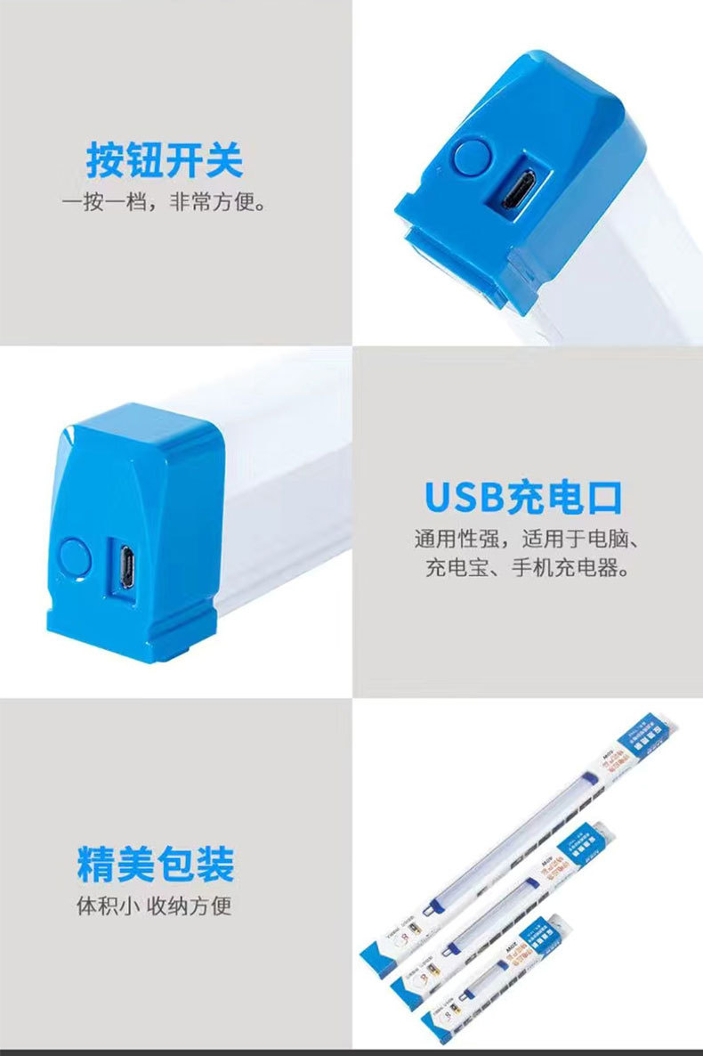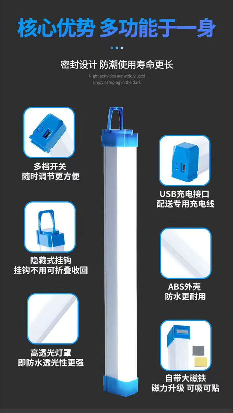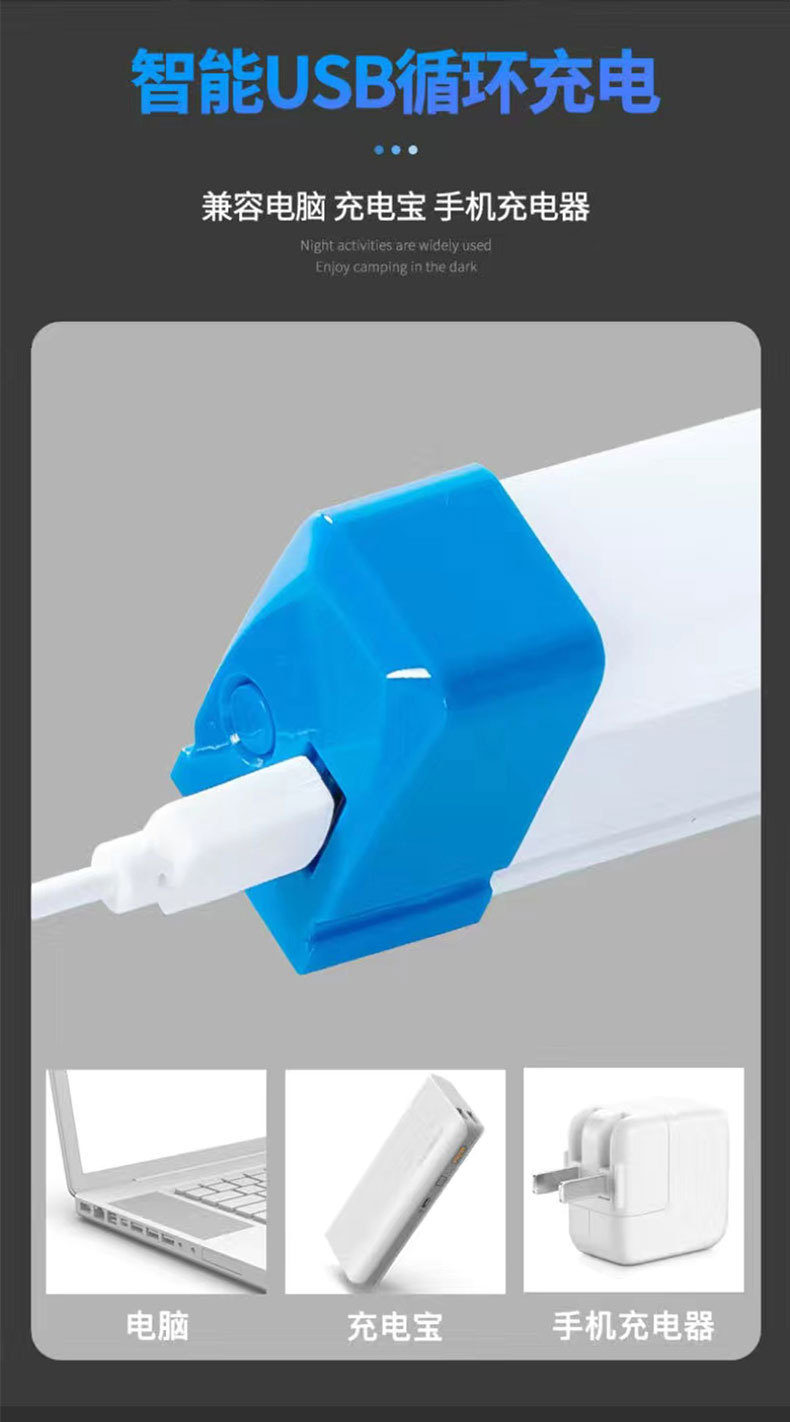 长条日光灯USB充电高亮户外LED灯能露营地摊灯夜市摆摊灯节能灯