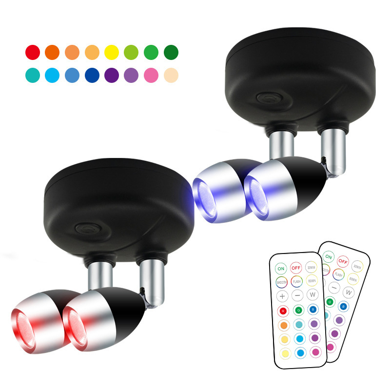 13色无线rgb遥控橱柜射灯跨境角度可调节氛围led拍拍灯小夜灯