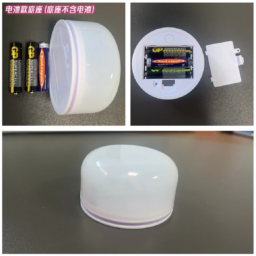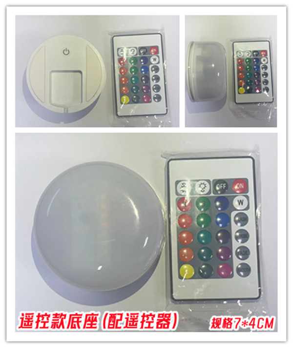 底座功能描述:开机暖白,拍变红色,拍变绿色,拍变蓝色,拍变七彩呼 吸闪,拍灭,循环。