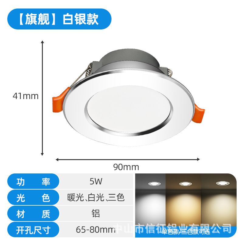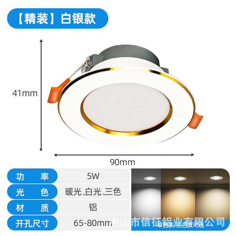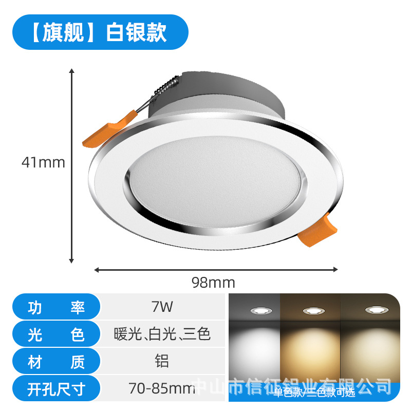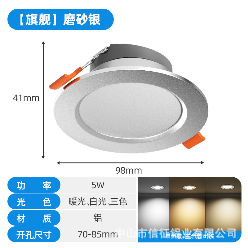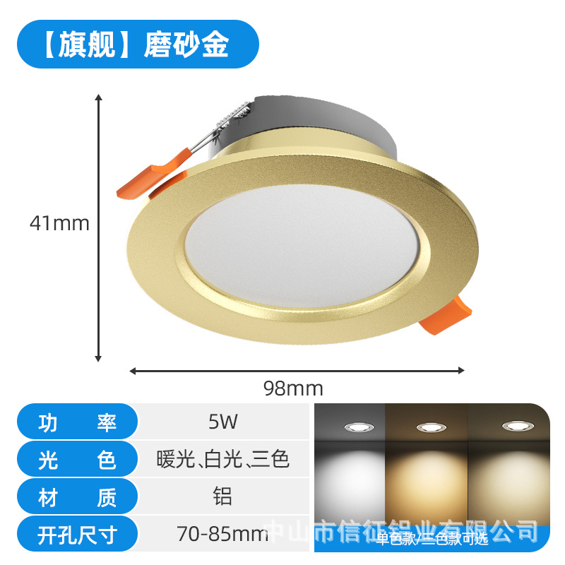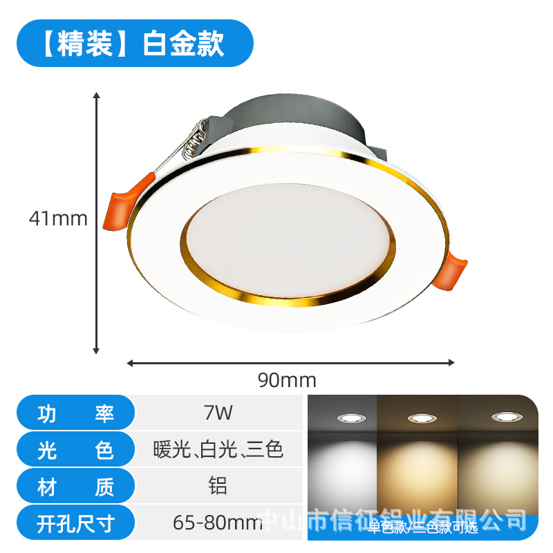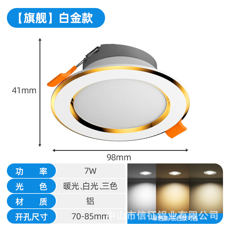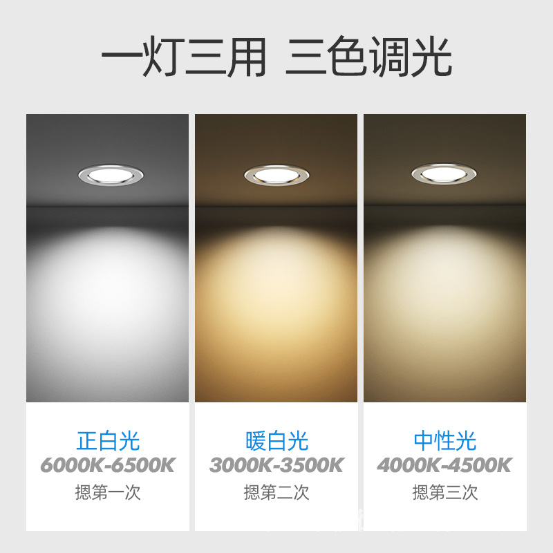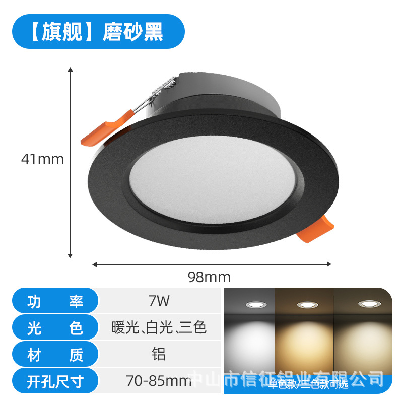 超亮led筒灯嵌入式天花射灯5W7W开孔暗装三色变光黑色简灯孔桶灯