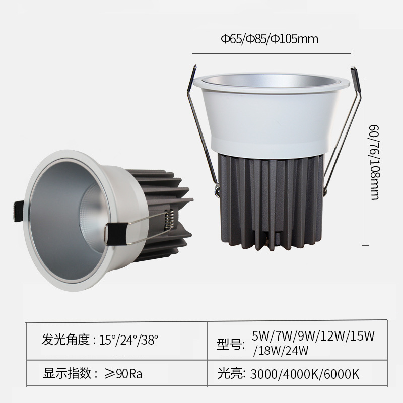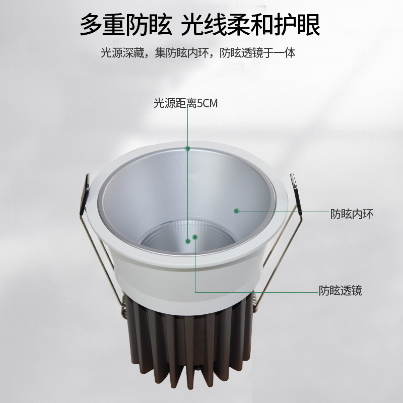 防眩洗墙射灯 小山丘LED天花筒灯窄边家用别墅客厅嵌入式COB射灯