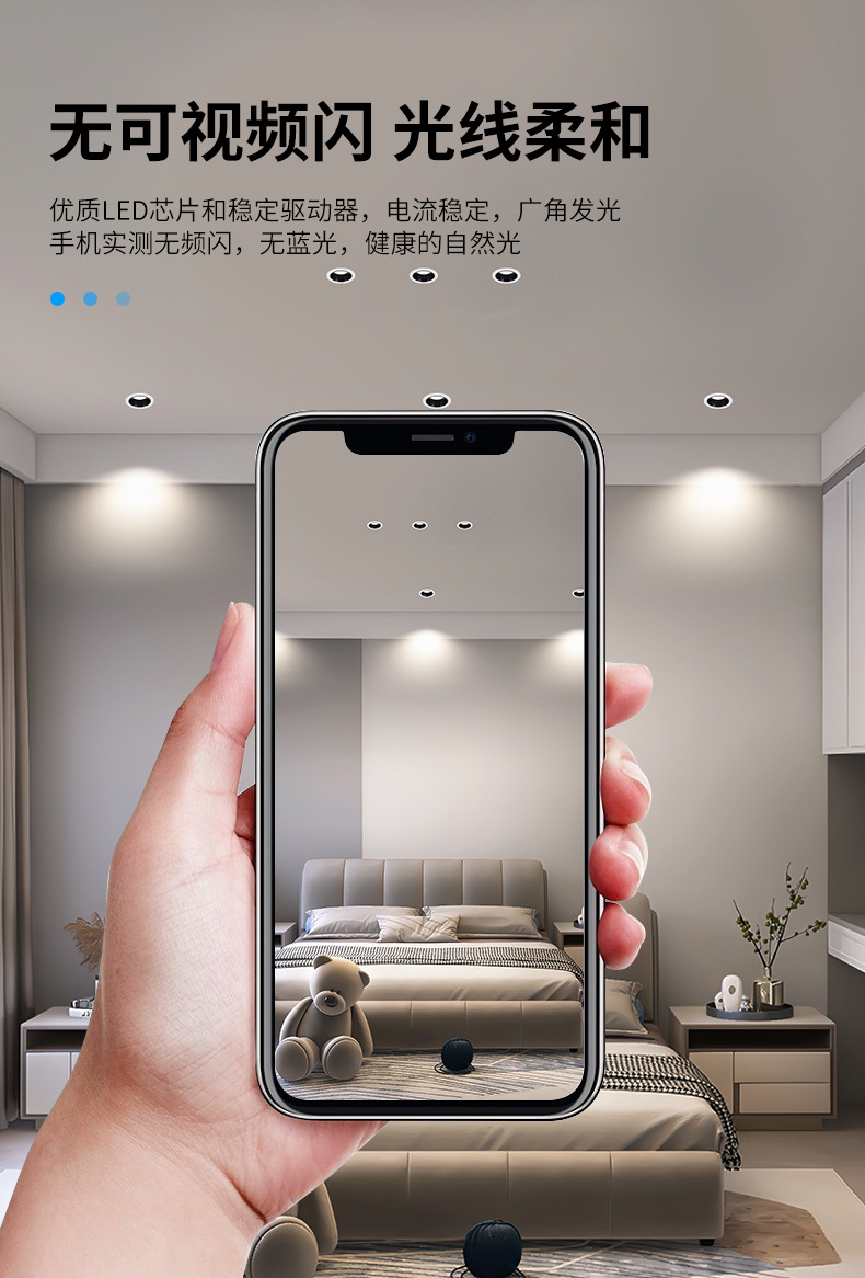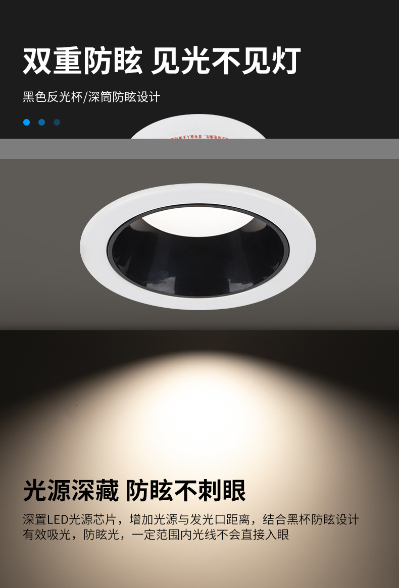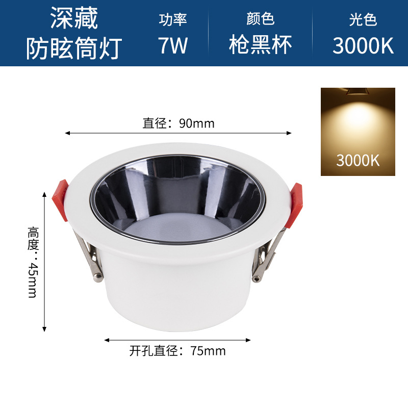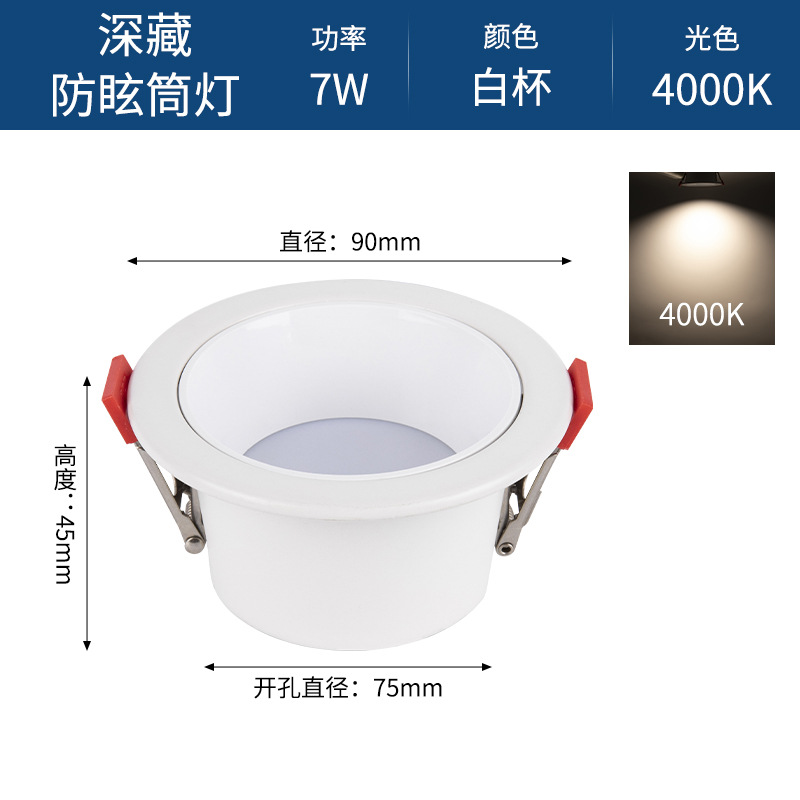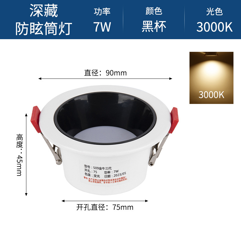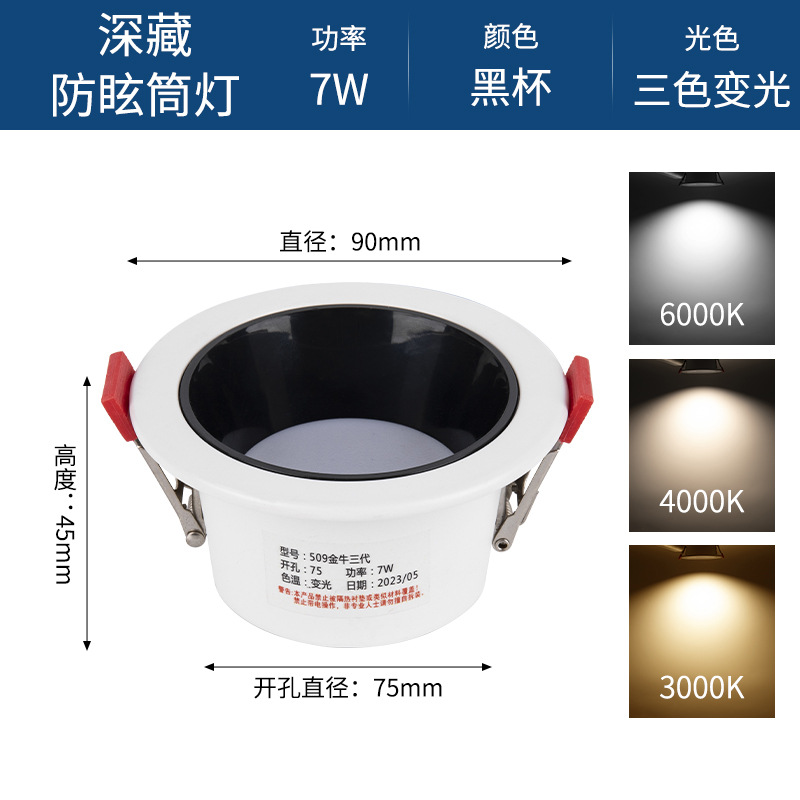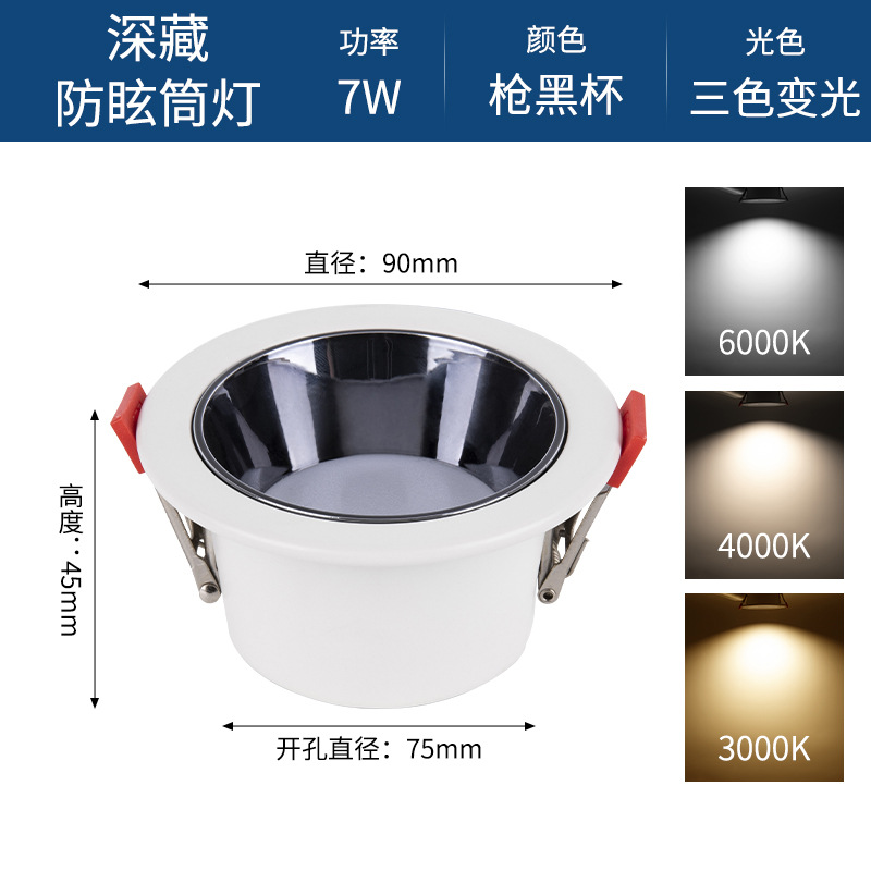 源头直供LED防眩筒灯嵌入式家用 客厅走廊三色变光窄边无主灯批发