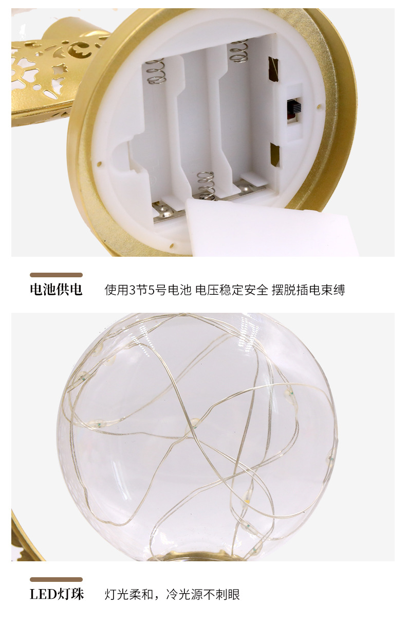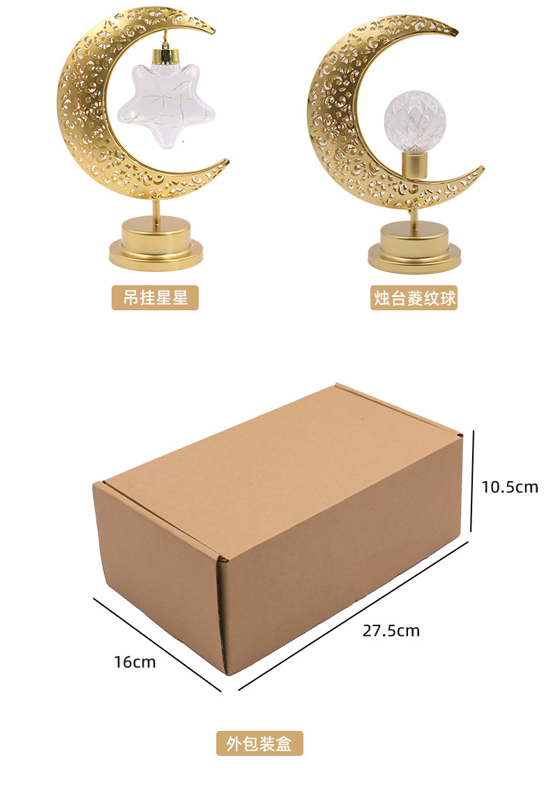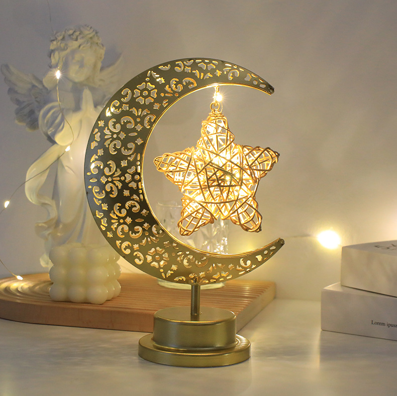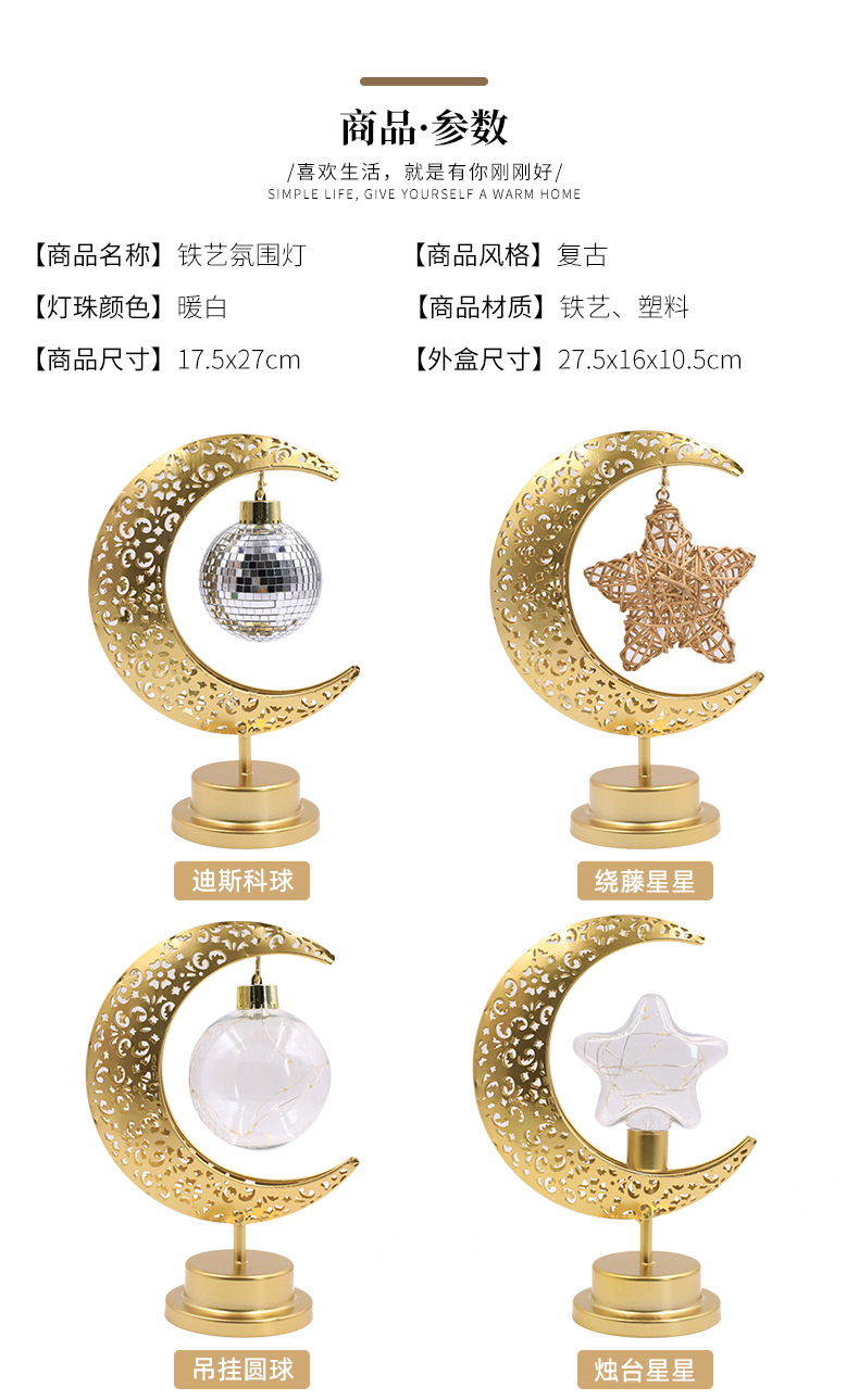 跨境新品圆球星星节日装饰灯Led铁艺月亮镂空桌面造型灯
