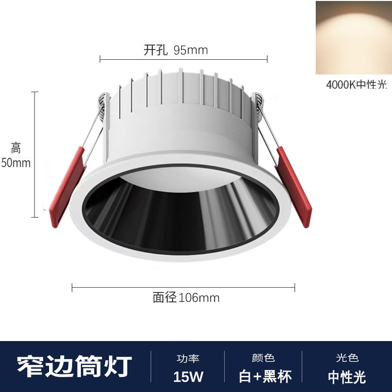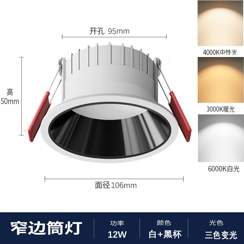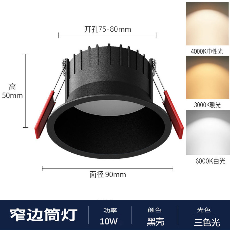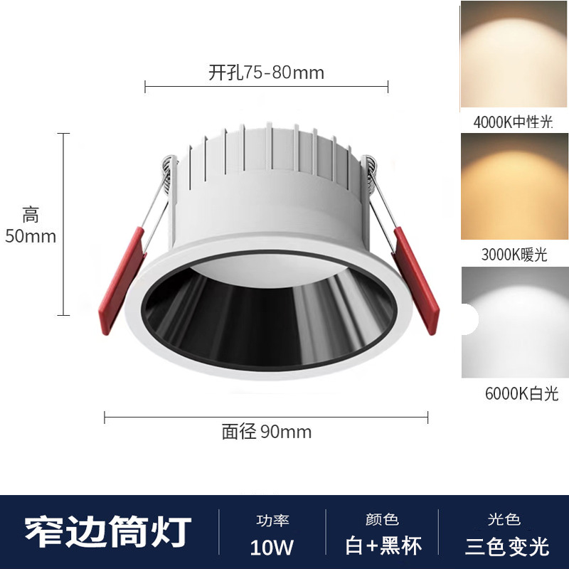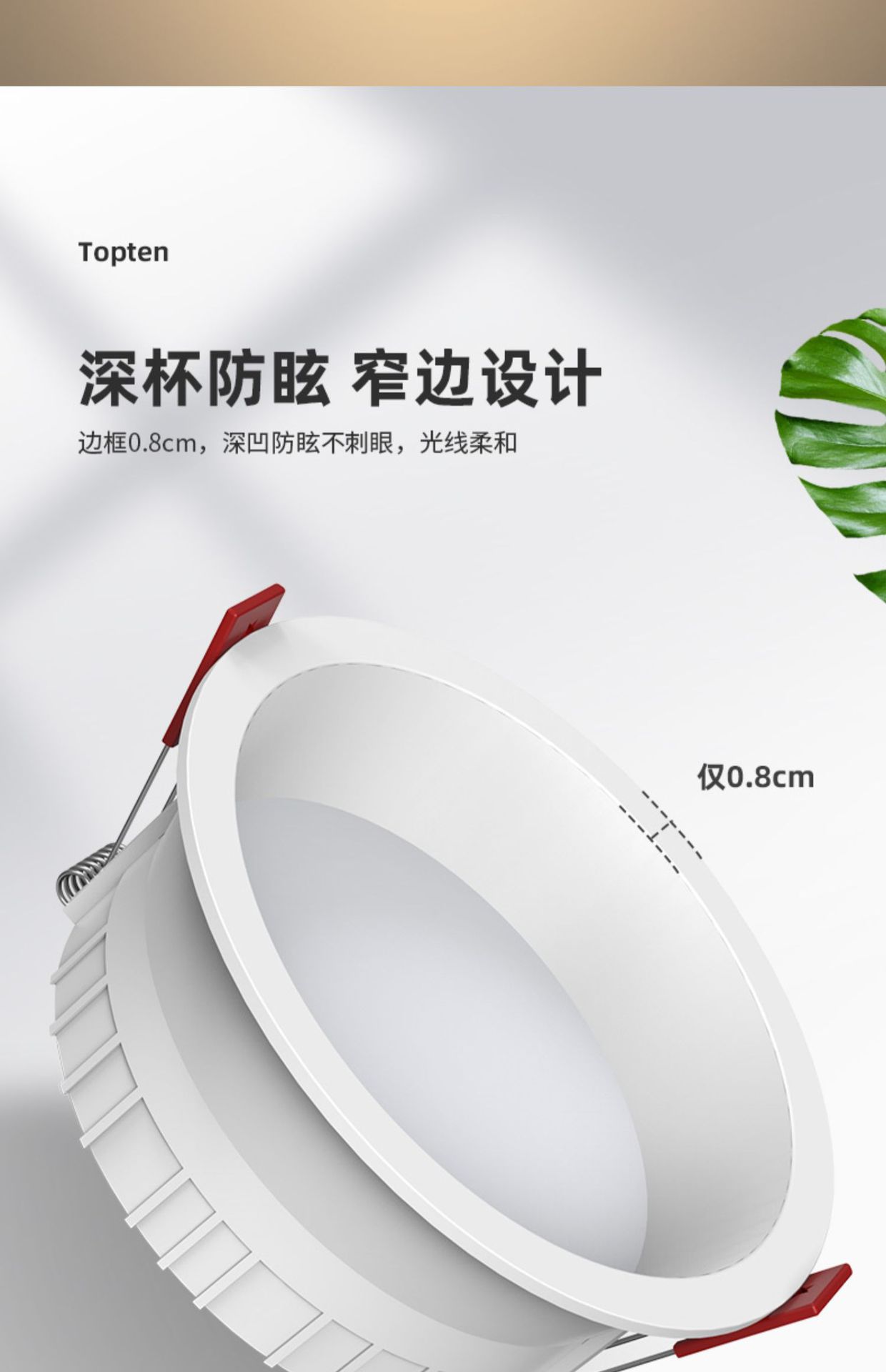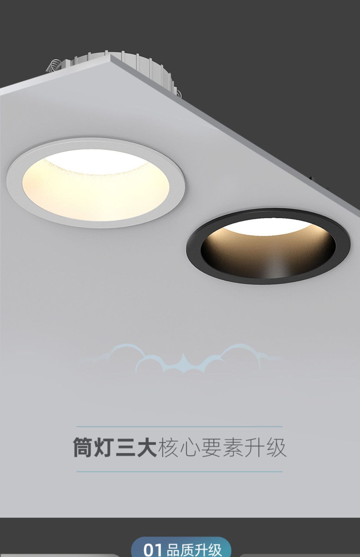 全光谱防眩嵌入式筒灯家用工程店铺明窄边高显98无主灯照明天花灯
