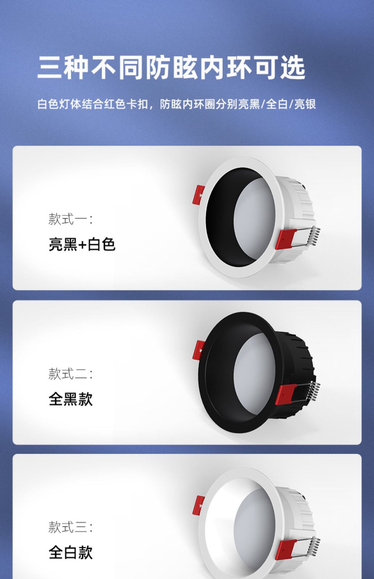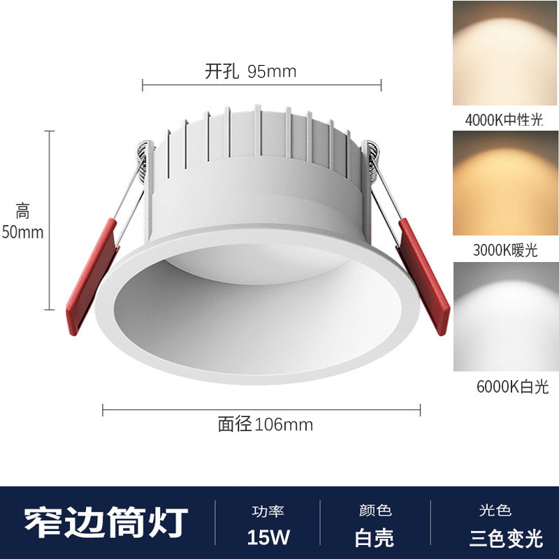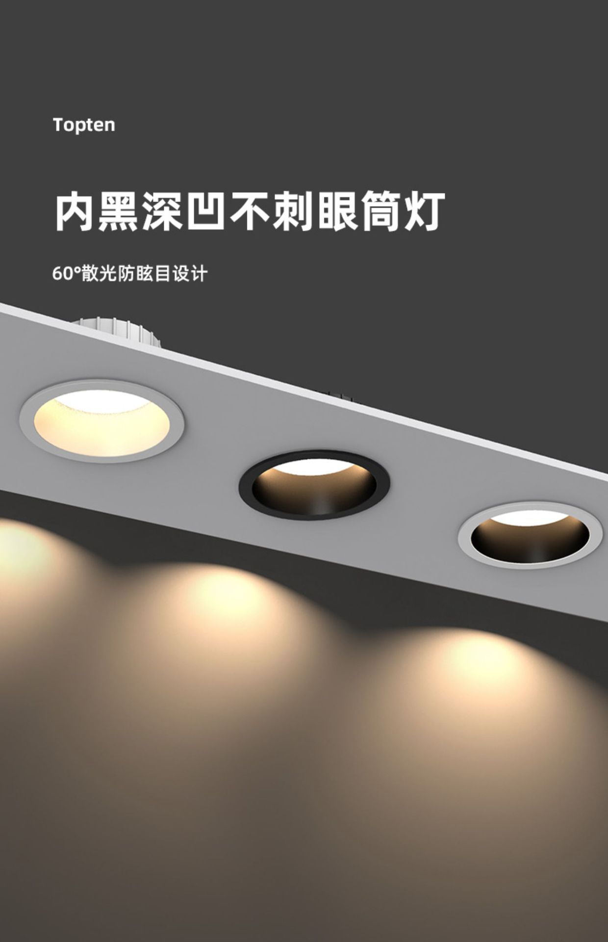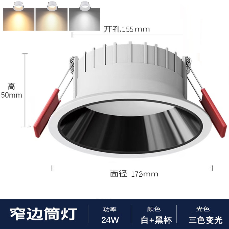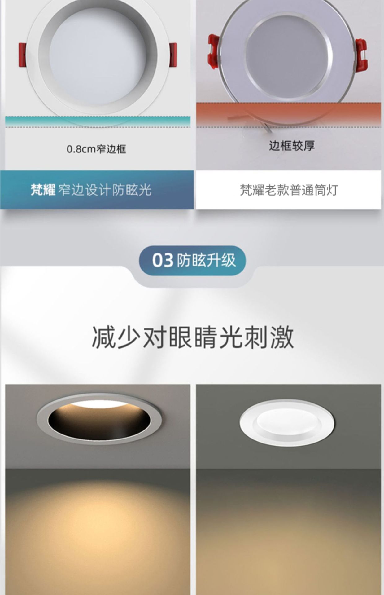 全光谱防眩嵌入式筒灯家用工程店铺明窄边高显98无主灯照明天花灯