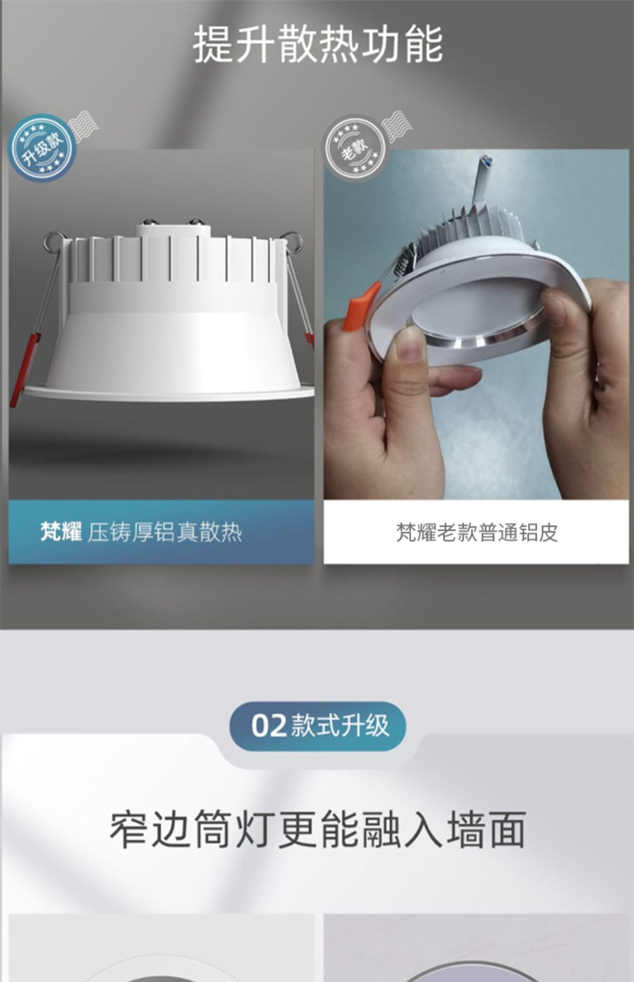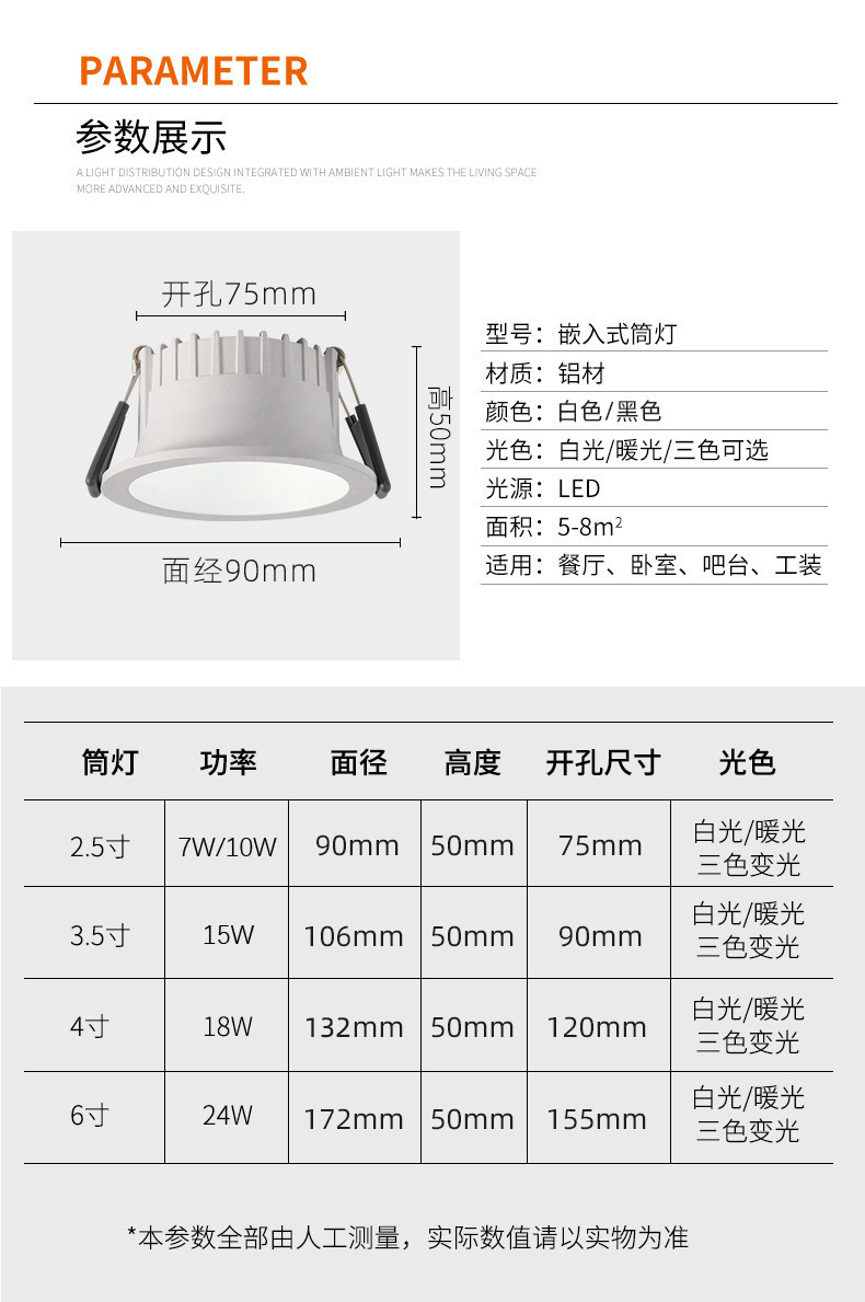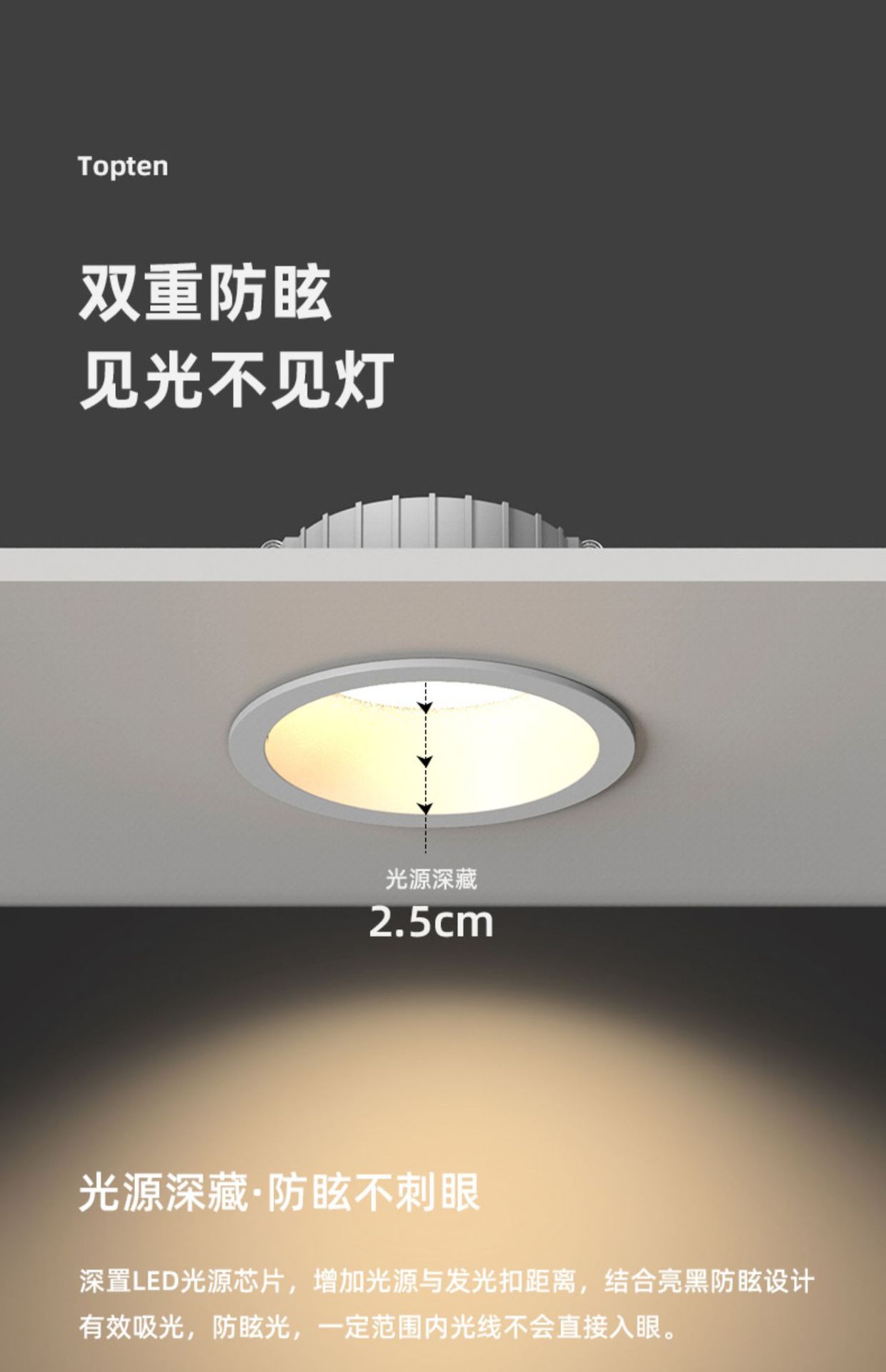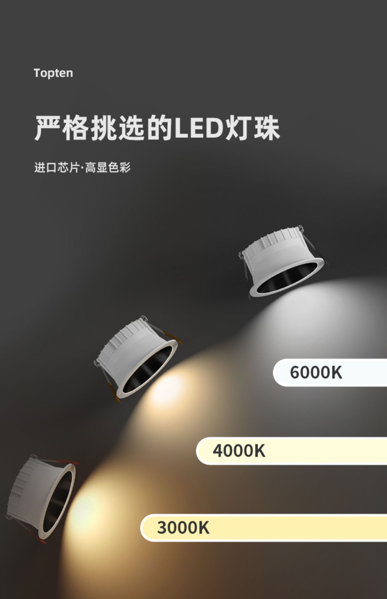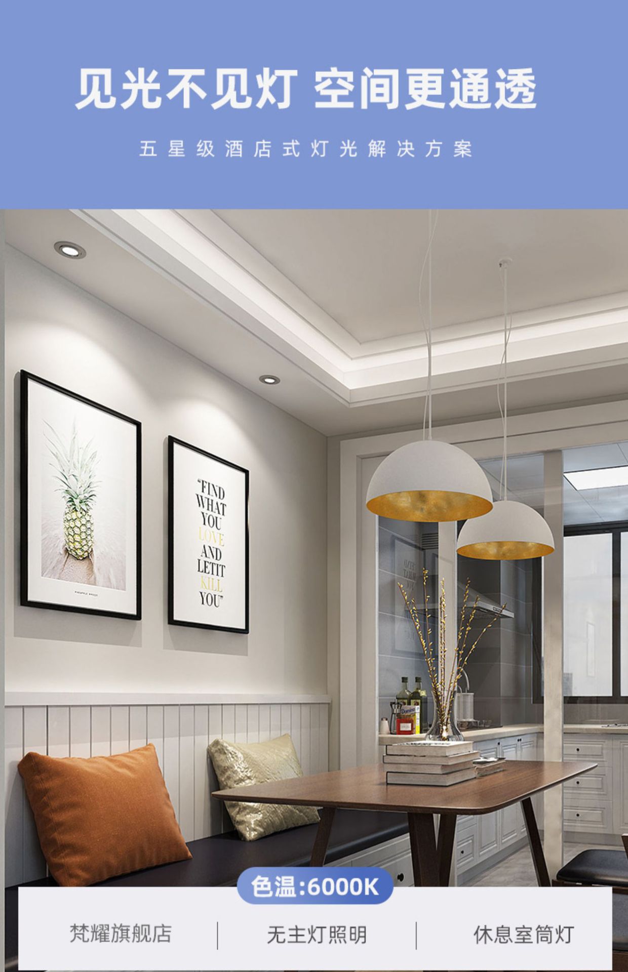 全光谱防眩嵌入式筒灯家用工程店铺明窄边高显98无主灯照明天花灯