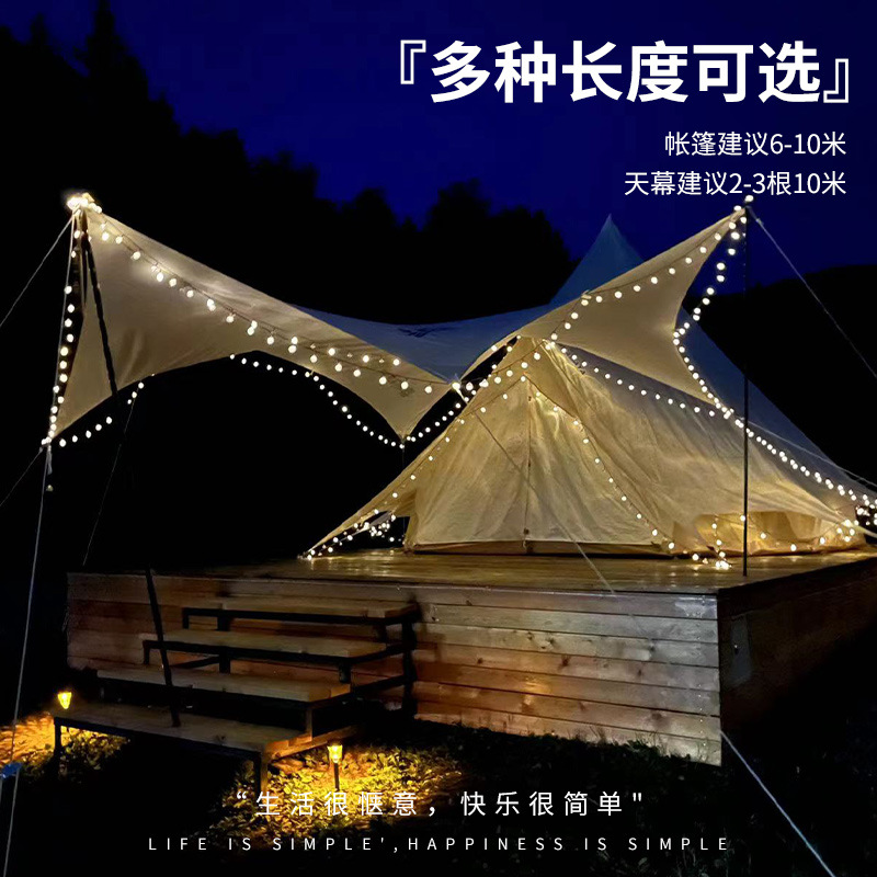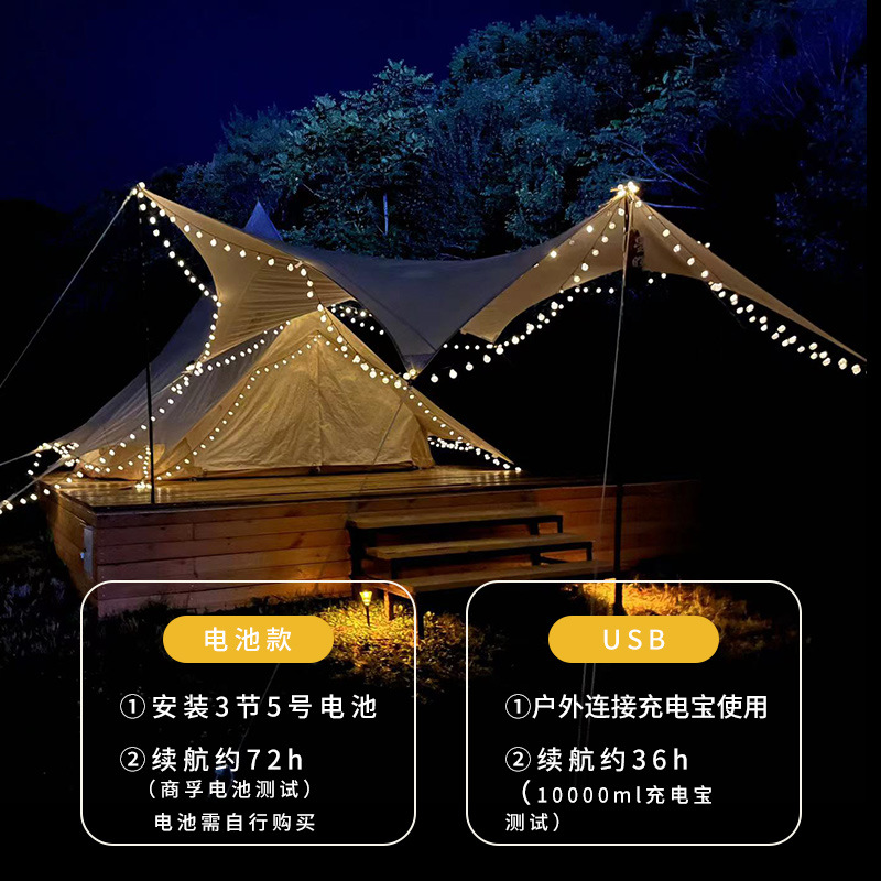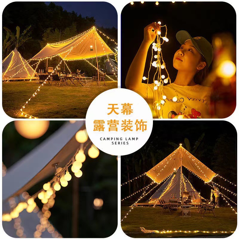 户外露营氛围灯串 帐篷天幕小圆球串灯彩灯装饰灯防水电池盒灯串