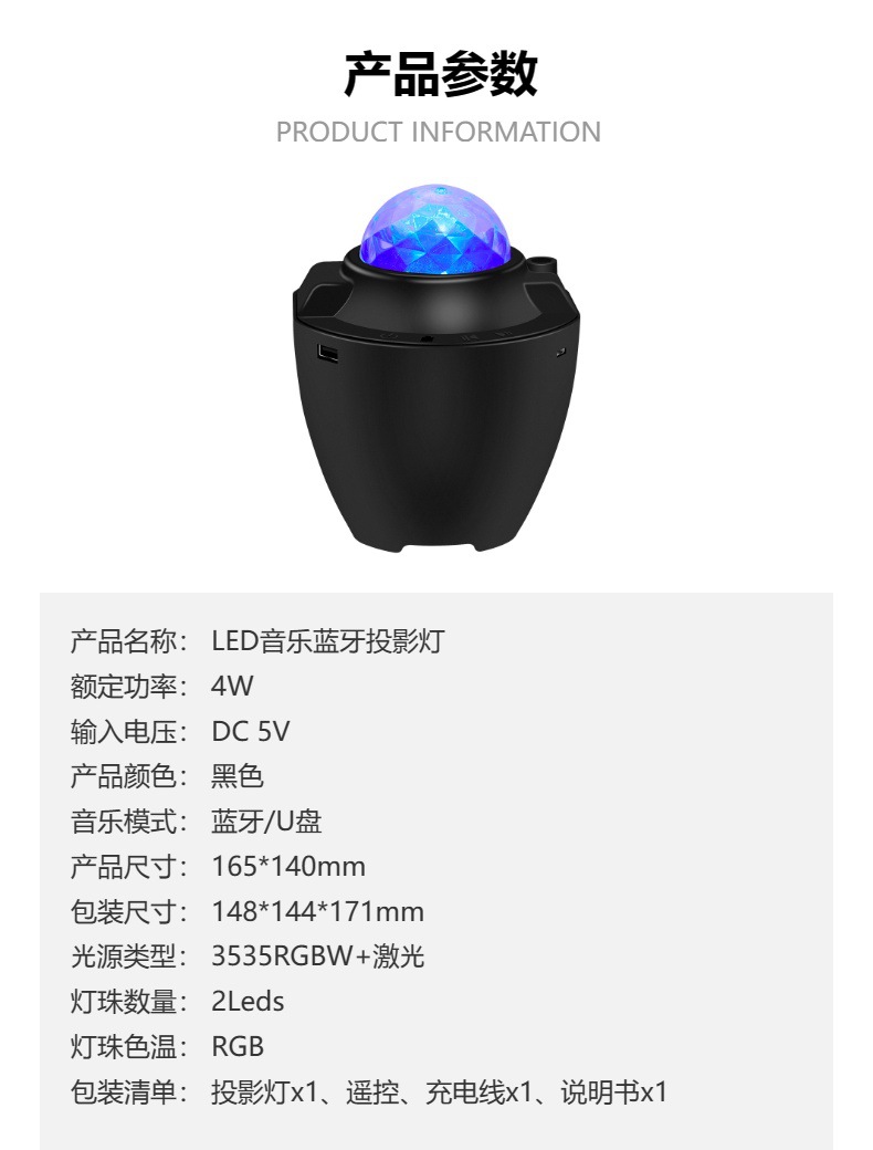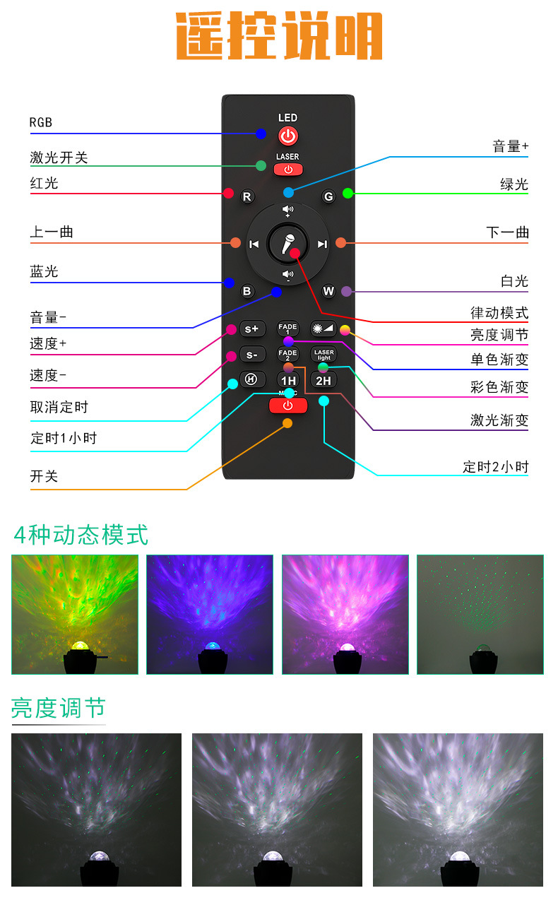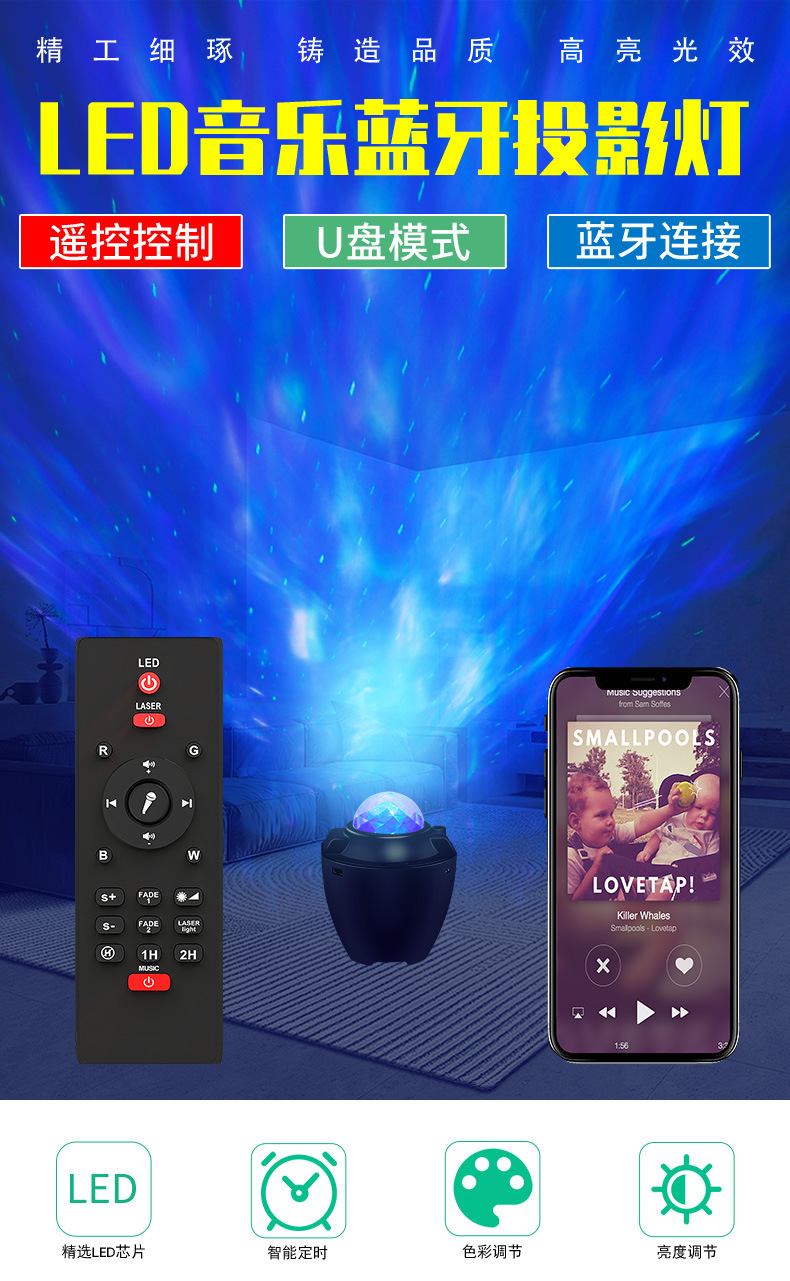 星空投影灯生日礼物小夜灯遥控蓝牙氛围灯RGB家用幻彩激光满天星