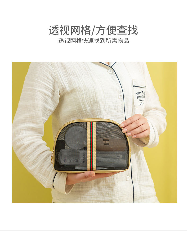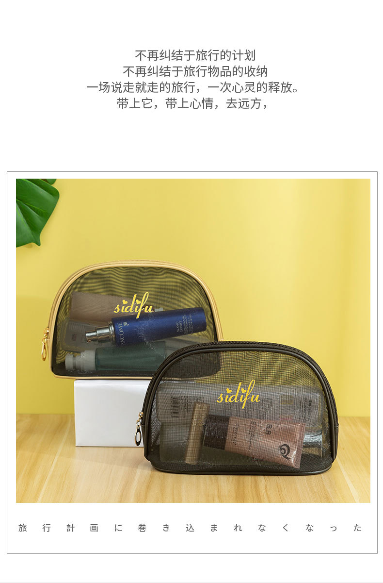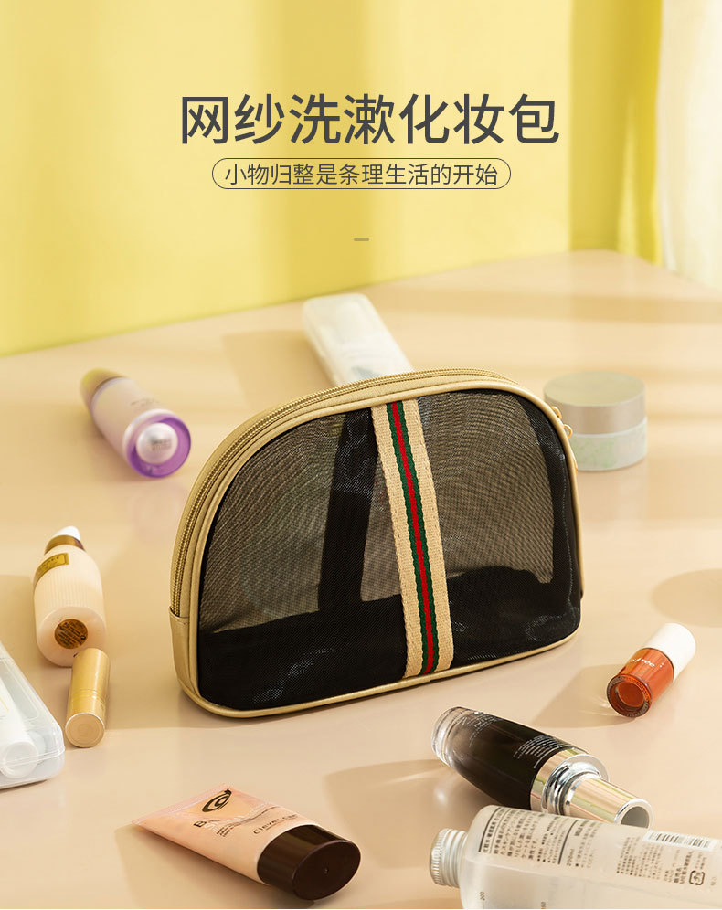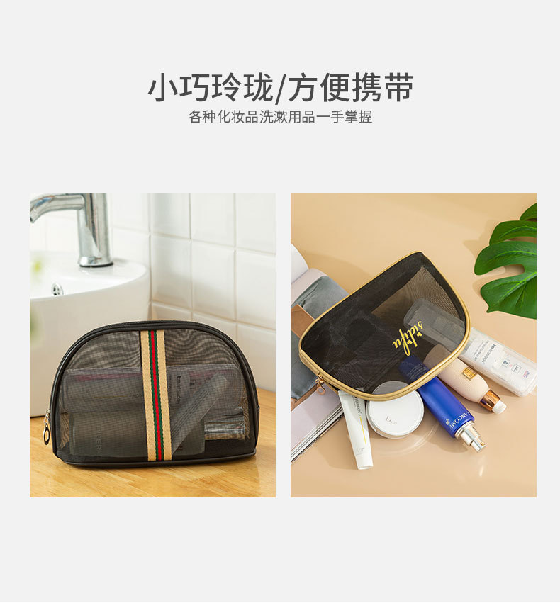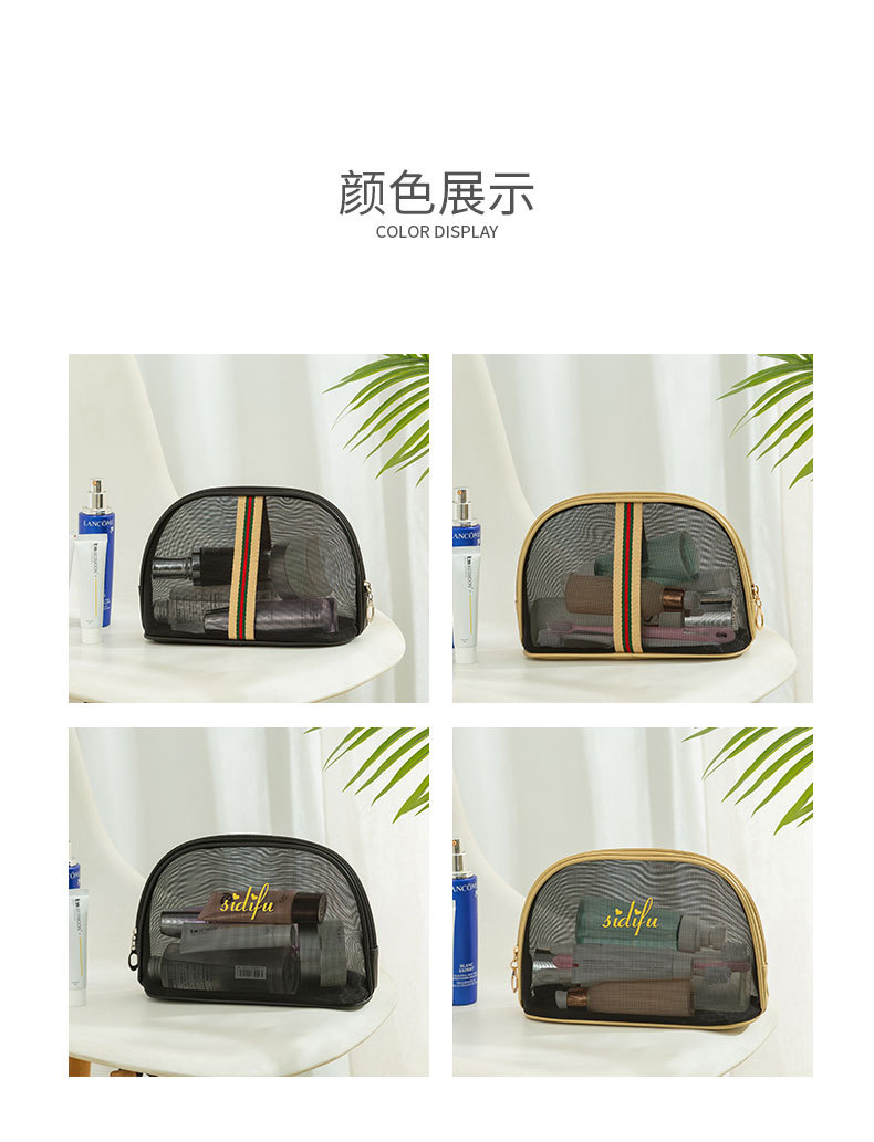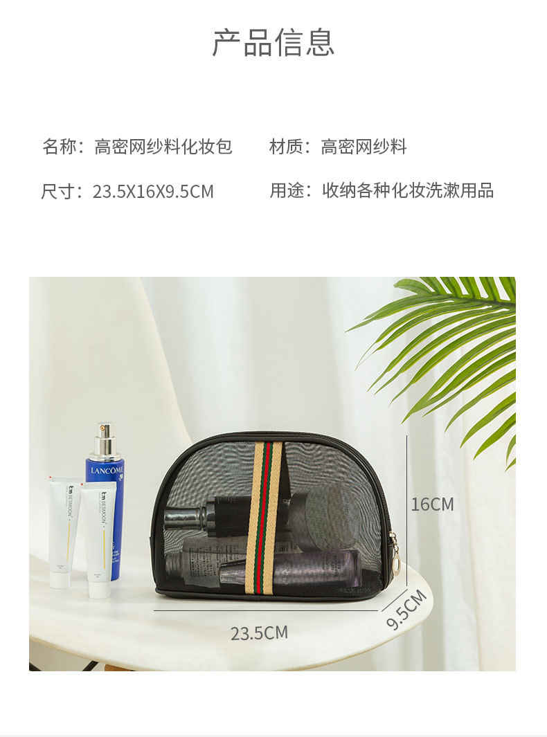 新款网纱化妆包半圆洗漱袋大容量手拿收纳包透明网眼零钱包笔袋