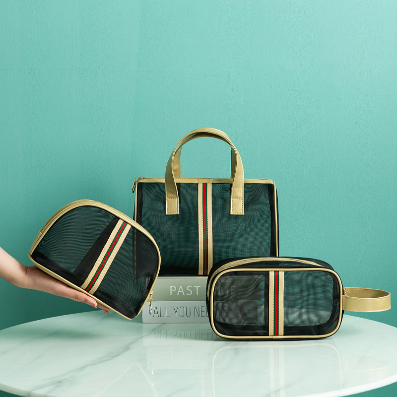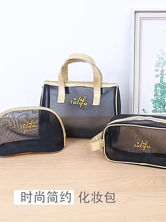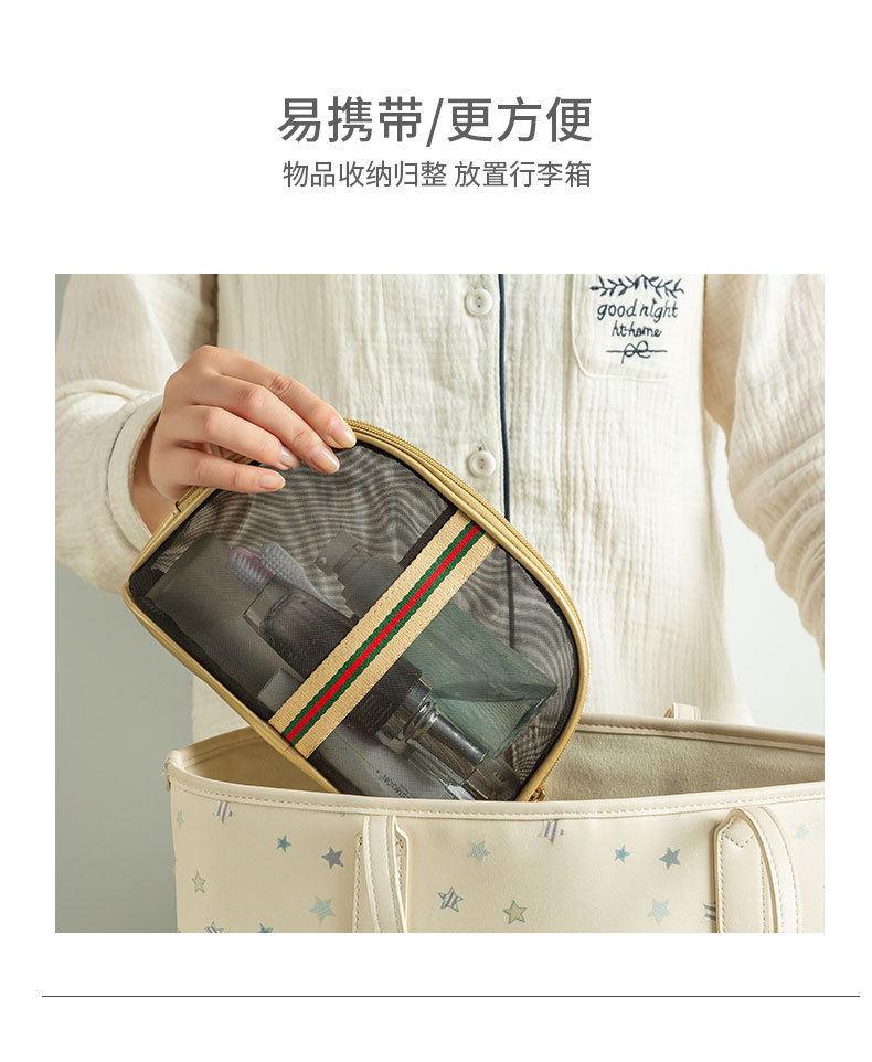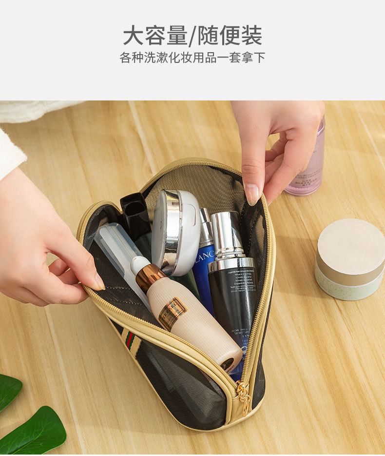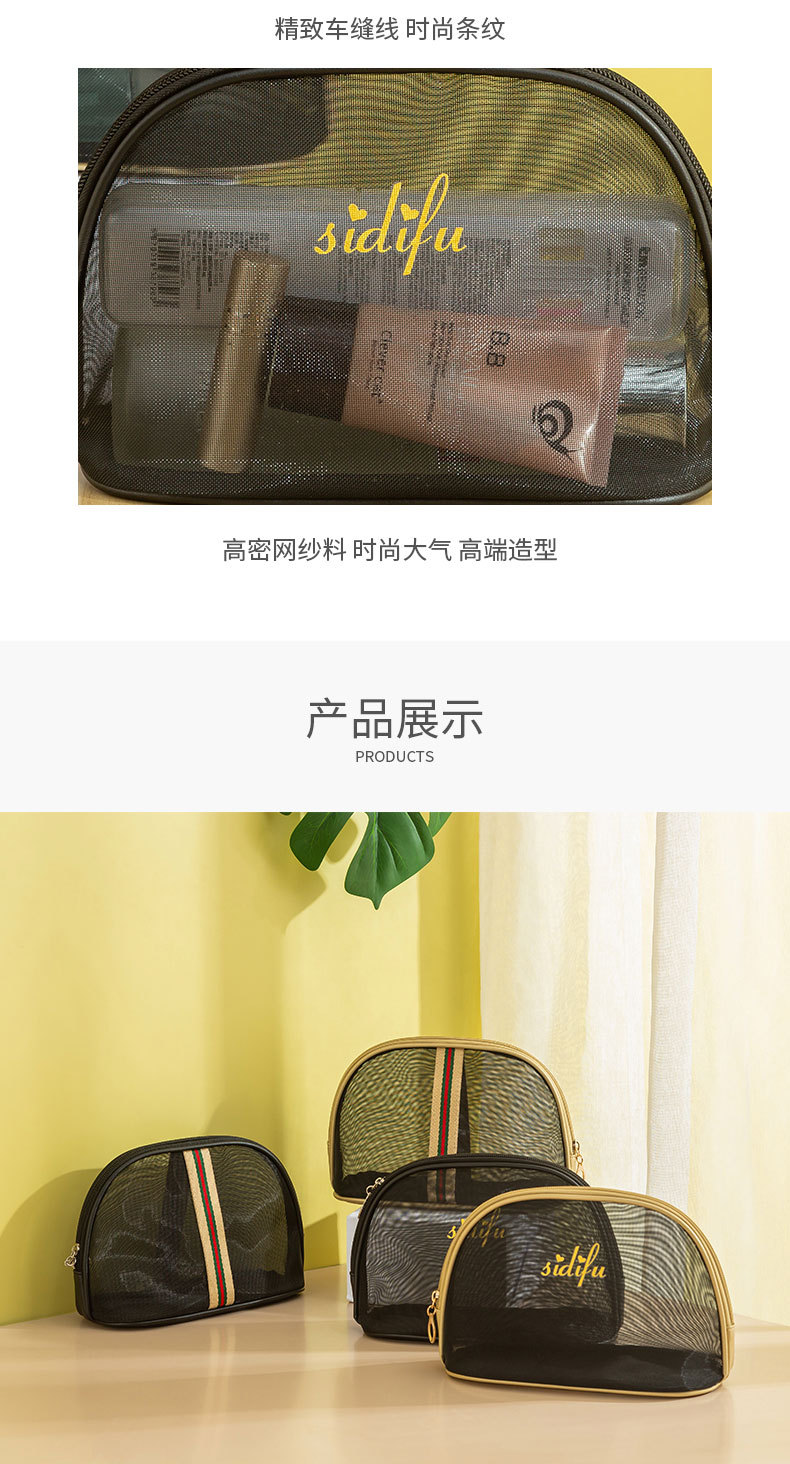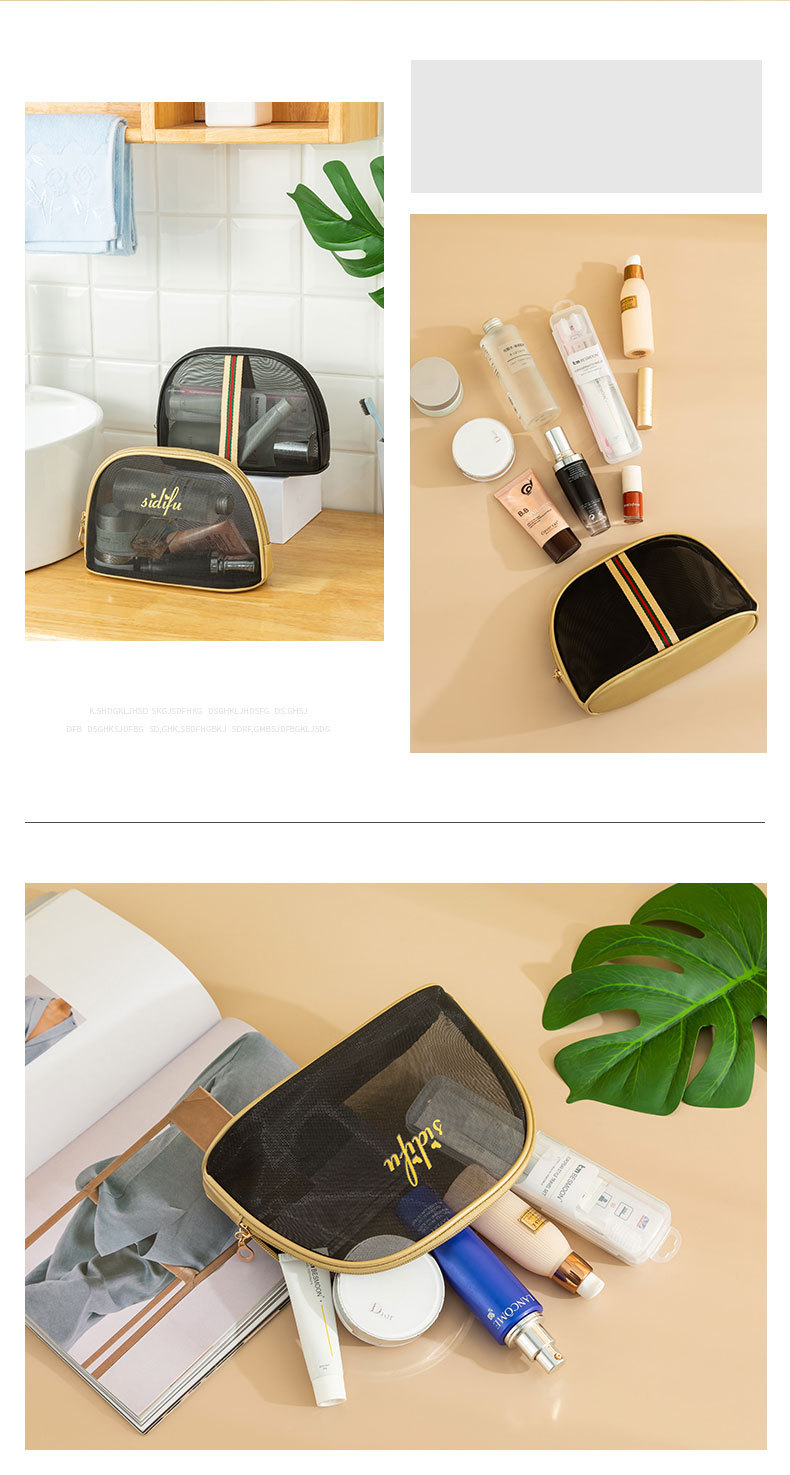 新款网纱化妆包半圆洗漱袋大容量手拿收纳包透明网眼零钱包笔袋