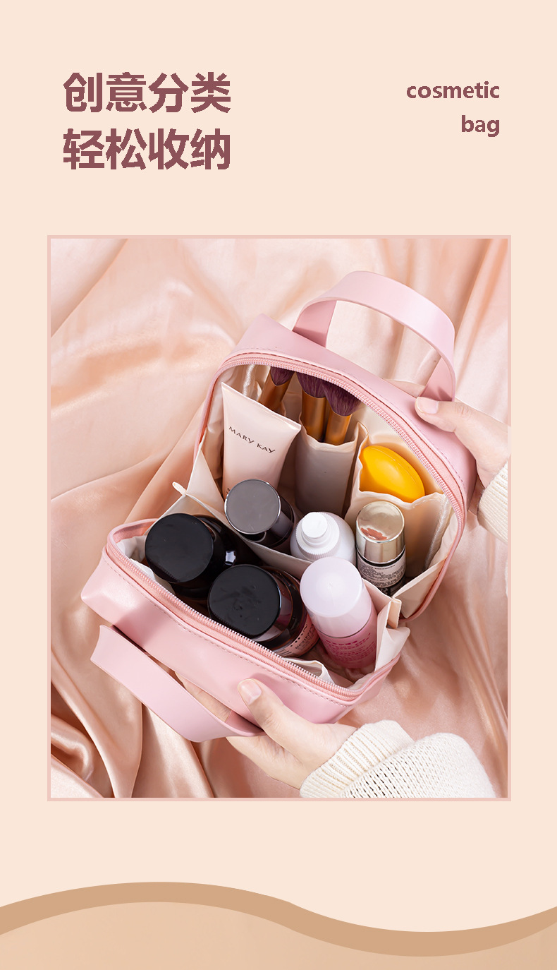 新款手提高颜值pu化妆包便携式化妆品收纳包旅行大容量洗漱包跨境