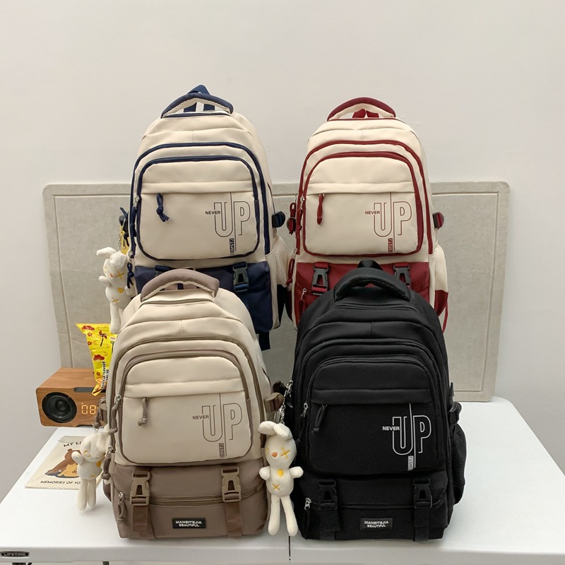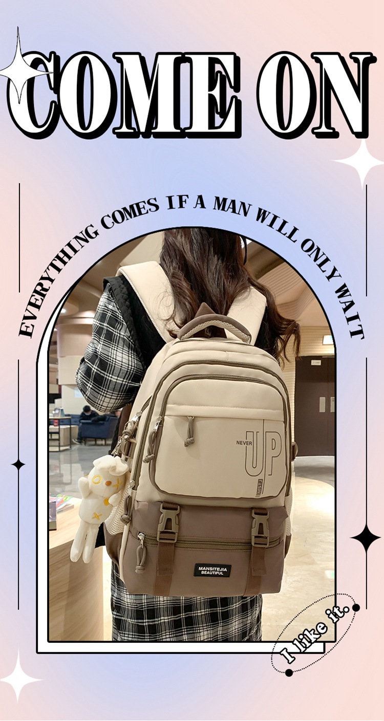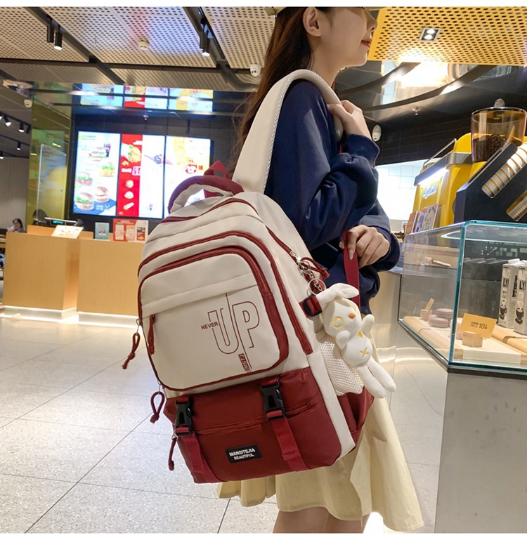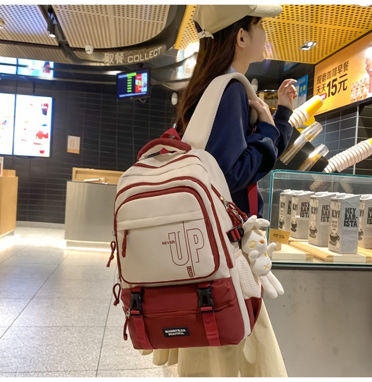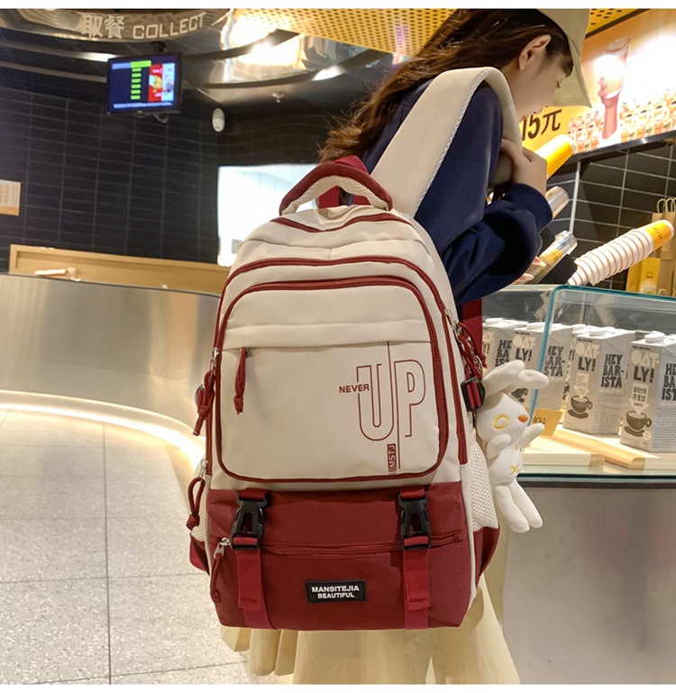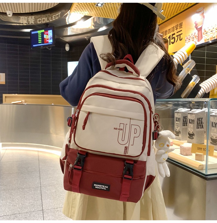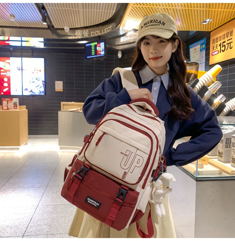 新款撞色书包 初中女生高中生双肩包ins潮流大学生书包