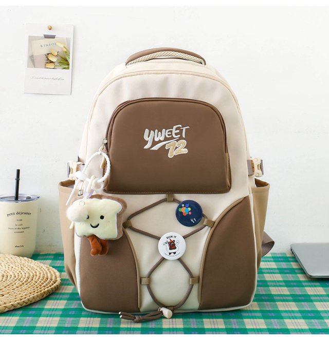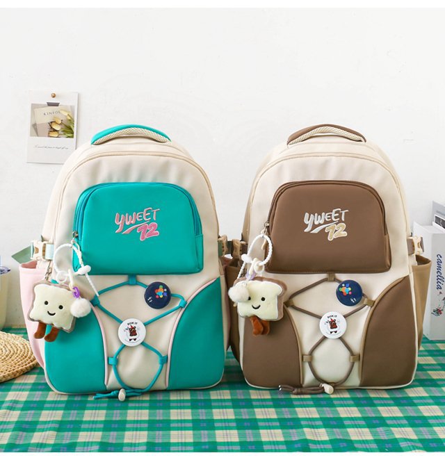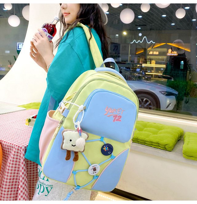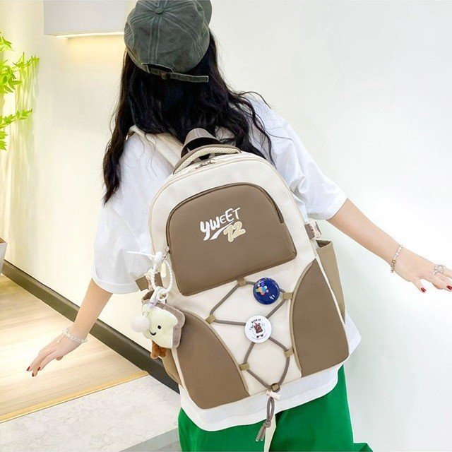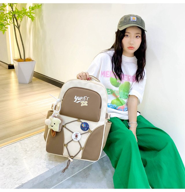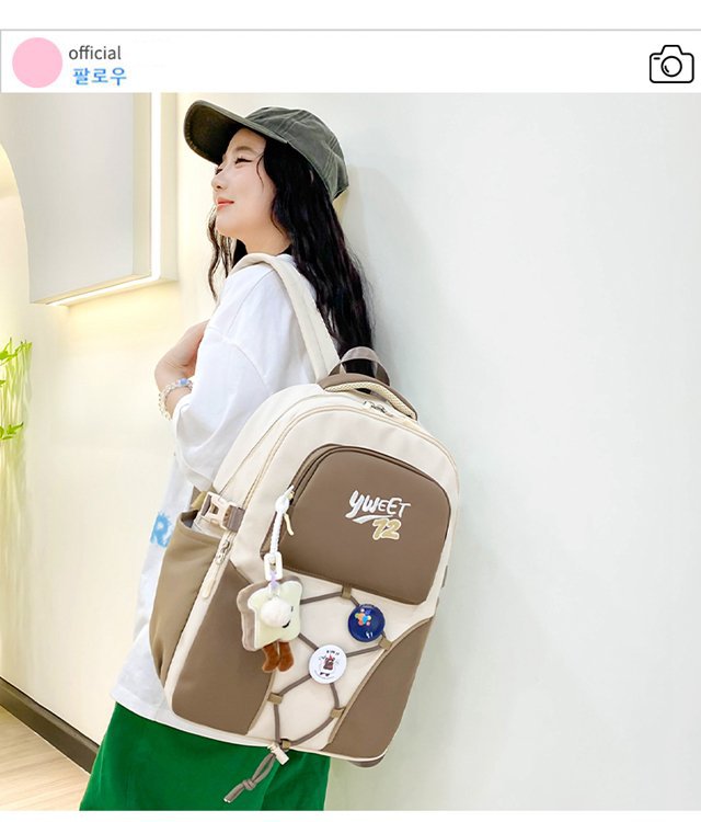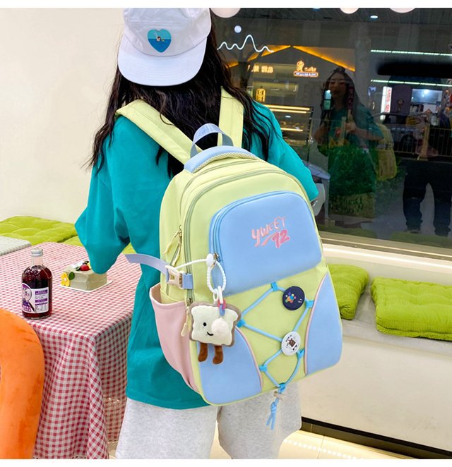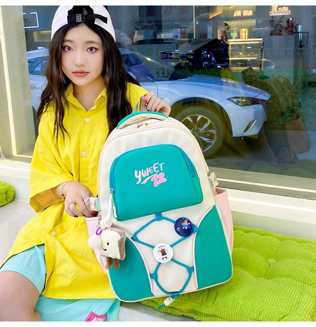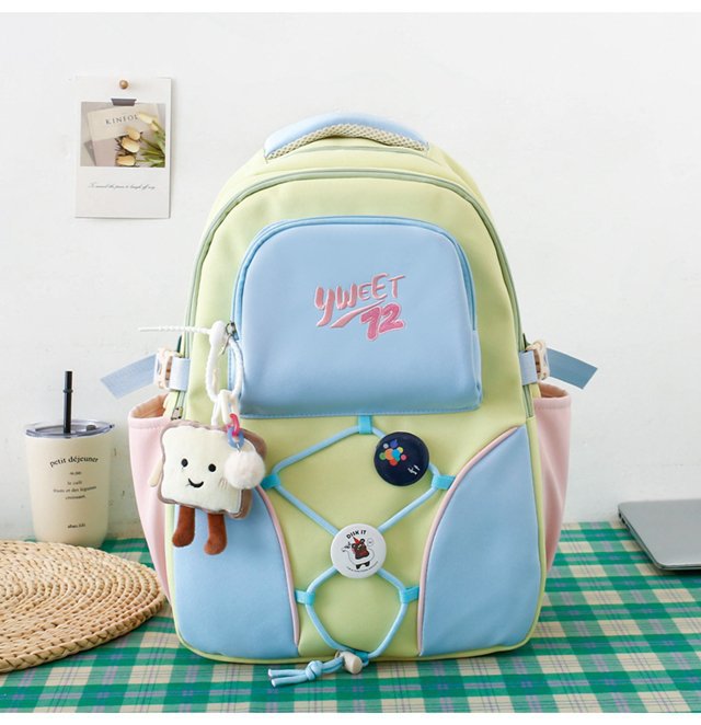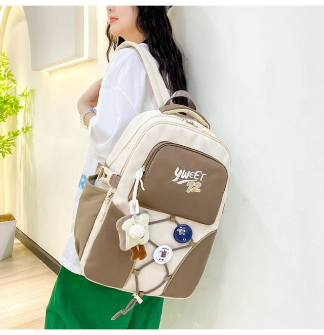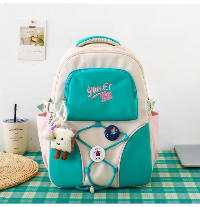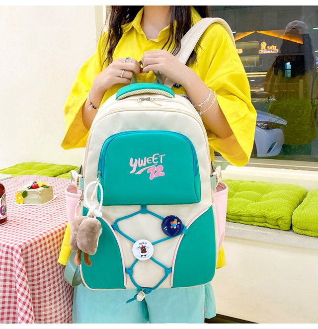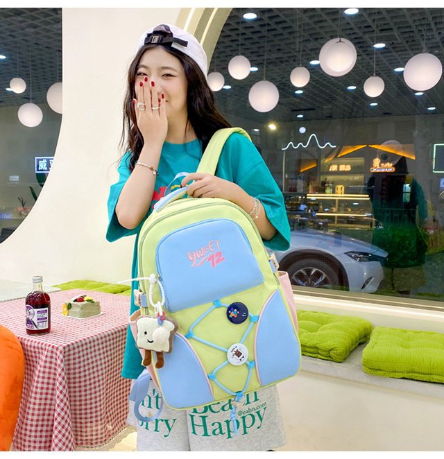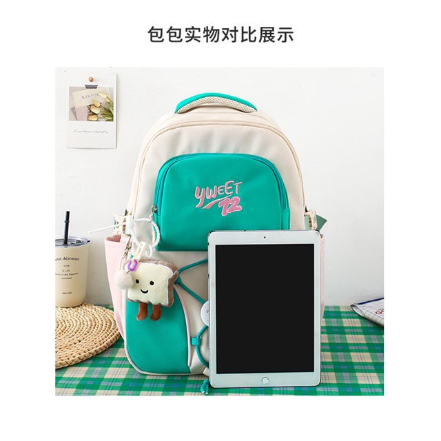 运动双肩包可爱少女高中生学员风小清新书包原宿风撞色背包
