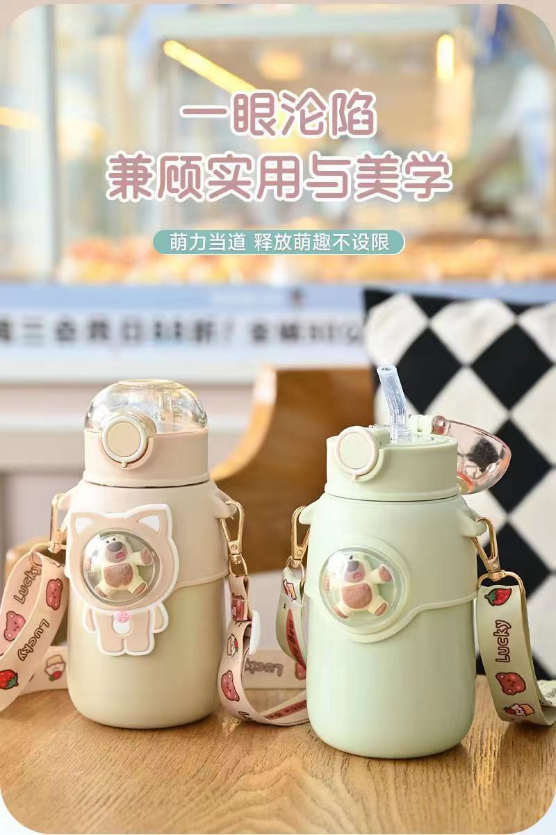 新款316不锈钢小熊智能保温杯学生显温吸管水杯儿童卡通保温杯子
