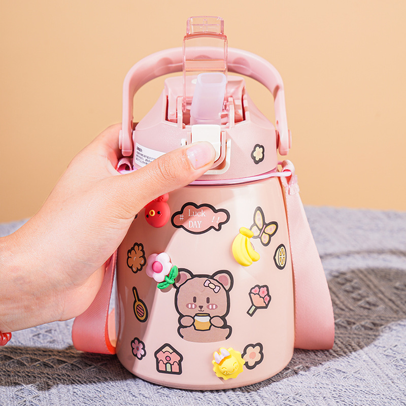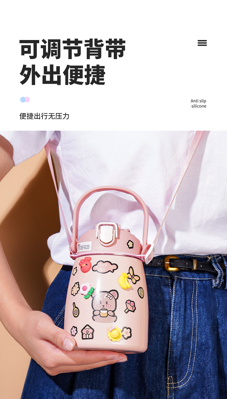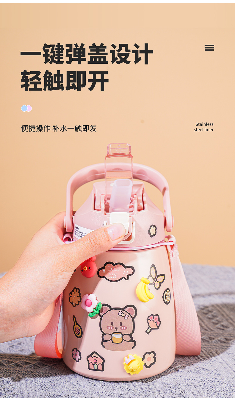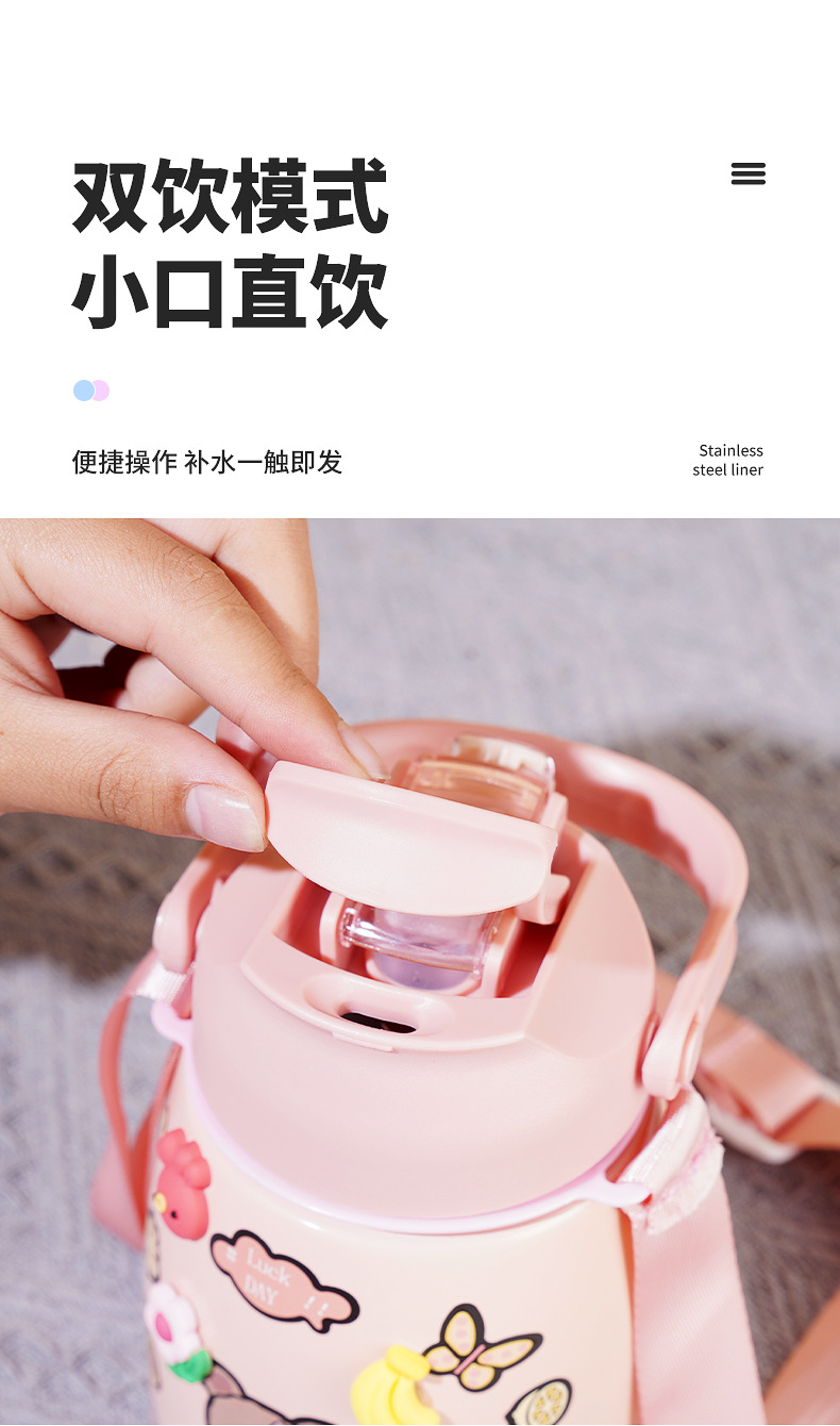 新款304不锈钢双饮大肚杯保温杯大容量高颜值保温壶大肚子保温杯